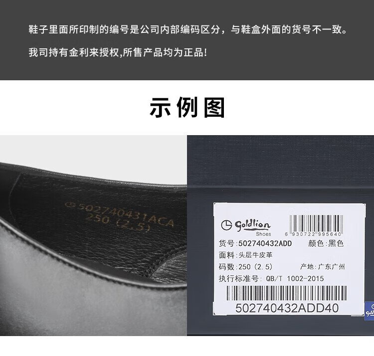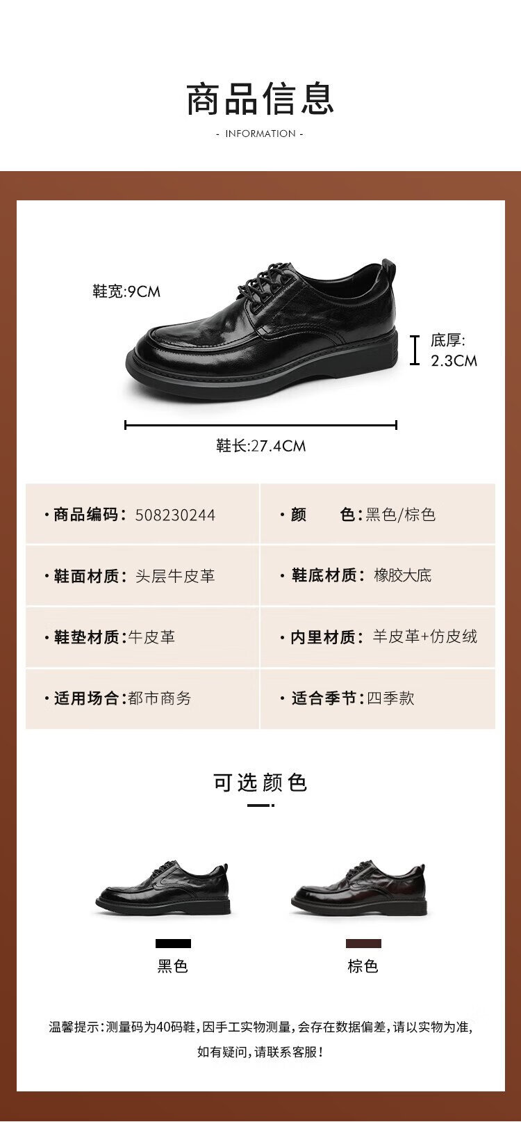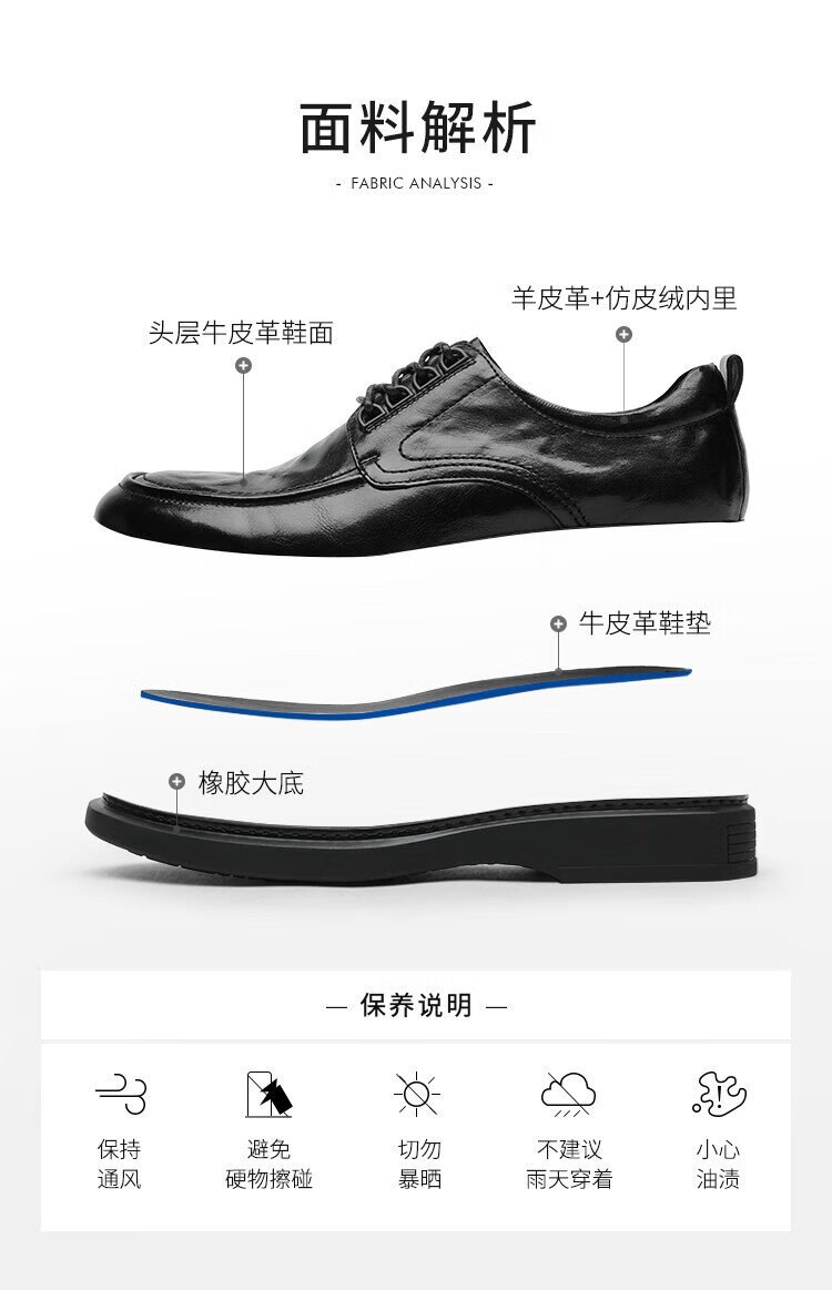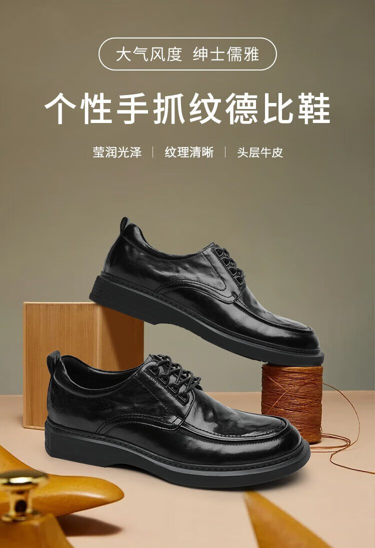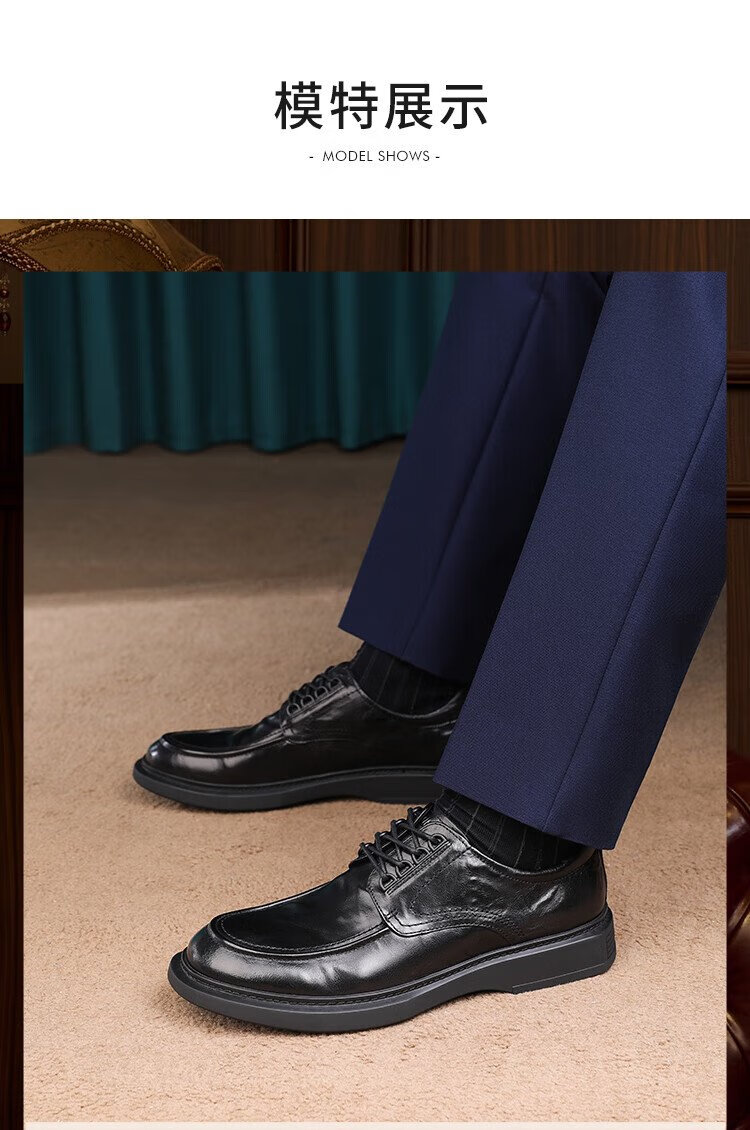 Goldlion Men's Shoes Urban Fashion Autumn Formal Leather Shoes Comfortable and Wear-Resistant Derby Shoes 50823024401A Black Size 40