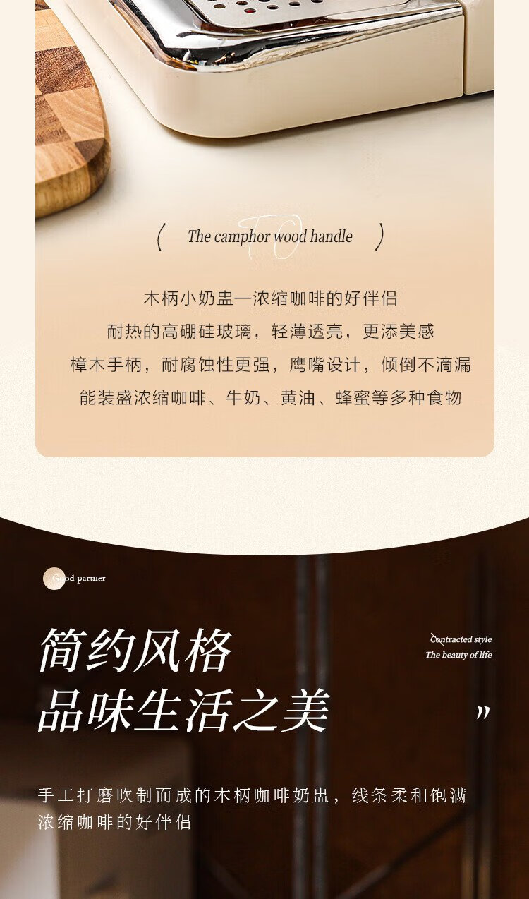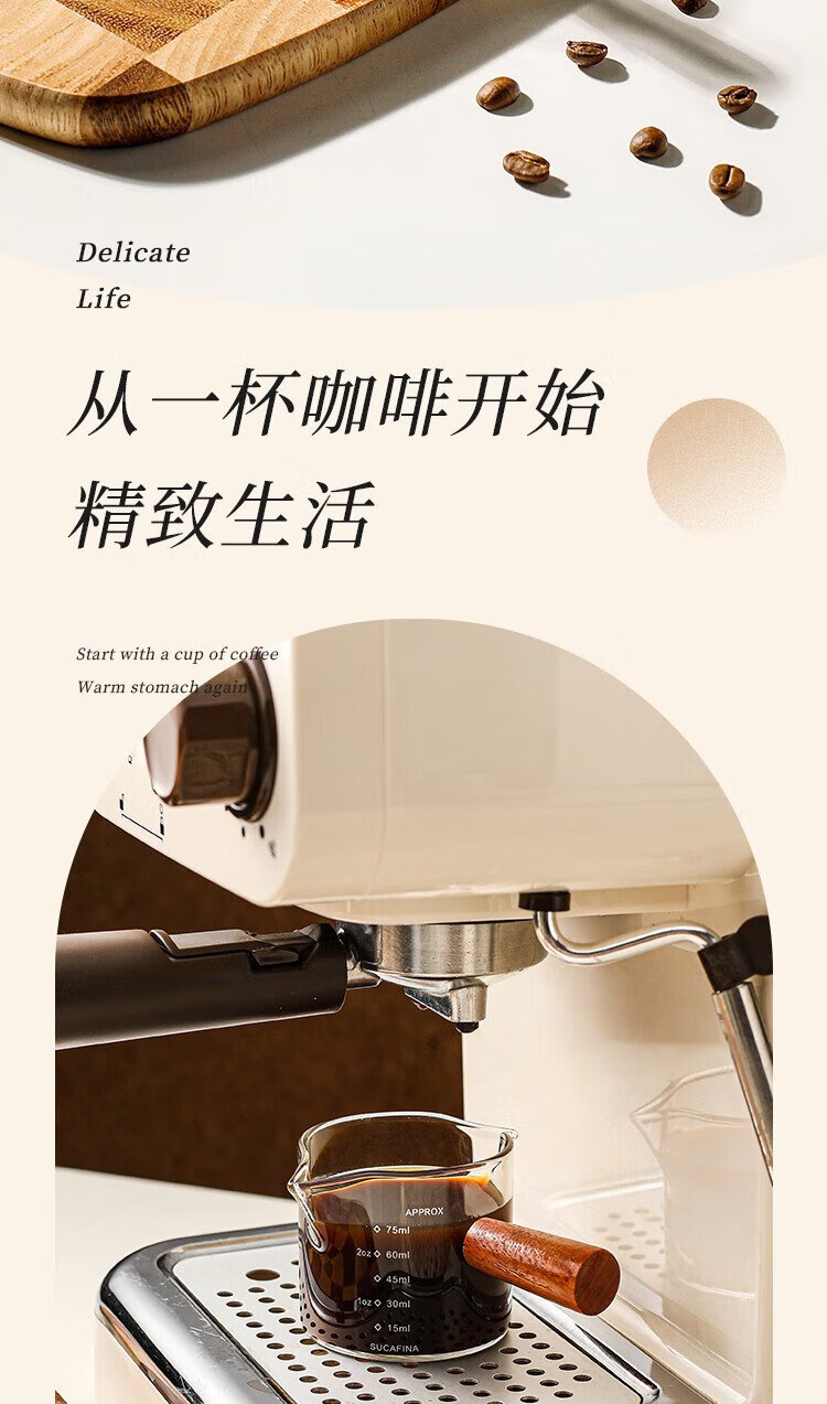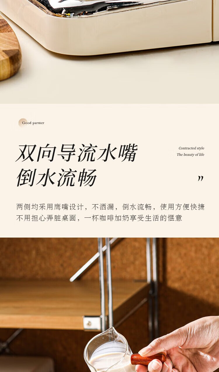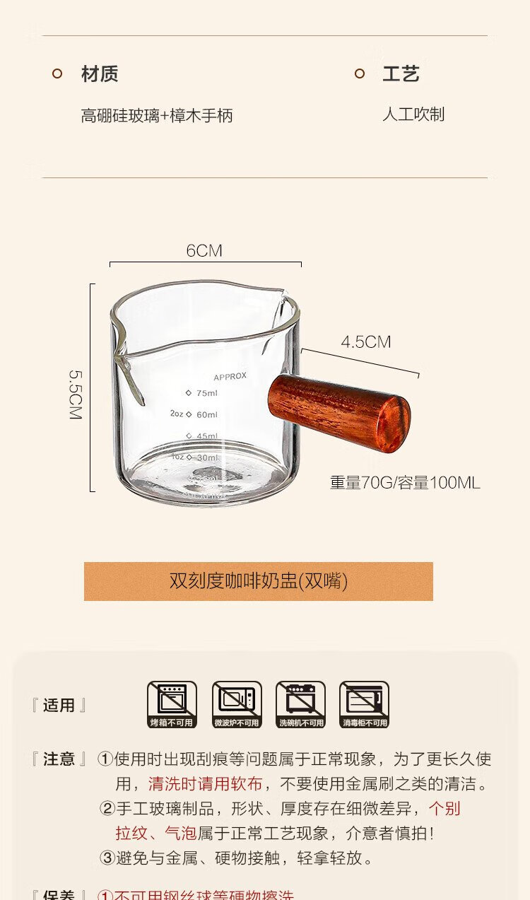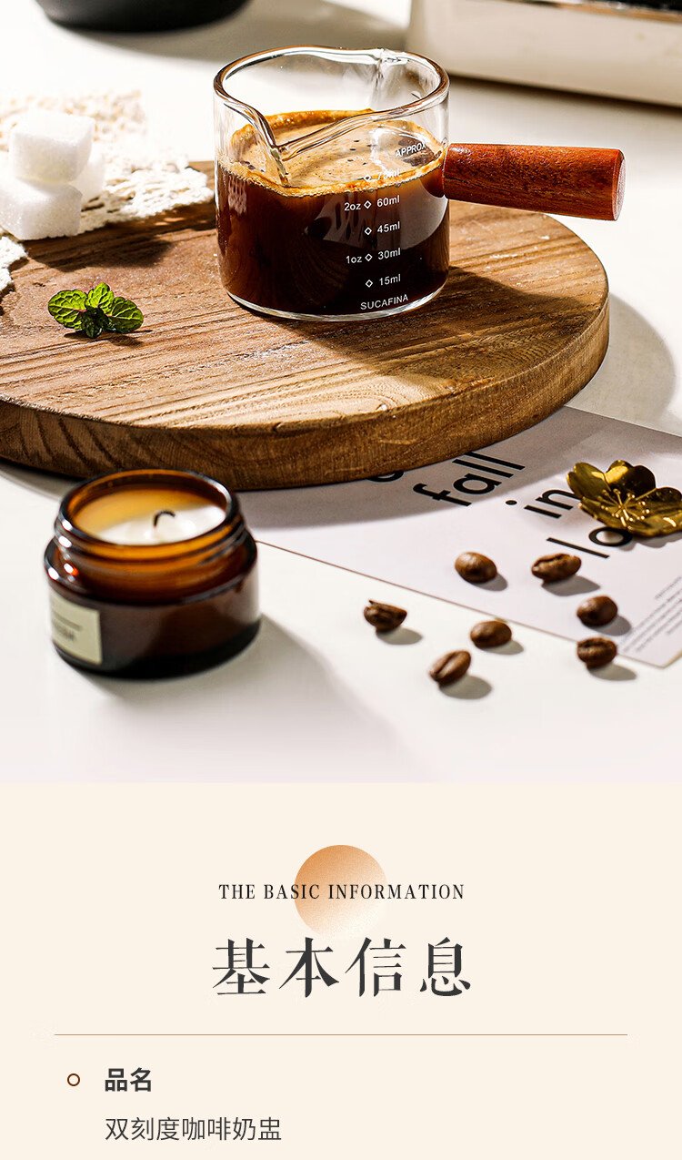 PINYU coffee measuring cup glass with double scale espresso extraction cup double diversion port wooden handle small milk cup