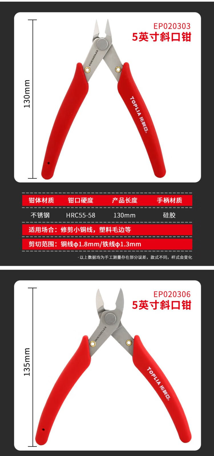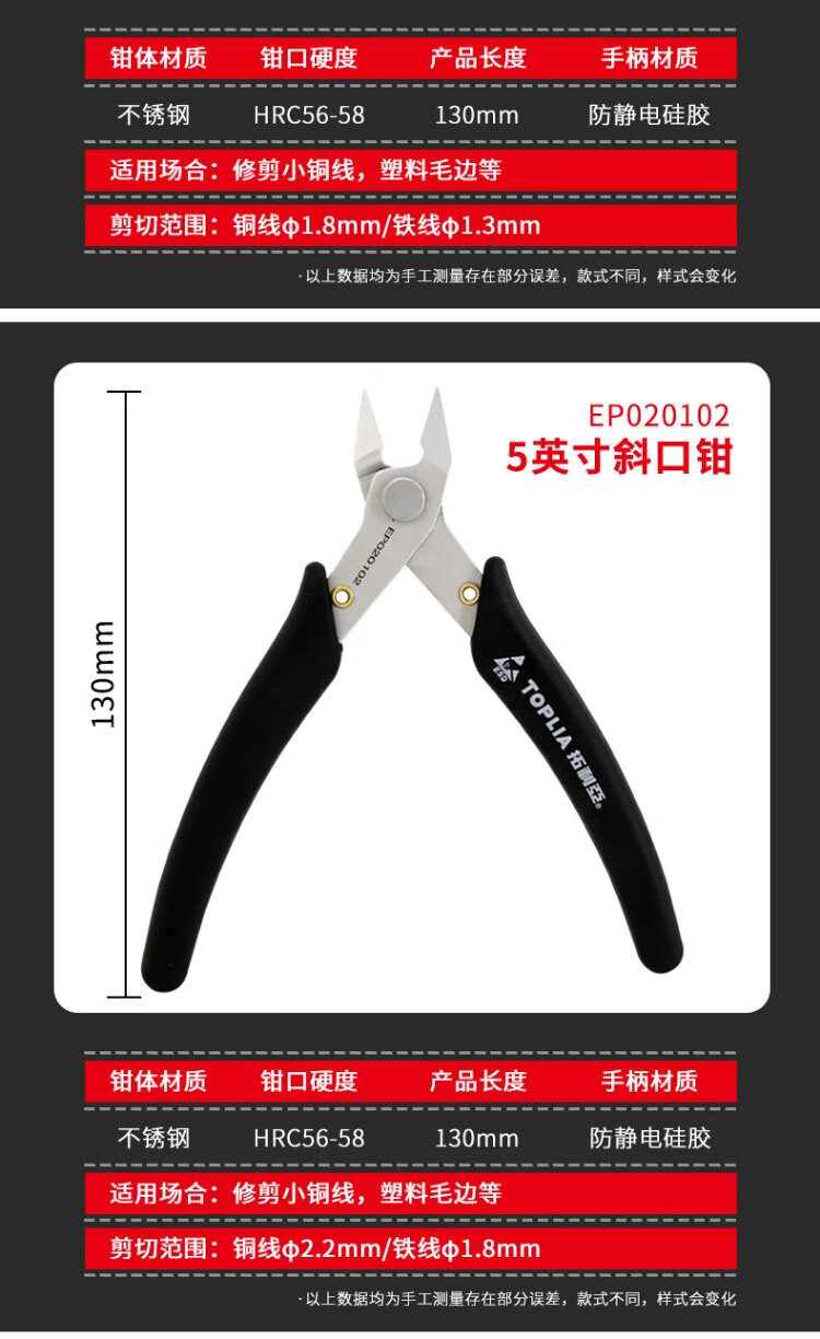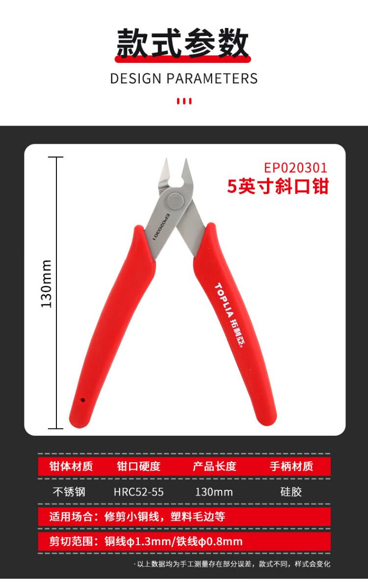 TOPLIA diagonal nose pliers stainless steel mini diagonal pliers electronic scissors Ruyi pliers 130mm EP020301