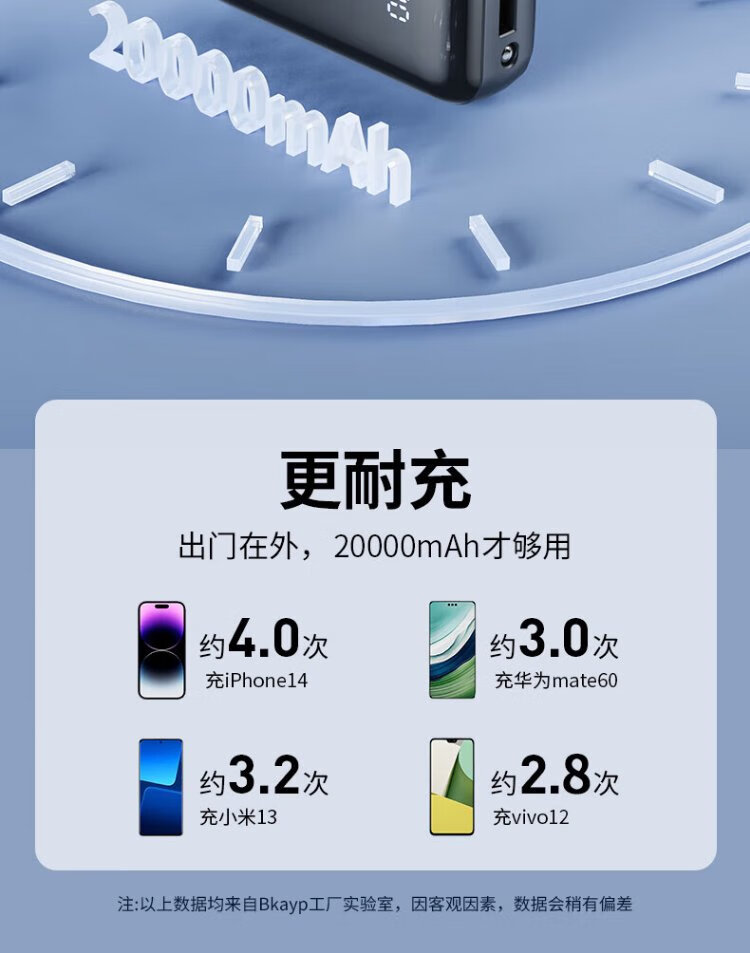 Bkayp best-selling 400,000+ power bank, 3C certified, 20,000 mAh fast charge, can be used on airplanes, comes with cable, compact, portable, large-capacity power bank, suitable for Apple, Huawei, and Xiaomi