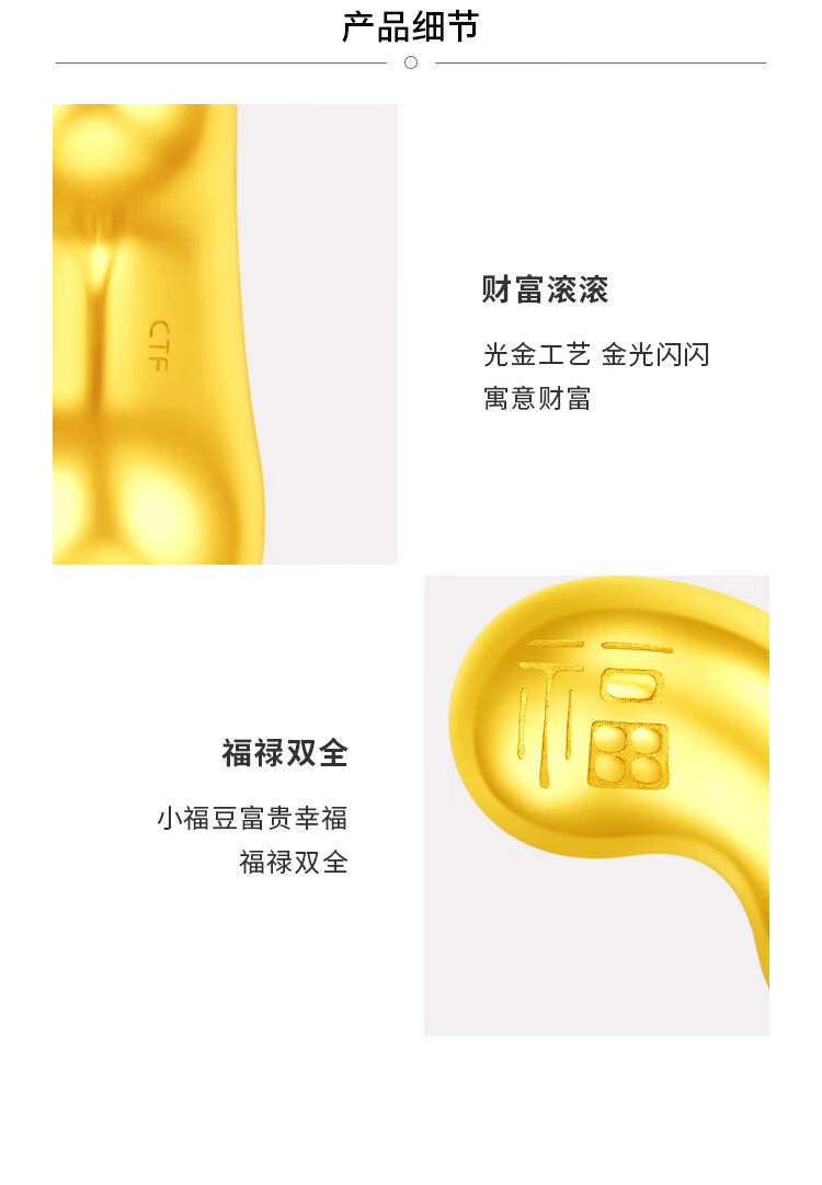 Chow Tai Fook Golden Beans with the word "Fu" Crafted Golden Beans IF1689 Christmas Gift