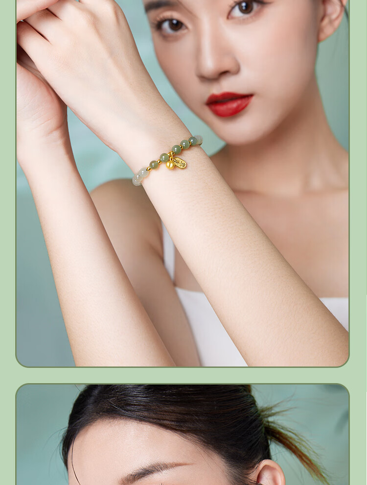 Saturday blessing, wealth, wealth, beauty, jade gold, Hetian jade bracelet for women Y1910850 17cm birthday gift