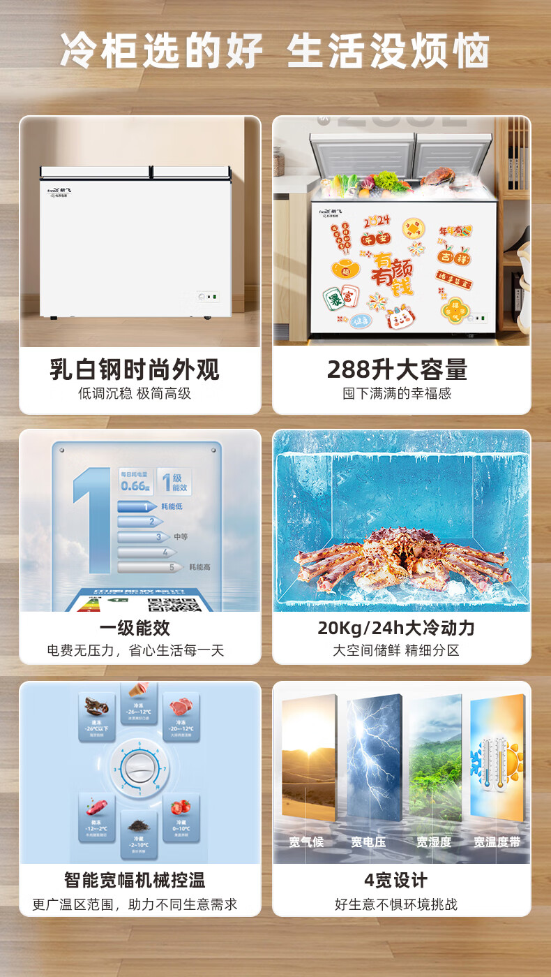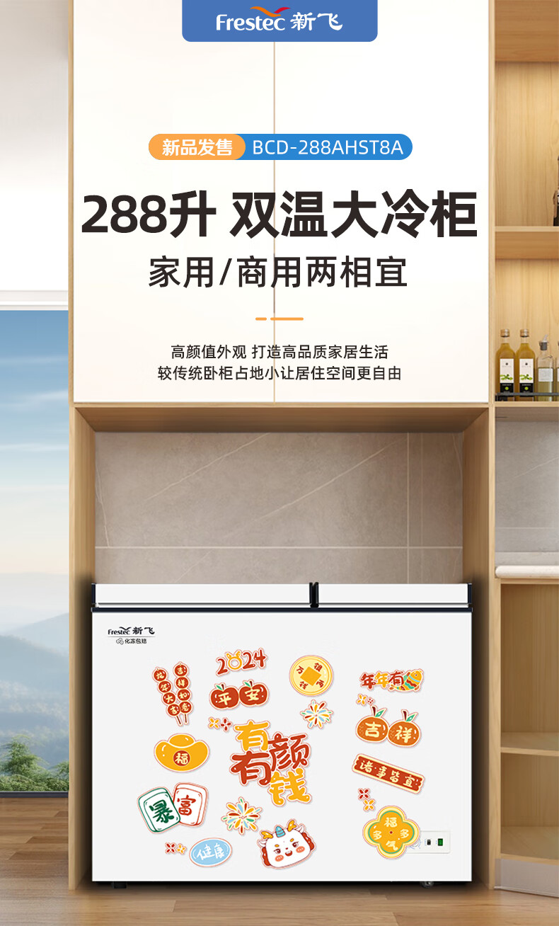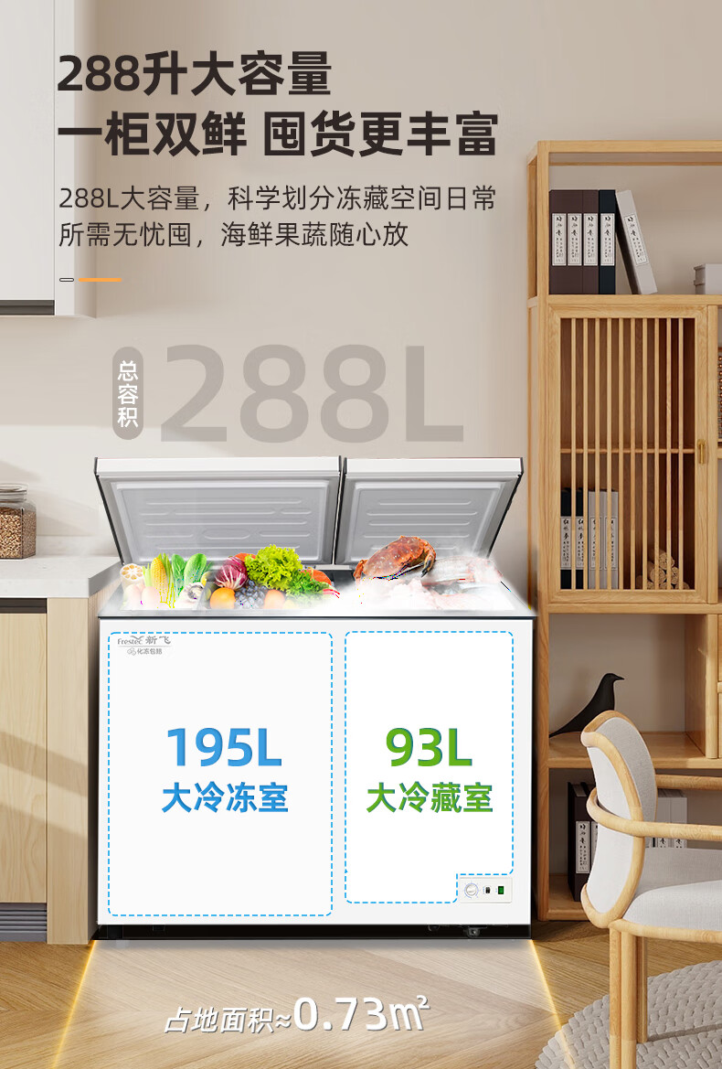 Frestec 288 liter commercial chest freezer left freezing right refrigeration chest refrigerator top door dual temperature double box freezer BCD-288AHST8A