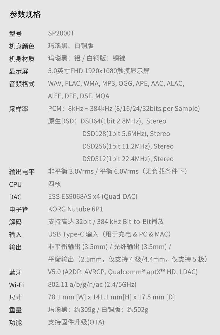 Iriver A&ultima SP2000T white copper version 256G tube amplifier portable HIFI music player lossless mp3 hard decoding DSD