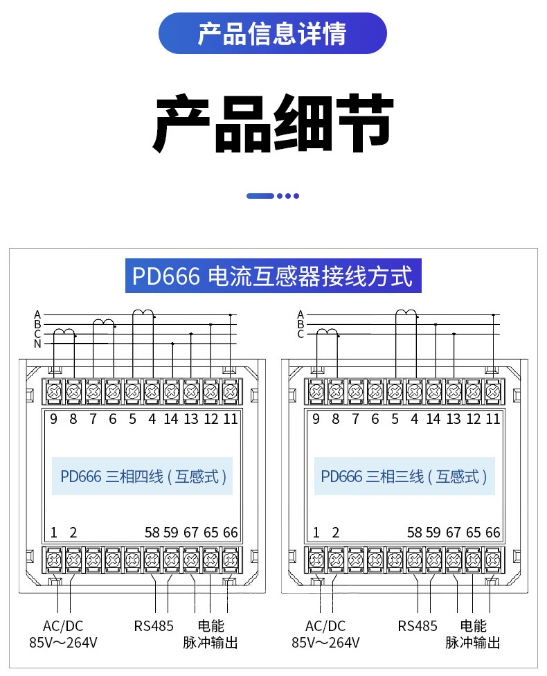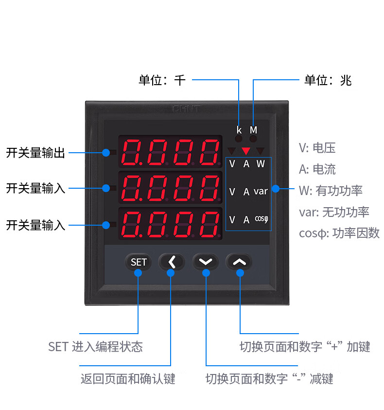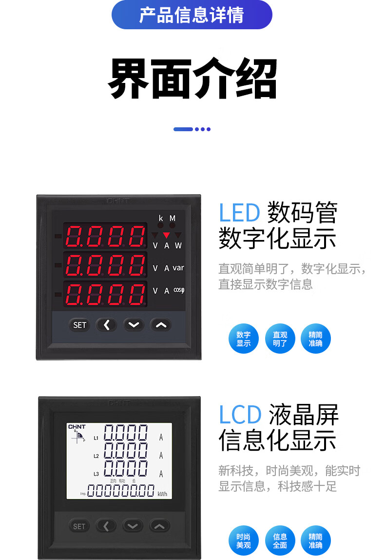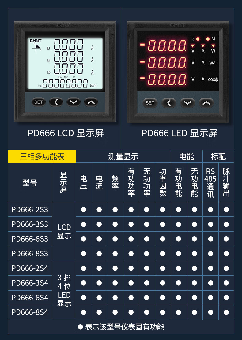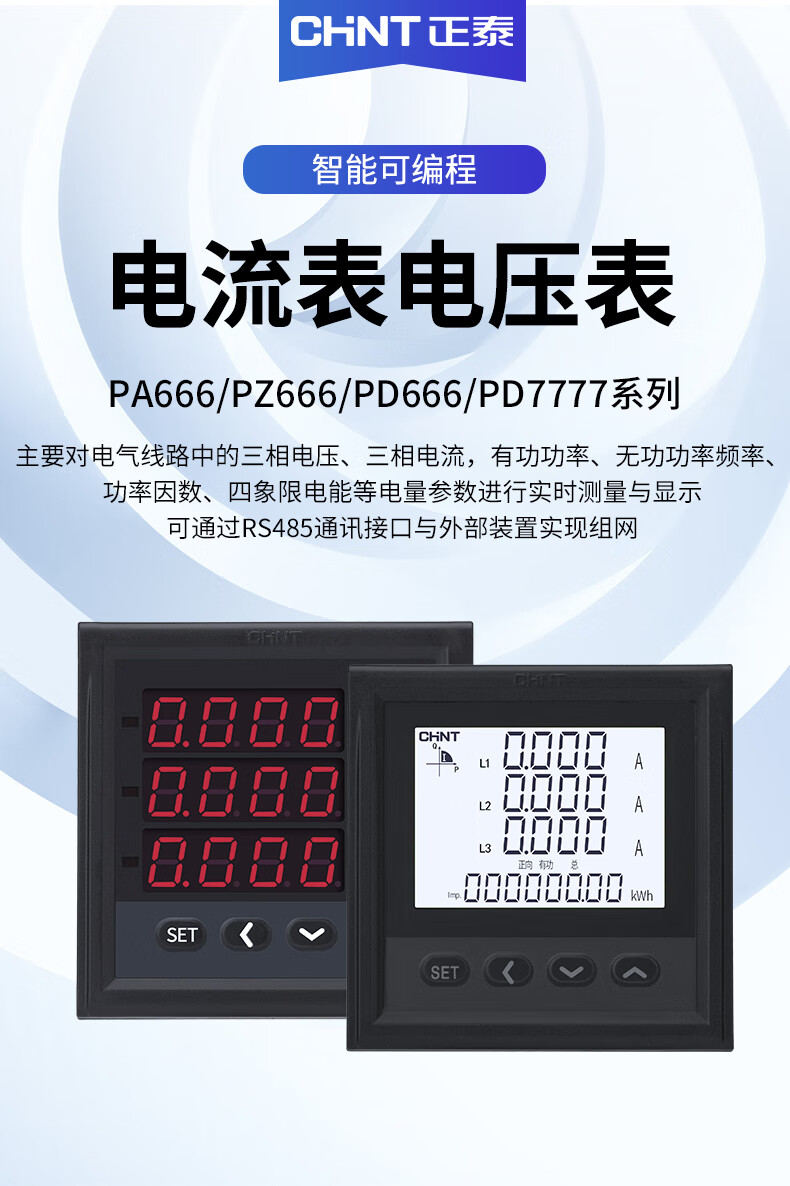 Chint (CHNT) PD666-3S4 economical three-phase multi-function digital display electric energy meter intelligent power detector 380V analog switch LED96*96 panel