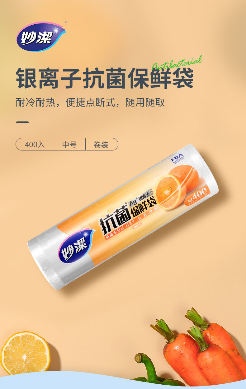 Miaojie antibacterial fresh-keeping bags point-break kitchen refrigerator fresh-keeping food bags medium size 400 pieces