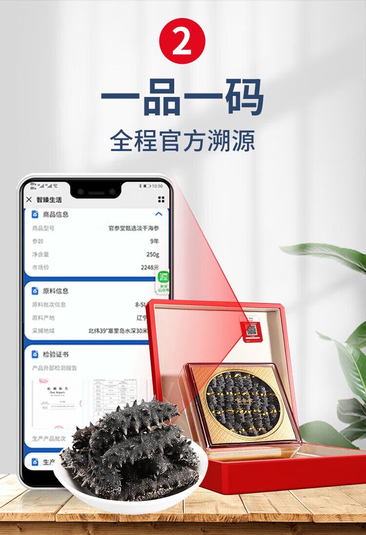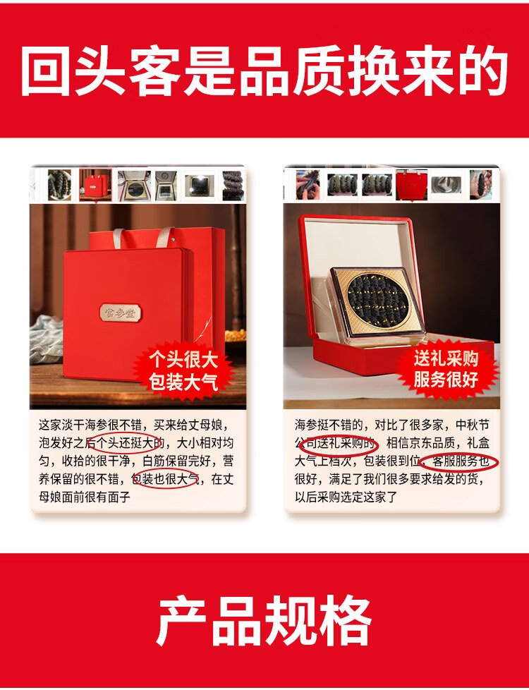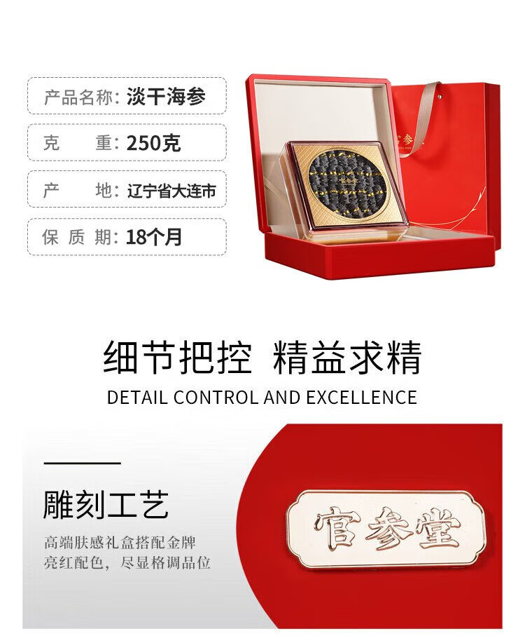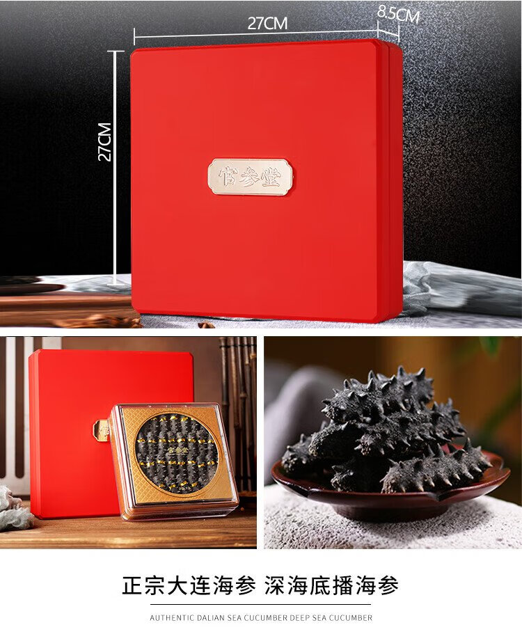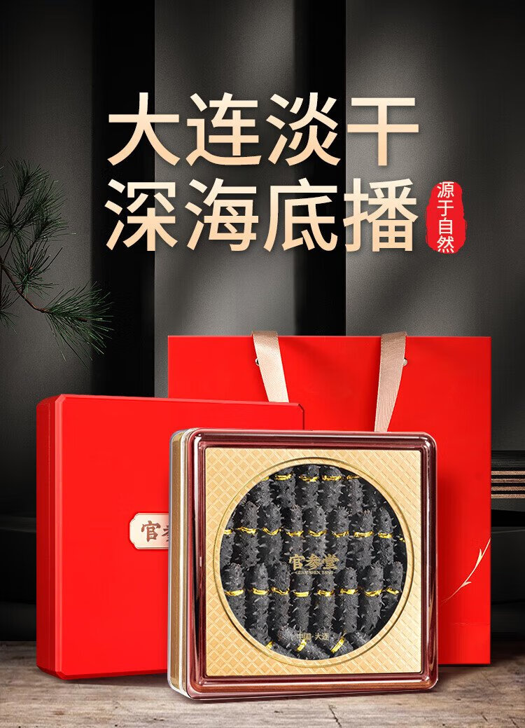 Guanshentang Dalian light-dried sea cucumber dry goods Zhizhen 250g 20-35 pieces bottom-broad sea cucumber seafood gift box