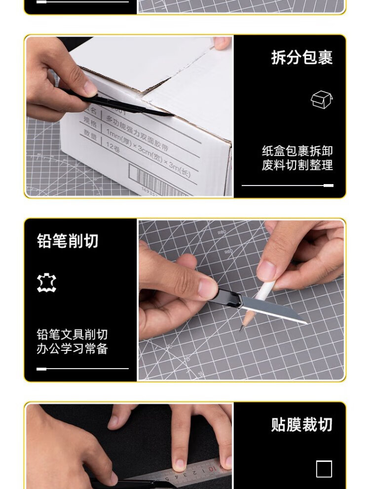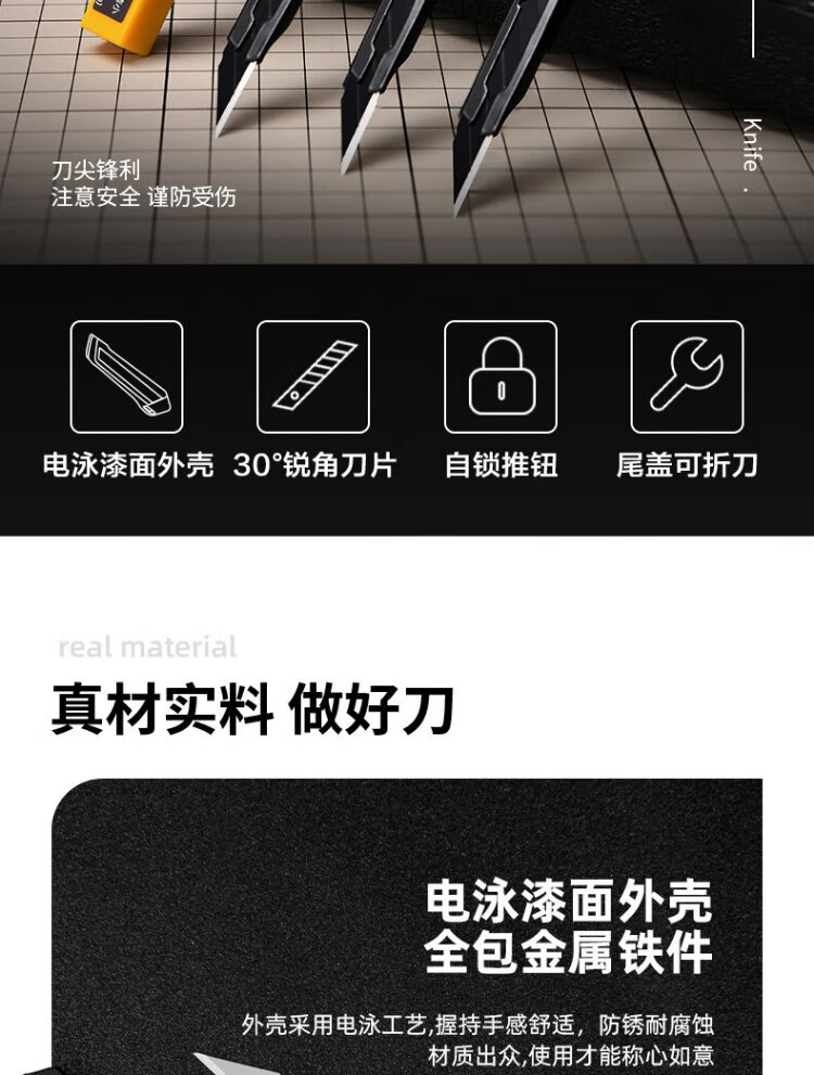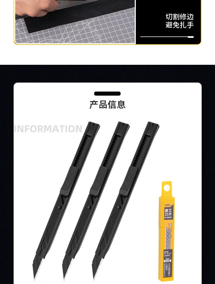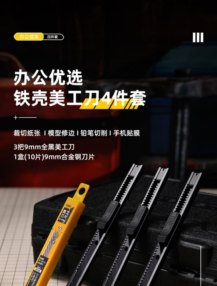 Deli 4-piece iron shell utility knife wallpaper knife paper knife carpet knife express box opening knife 9mm 3 knives + blade