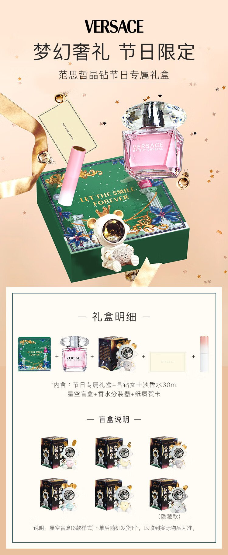 Versace (VERSACE) perfume gift box pink sparkling diamond ladies eau de toilette 30ml holiday birthday gift for girlfriend blind box gift box