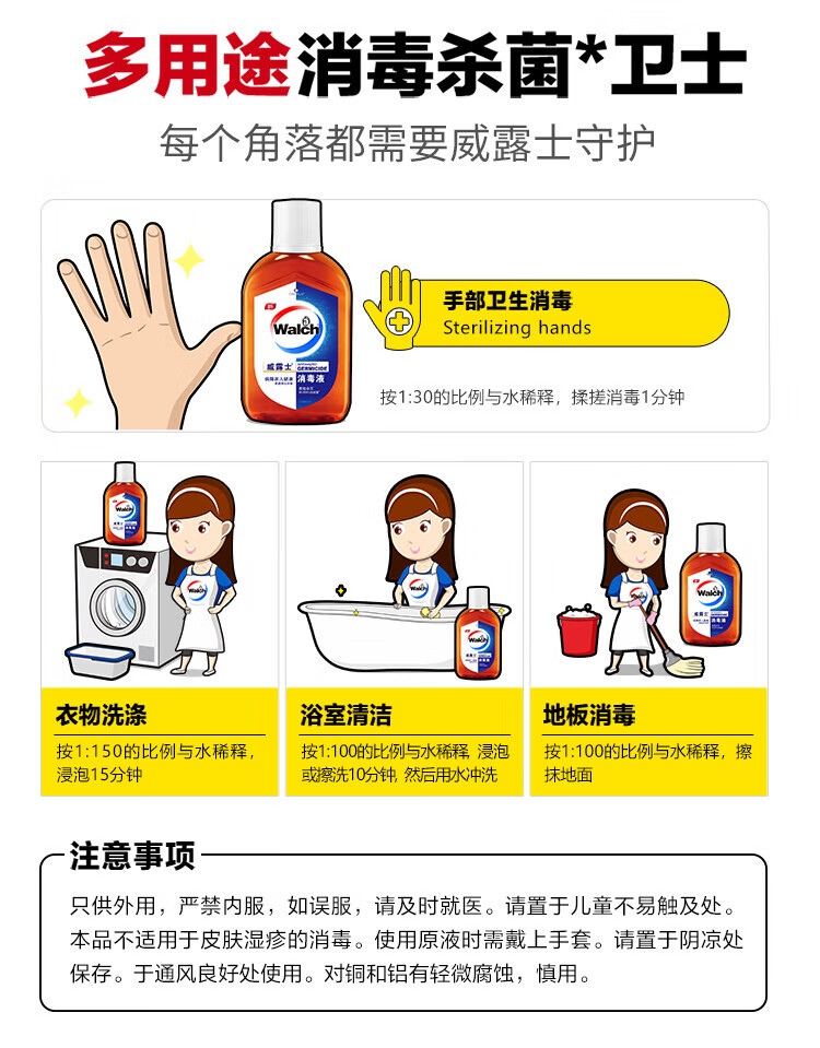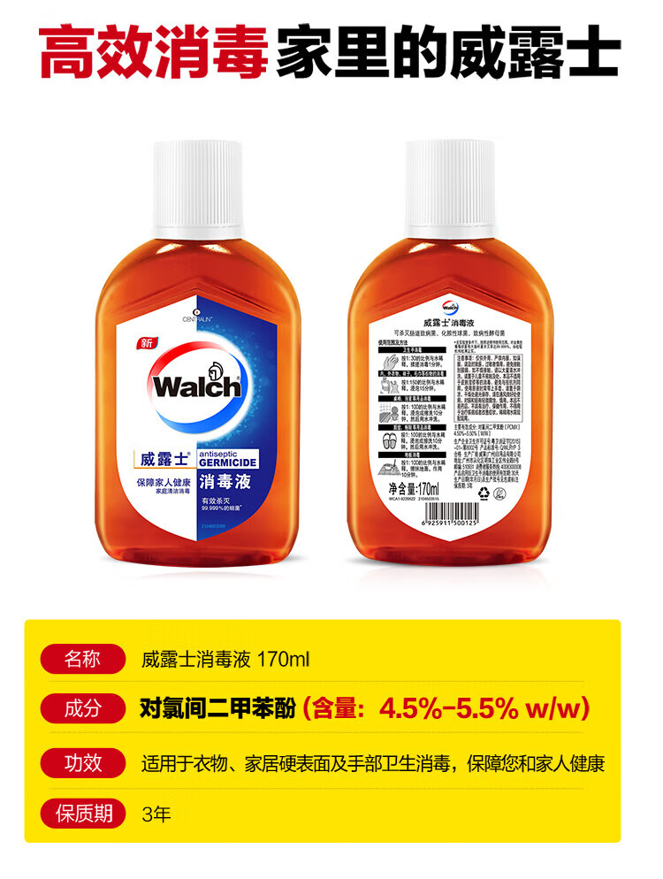 Walch disinfectant 170ml clothing sterilization liquid influenza A virus disinfectant water household pet sterilization non-84 alcohol
