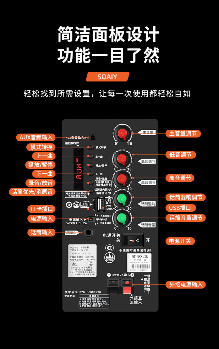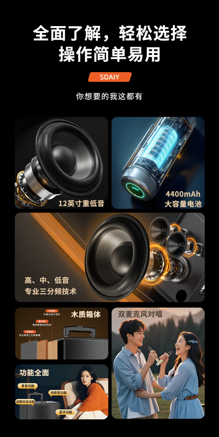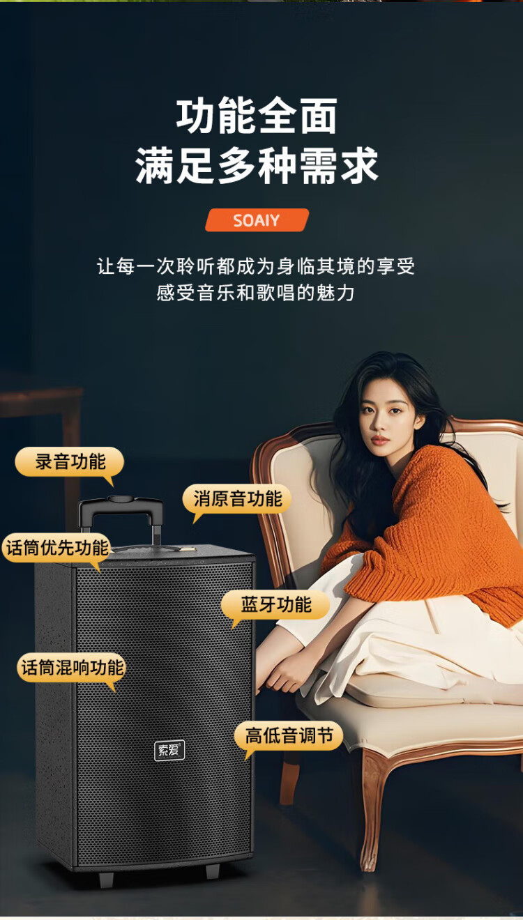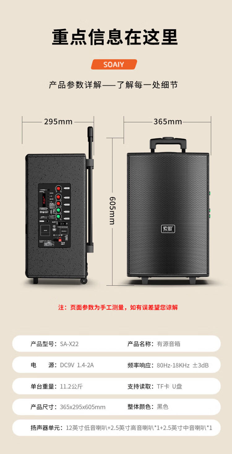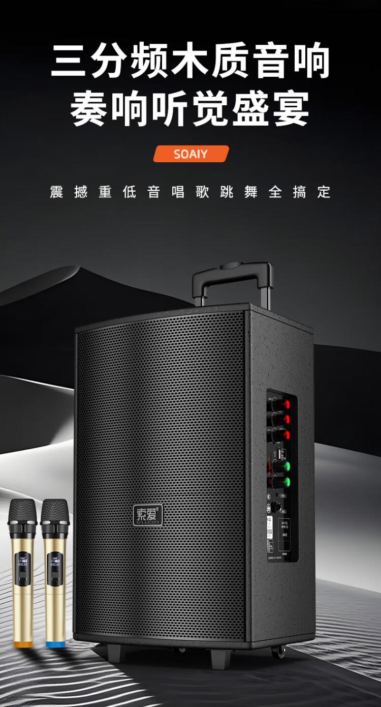 Sony Ericsson (soaiy) 12-inch square dance audio wooden high-power portable outdoor heavy bass Bluetooth karaoke special high-volume mobile trolley speaker outdoor performance dual microphone SA-X22