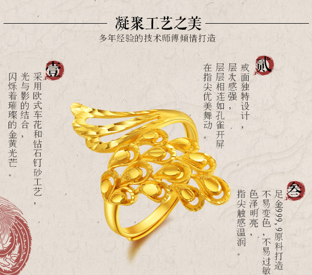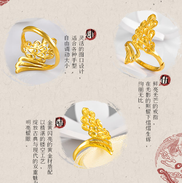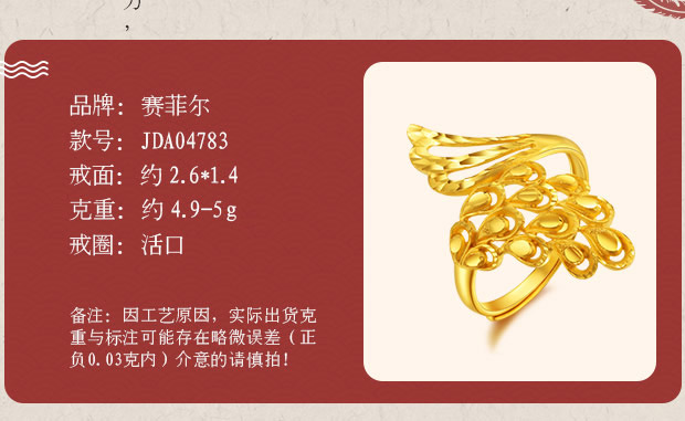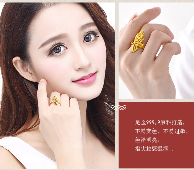 Safir gift gold ring for women, pure gold 999.9 Feng Qiuhuang live mouth pure gold women's ring, live mouth, about 5.05 grams