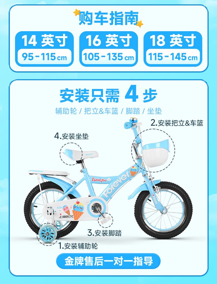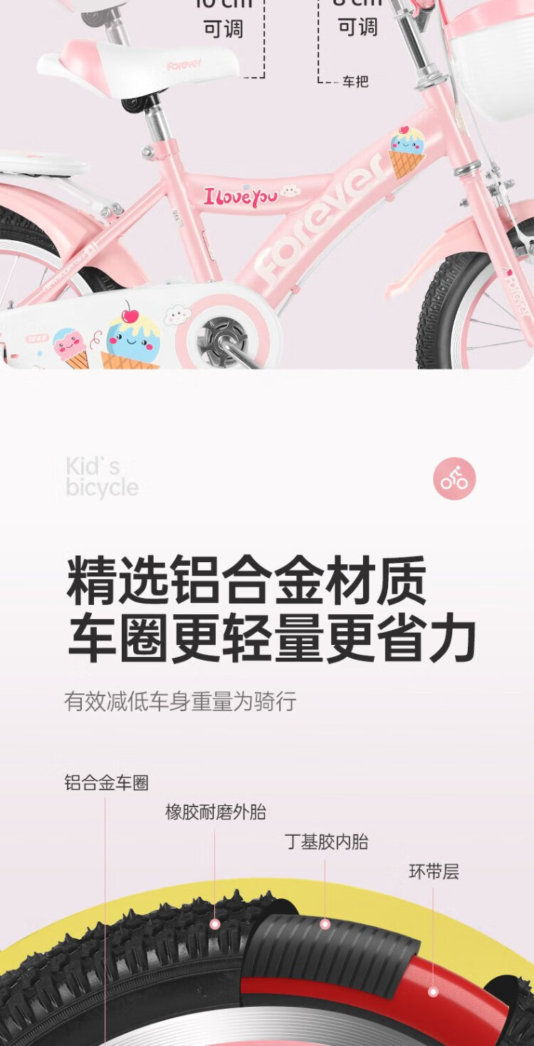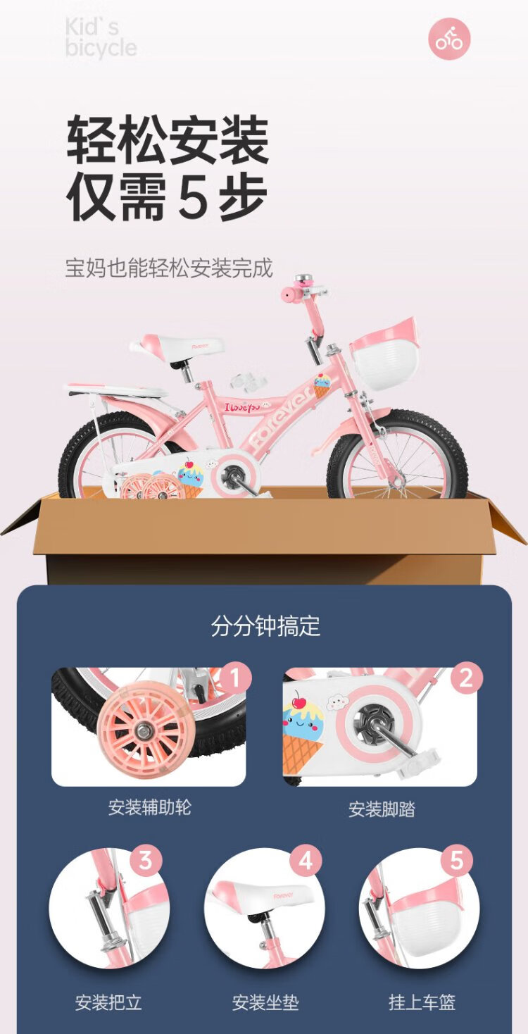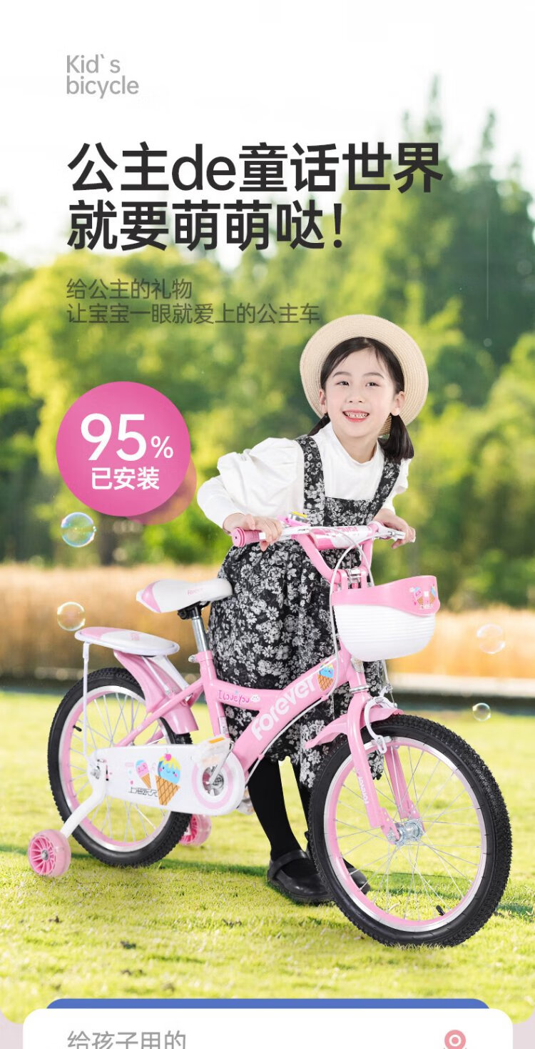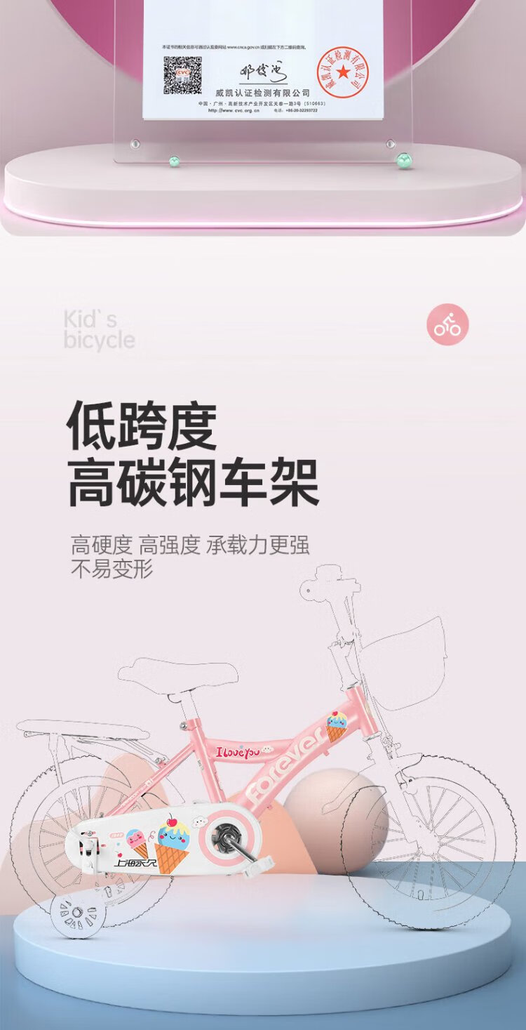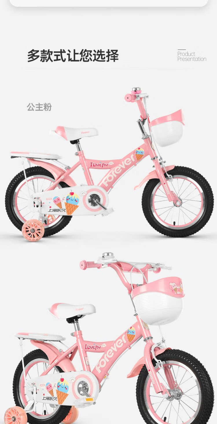 FOREVER (FOREVER) children's bicycle 6-10 year old male and female baby bicycle princess pink 14 inches suitable for height 95-115cm