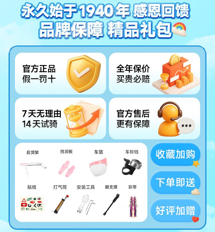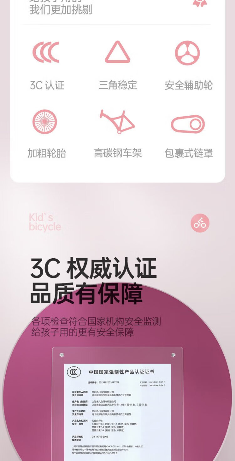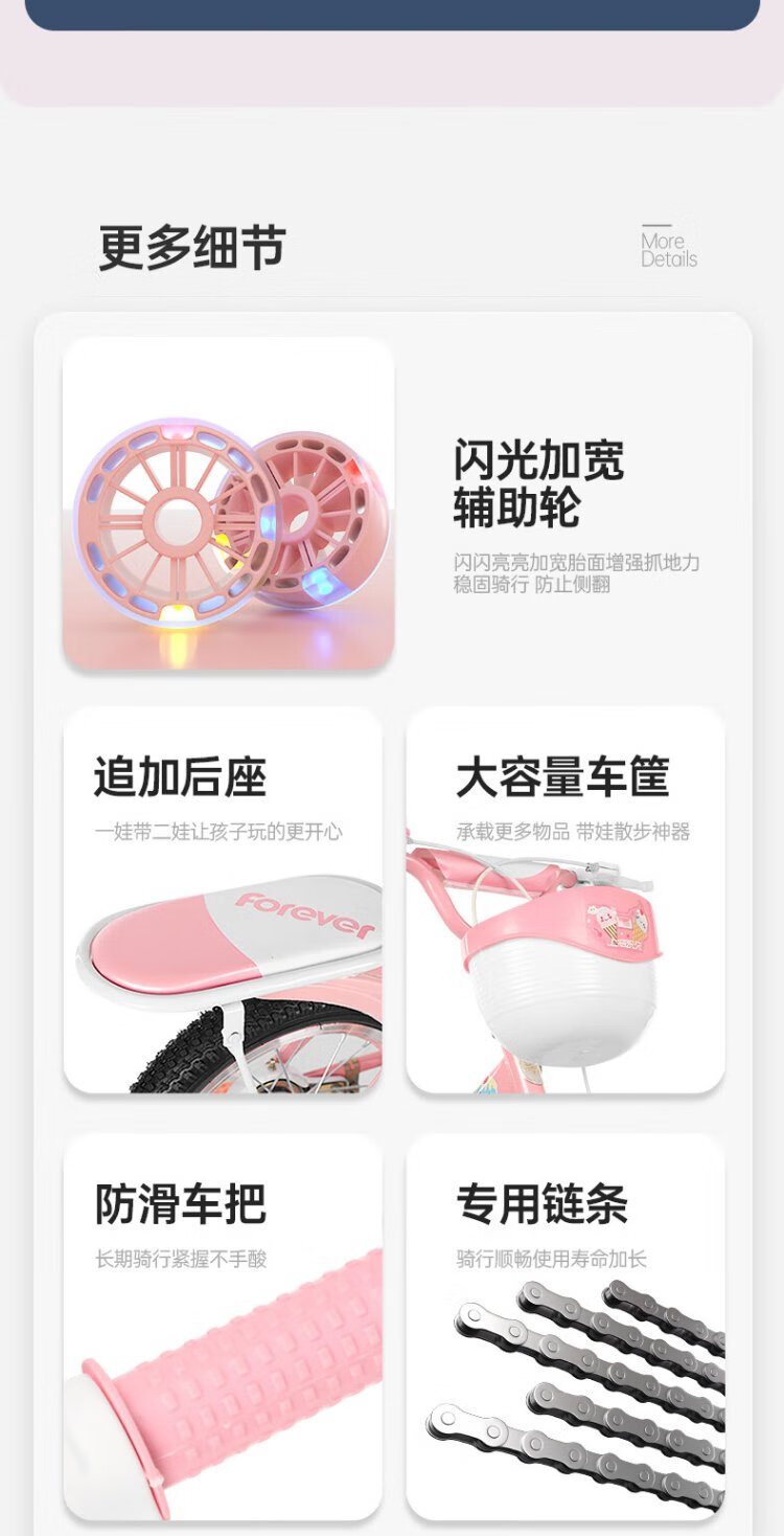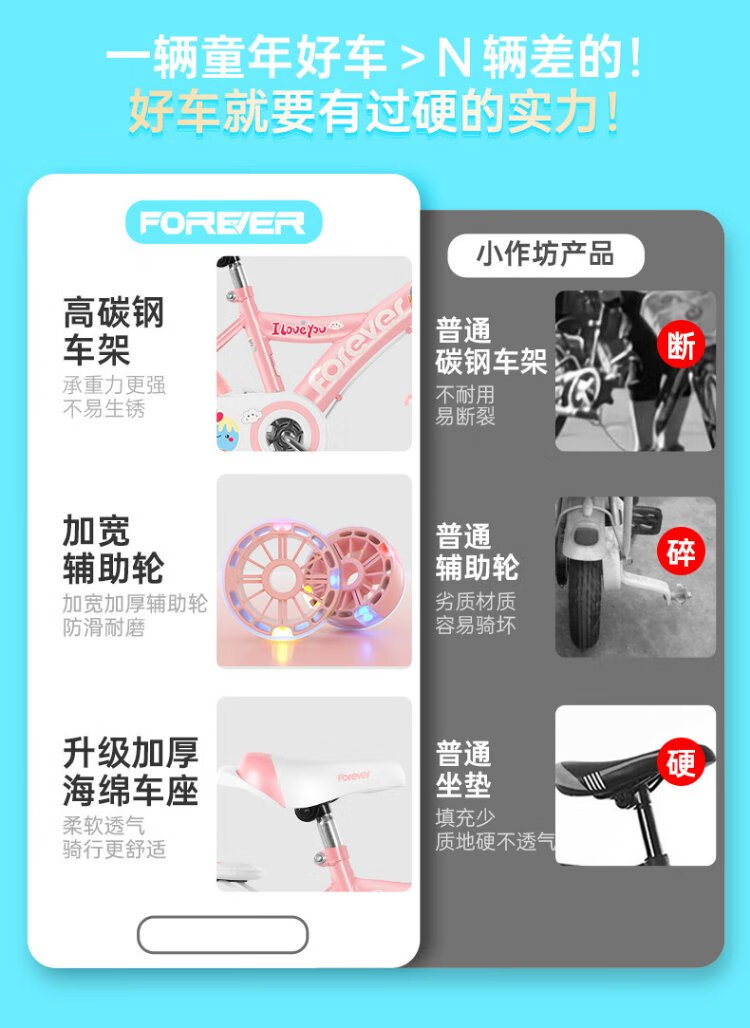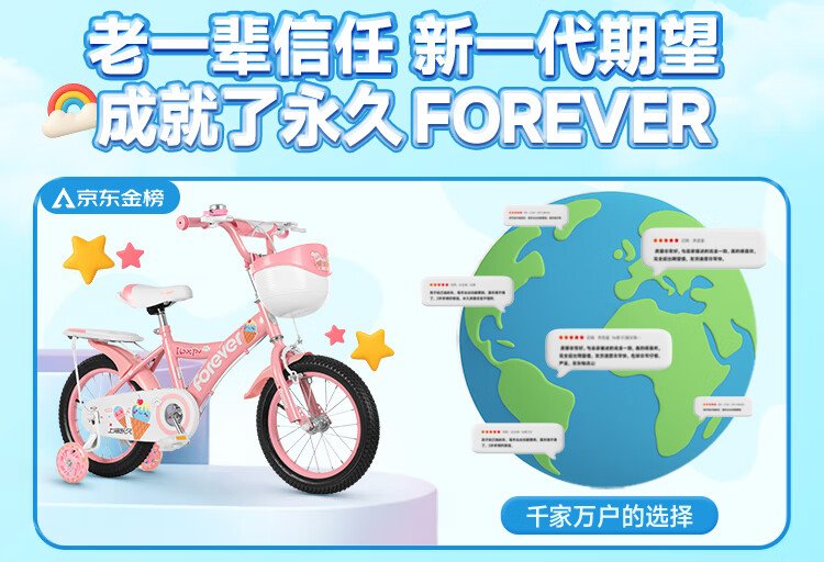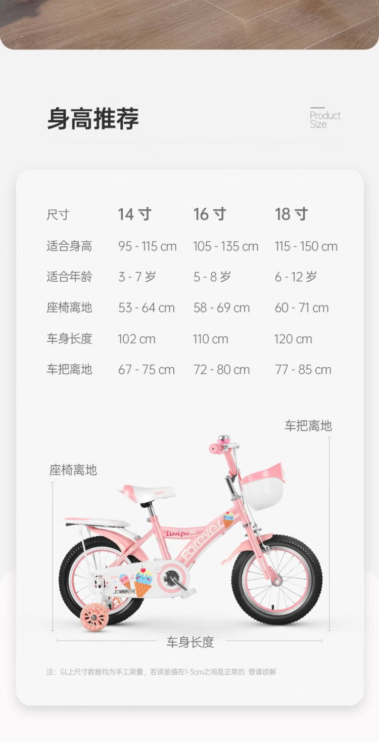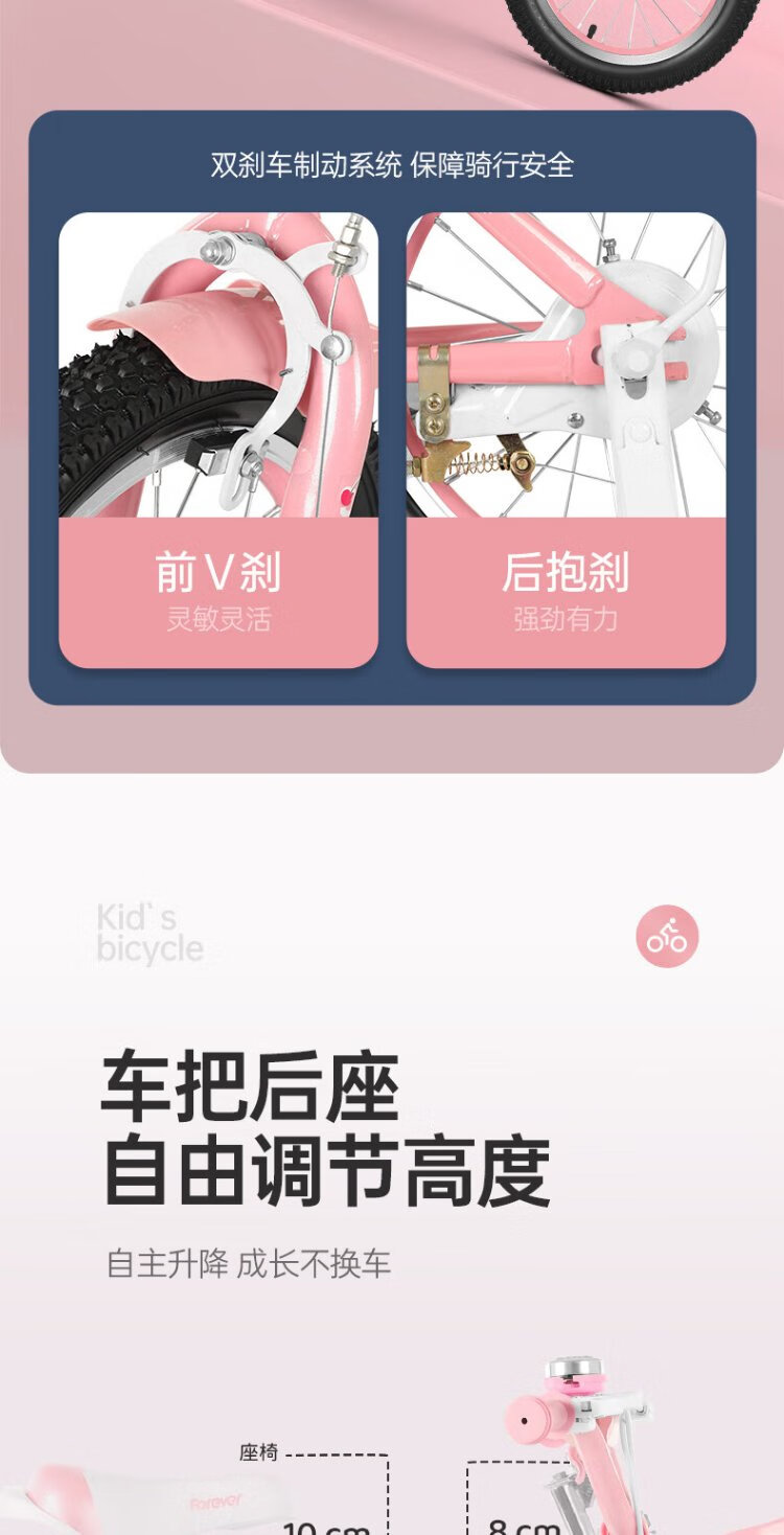FOREVER (FOREVER) children's bicycle 6-10 year old male and female baby bicycle princess pink 14 inches suitable for height 95-115cm