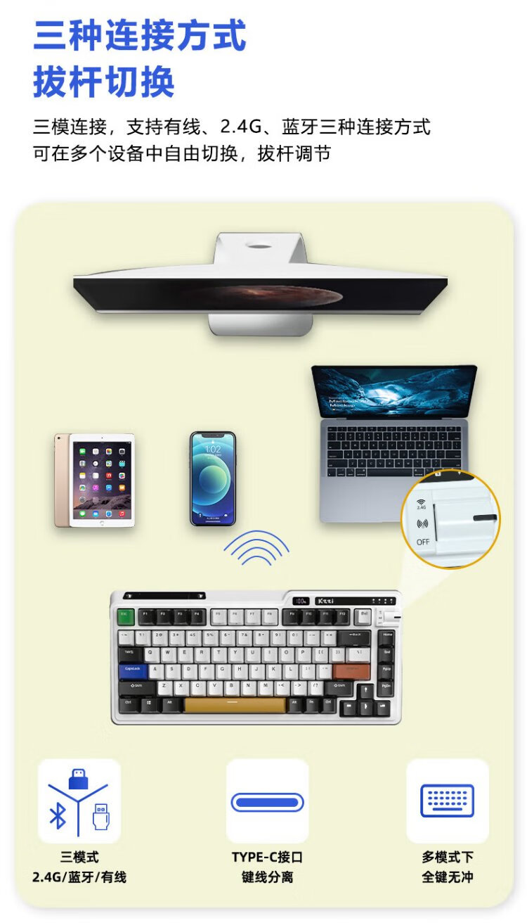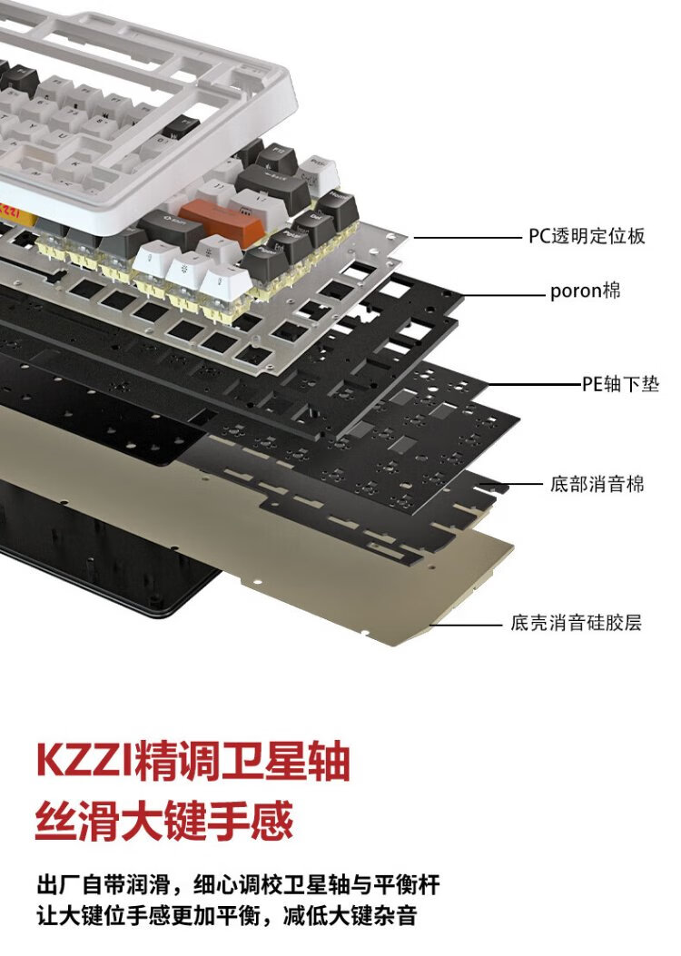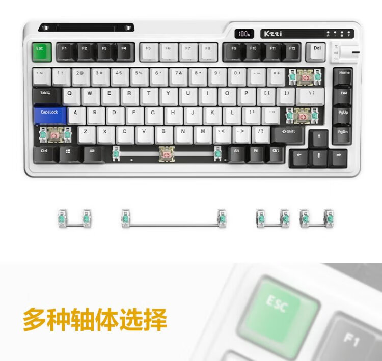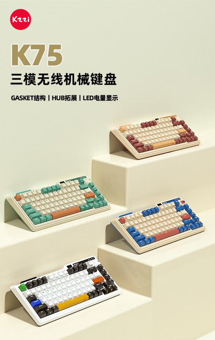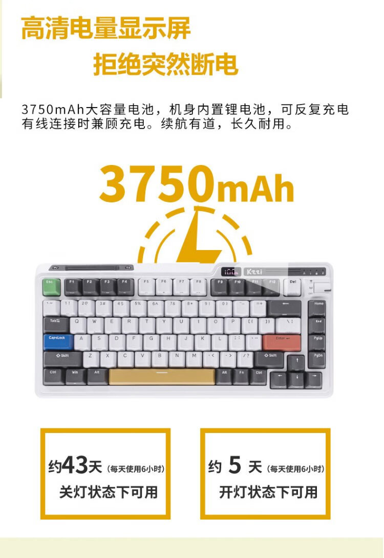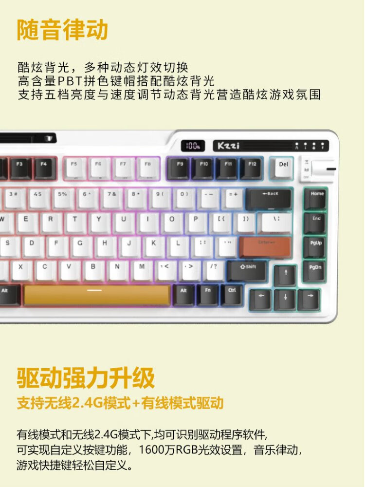 KZZI K75 mechanical keyboard wired Bluetooth wireless 2.4G three-mode gasket structure 82 keys 75 configuration PBT keycap RGB backlight time machine version TTC gold powder axis V2