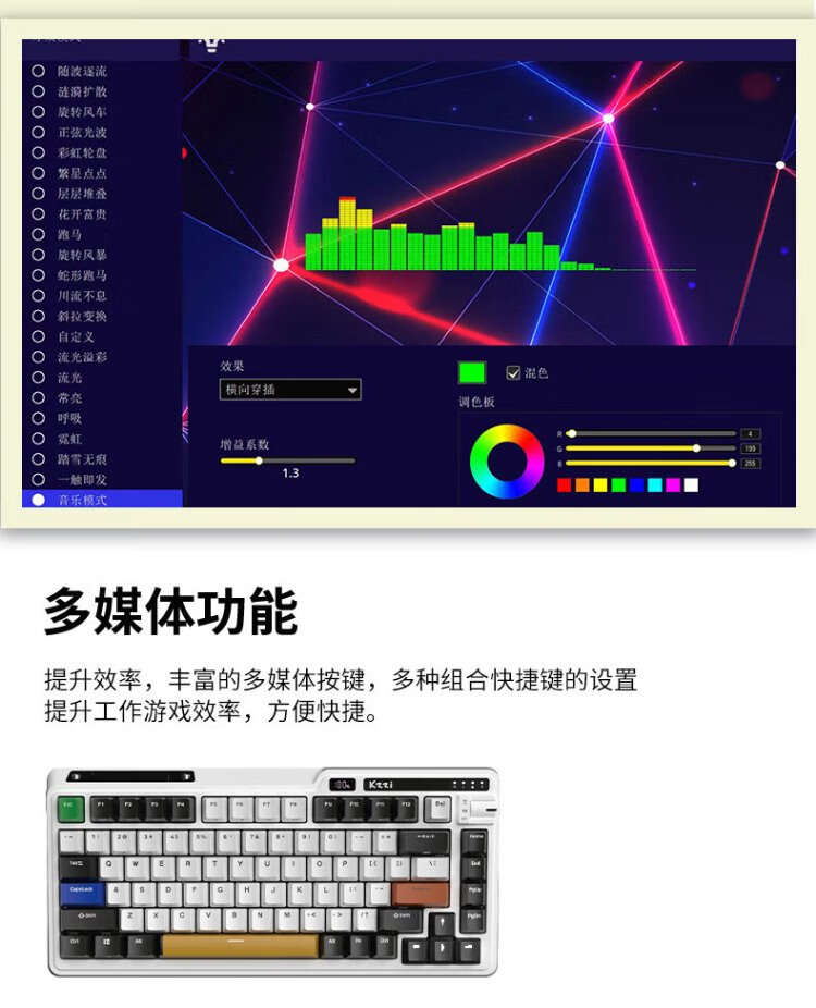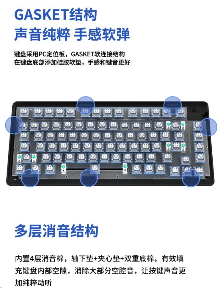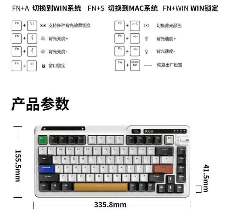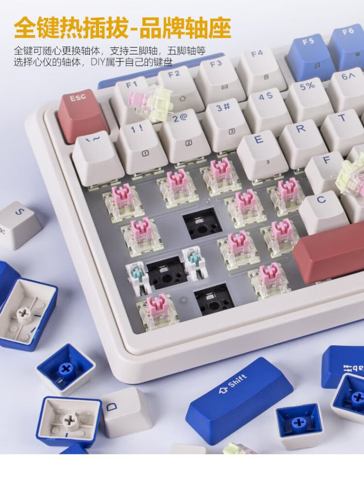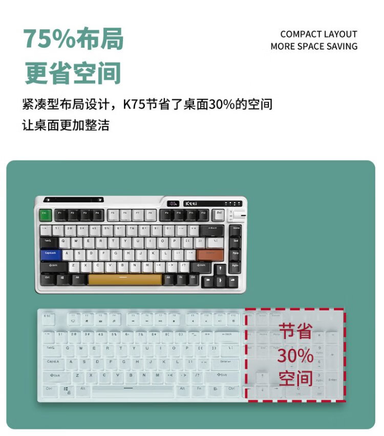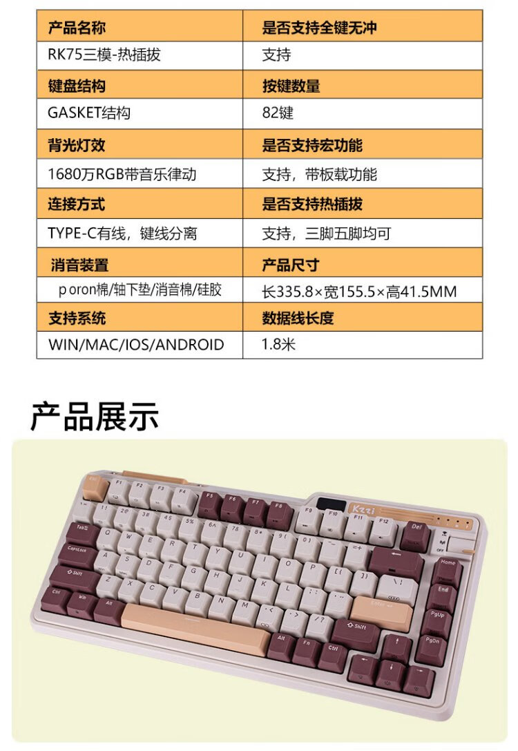 KZZI K75 mechanical keyboard wired Bluetooth wireless 2.4G three-mode gasket structure 82 keys 75 configuration PBT keycap RGB backlight time machine version TTC gold powder axis V2