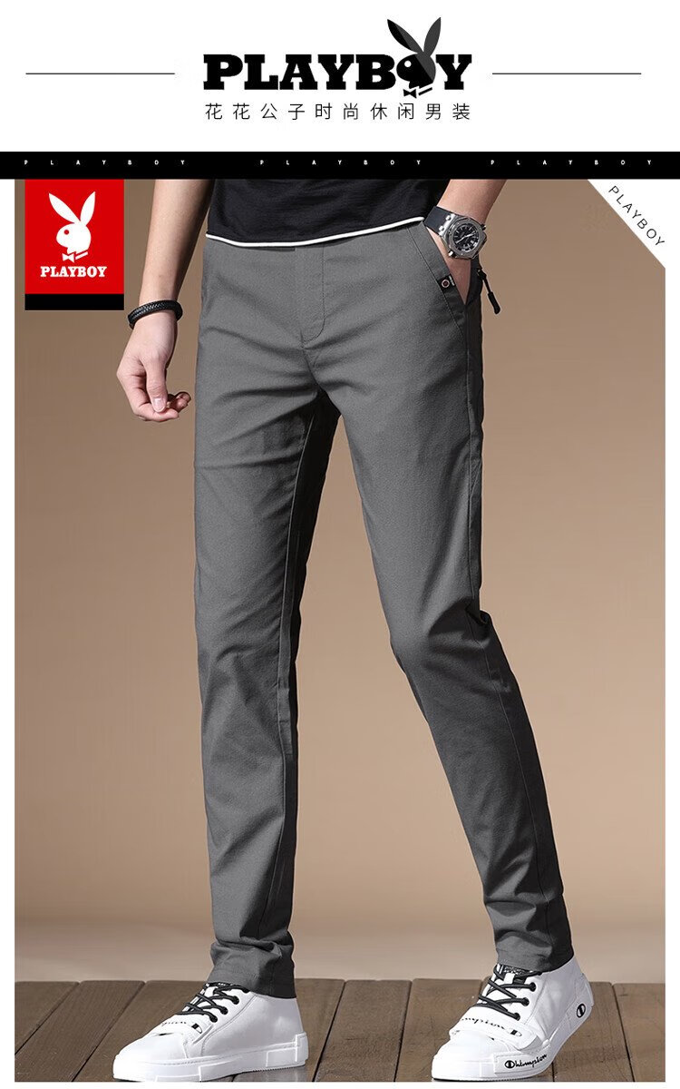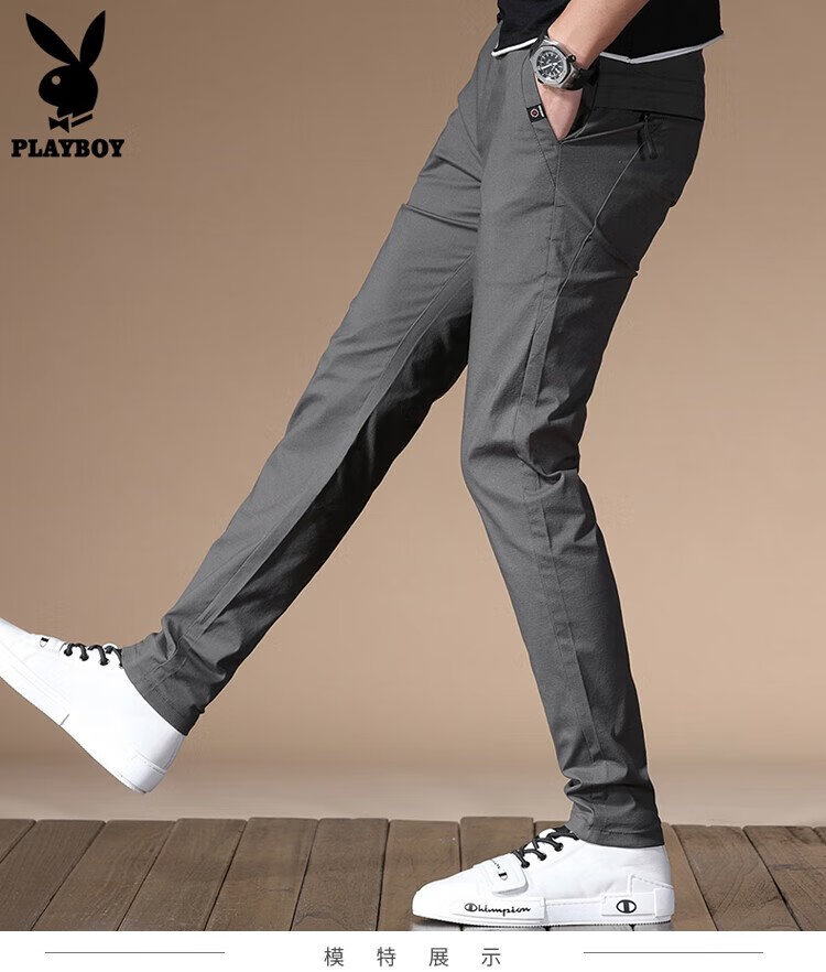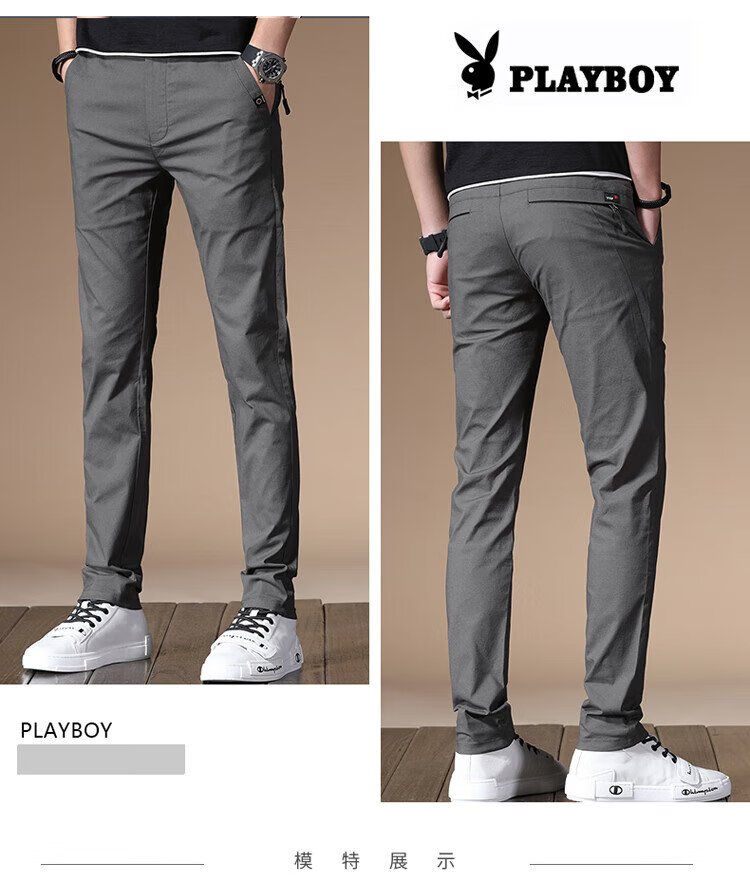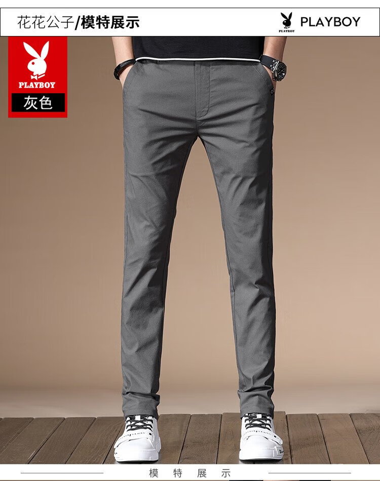 PLAYBOY Casual Pants Men's Autumn and Winter Pants Men's Korean Slim Fashion Small Feet Solid Color Business Men's Pants Gray 32