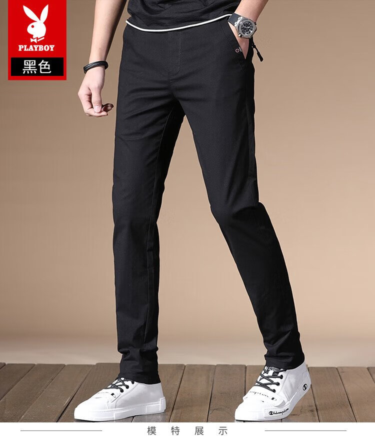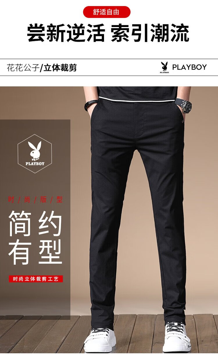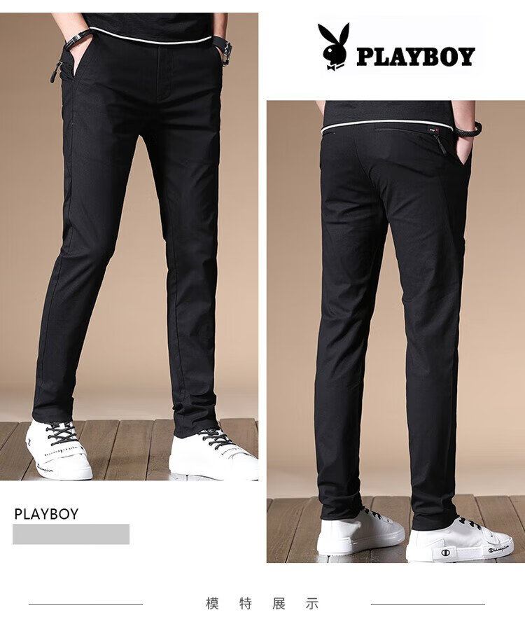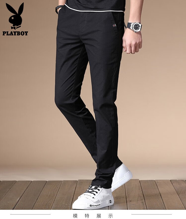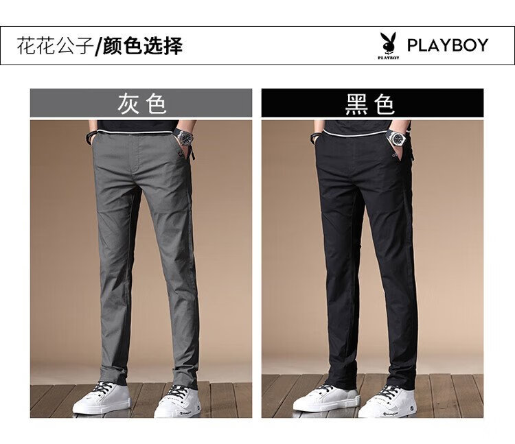 PLAYBOY Casual Pants Men's Autumn and Winter Pants Men's Korean Slim Fashion Small Feet Solid Color Business Men's Pants Gray 32