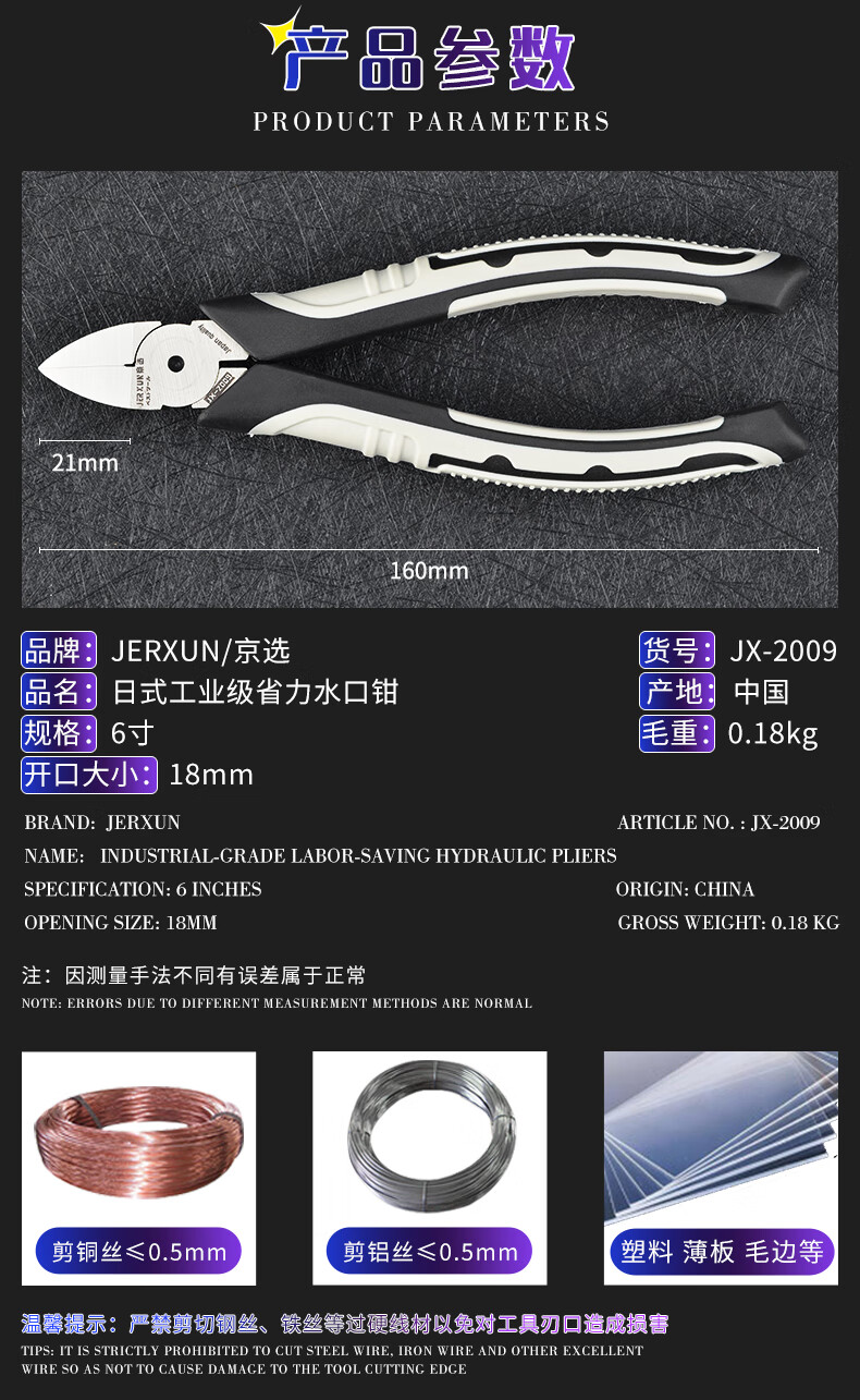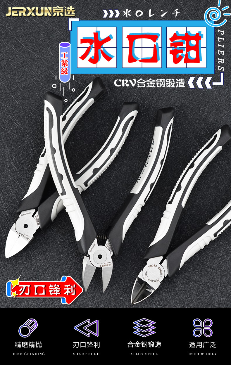 JERXUN 6-inch water mouth pliers, oblique nose pliers, oblique nose pliers, flat nose pliers, oblique nose, offset mouth, wire cutters, electrician electronic model scissors