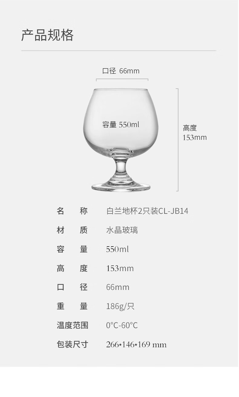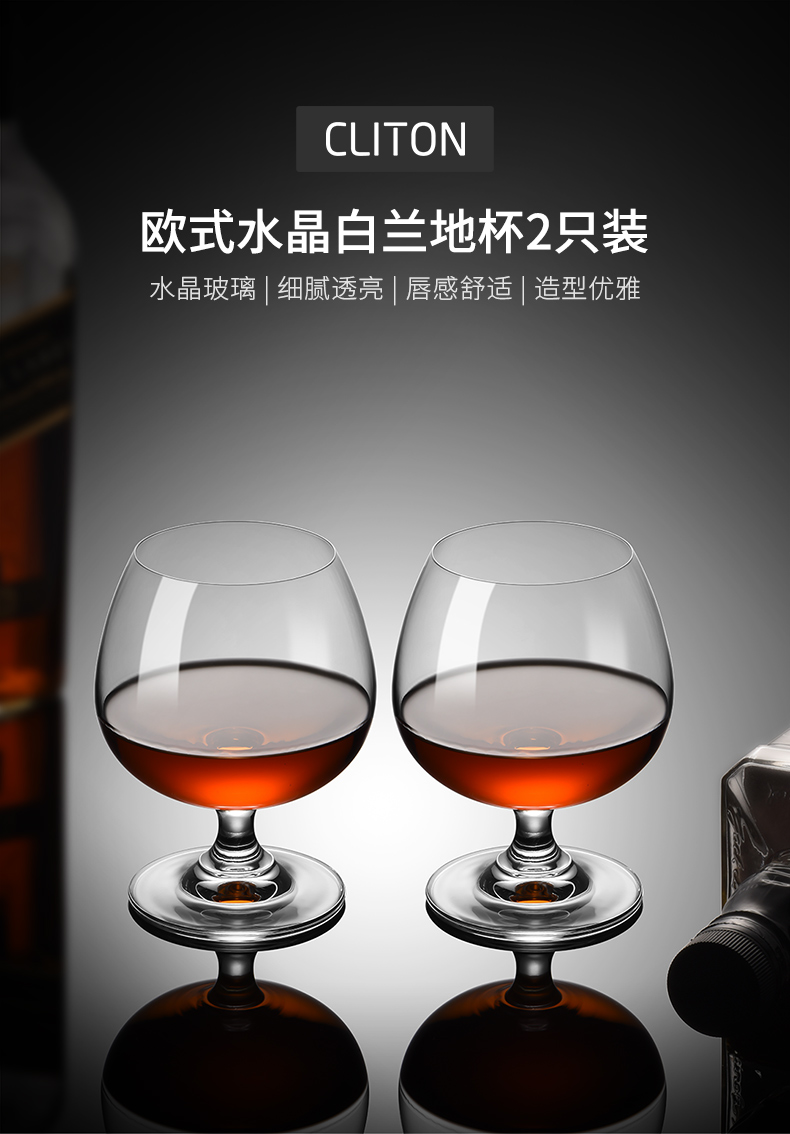 CLITON Brandy Glass European Crystal Glass Wine Glass Spirit Cup Short Stem Whiskey Glass 2 Pack CL-JB14