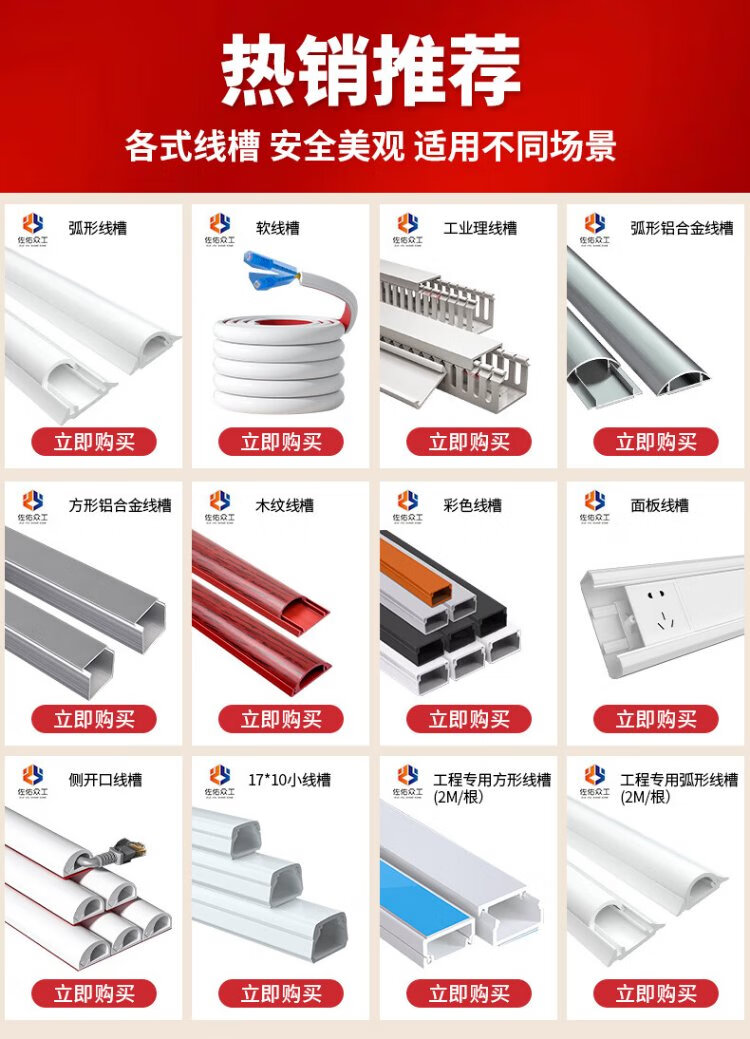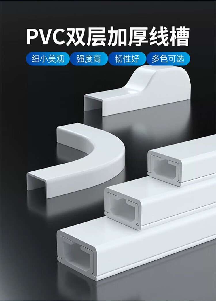 Zuoyou Zhonggong PVC cable trough, surface-mounted cable trough, open-wire cable trough, self-adhesive network cable management trough, cable routing artifact, square cable trough 20*10 double layer thickened 5 meters/set with 12 accessories