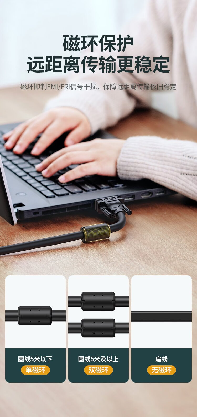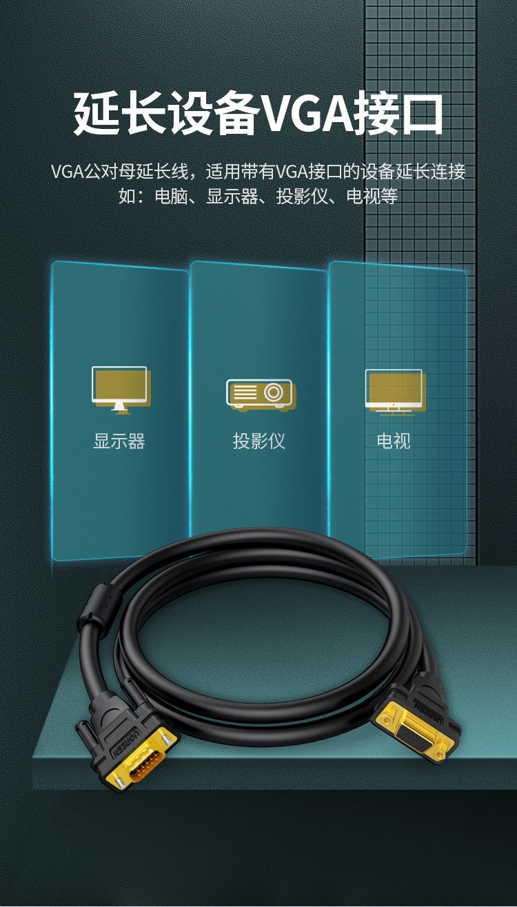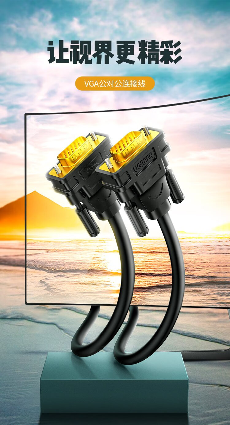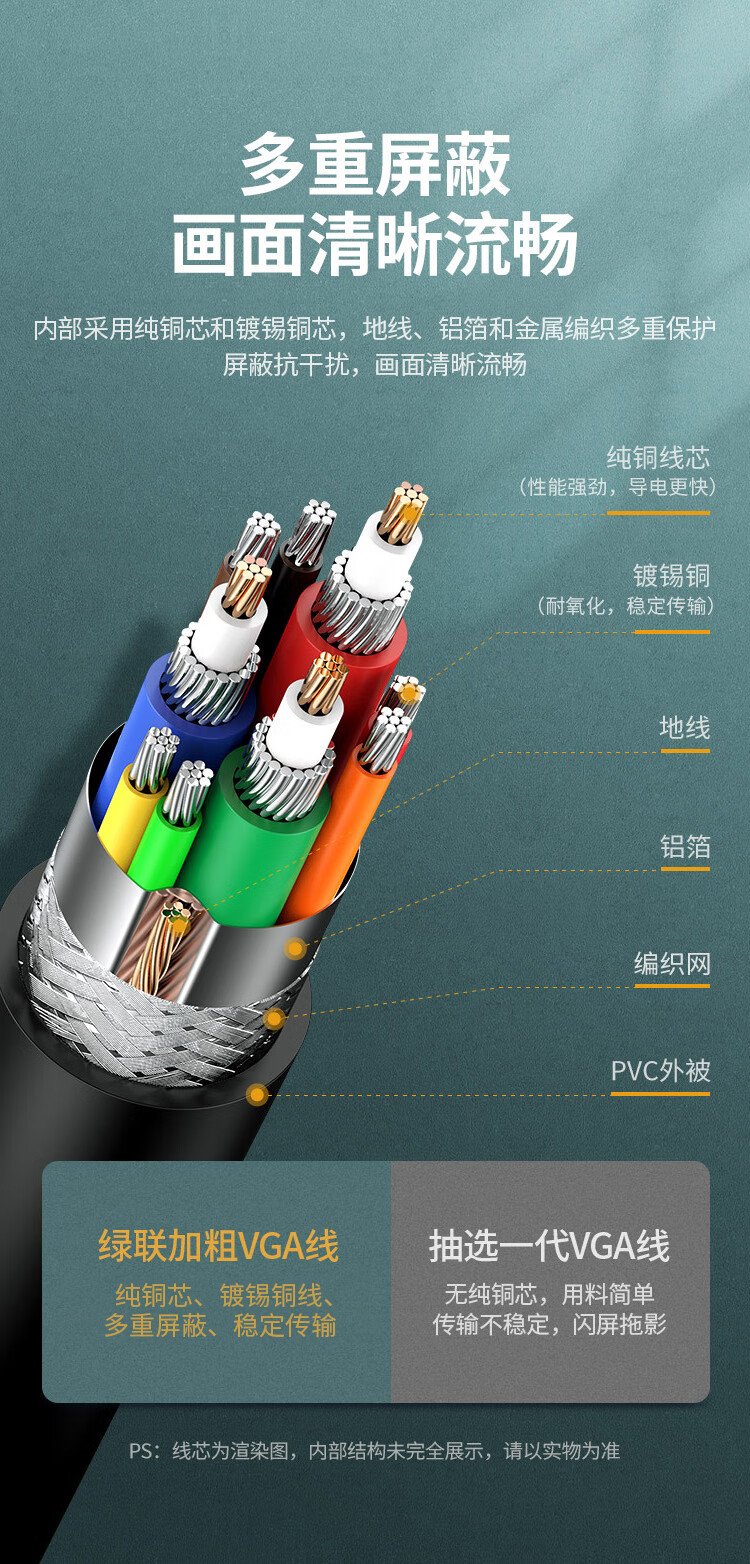 Greenlink engineering grade VGA cable 3+6 pure copper core male to male video connection cable with magnetic ring suitable for computer host connected to TV monitor projector 2 meters 11646