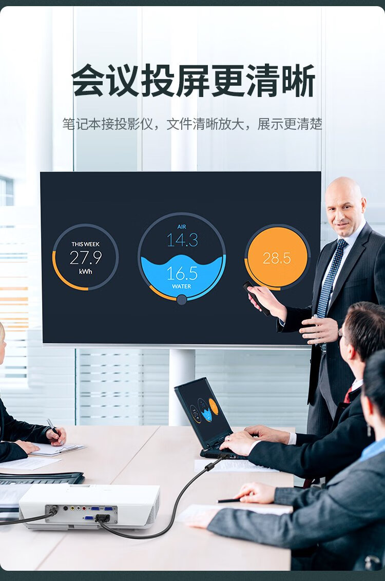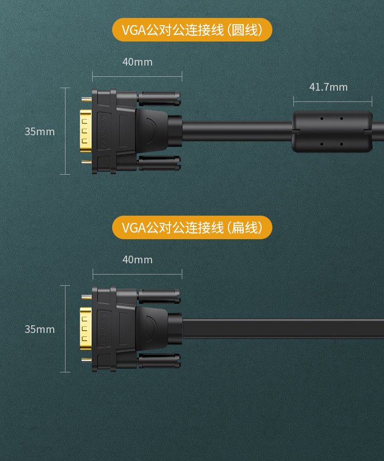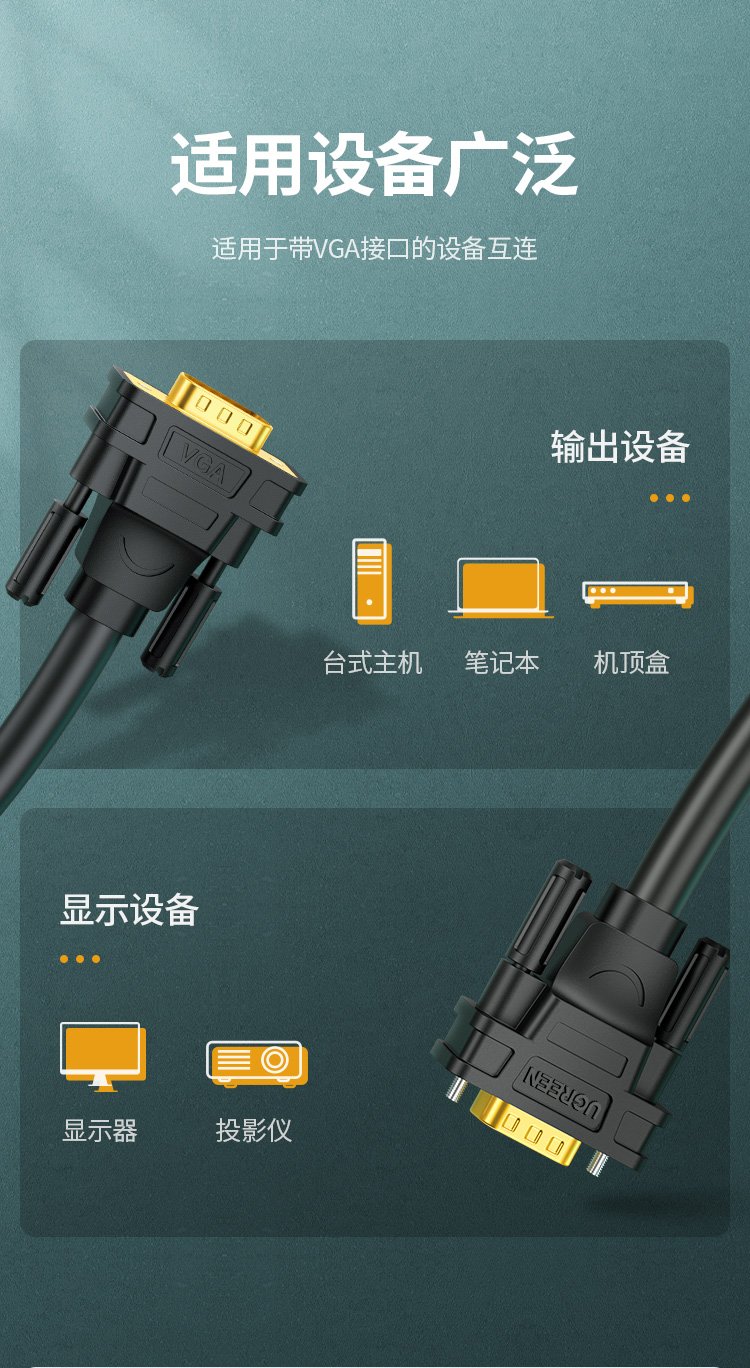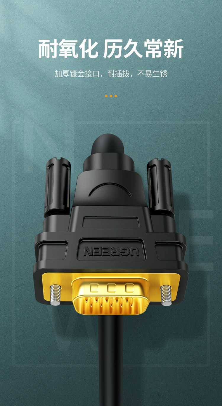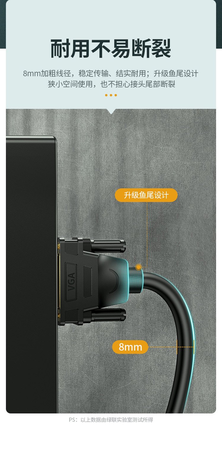 Greenlink engineering grade VGA cable 3+6 pure copper core male to male video connection cable with magnetic ring suitable for computer host connected to TV monitor projector 2 meters 11646