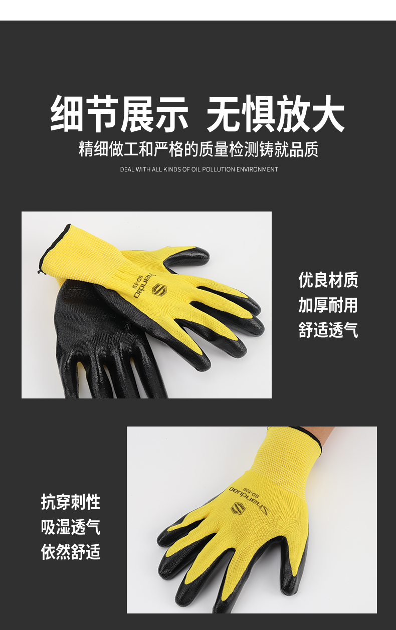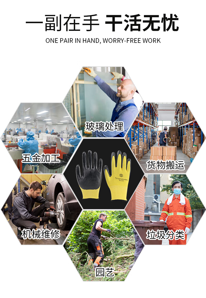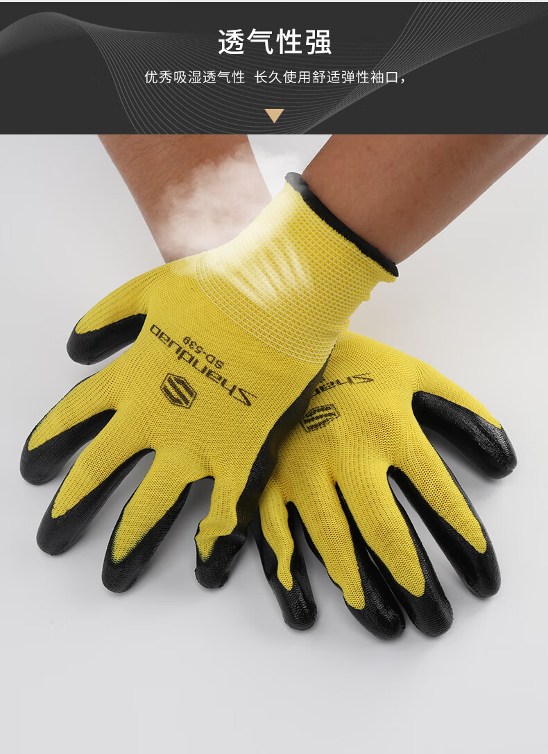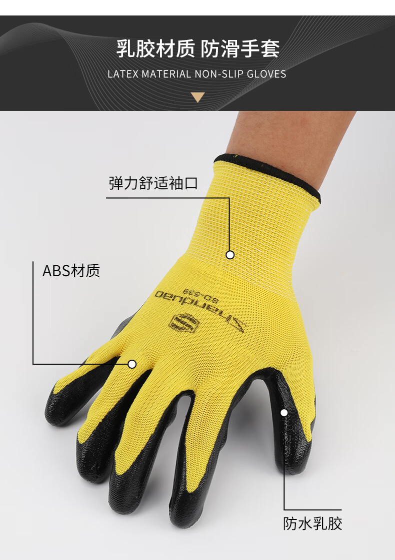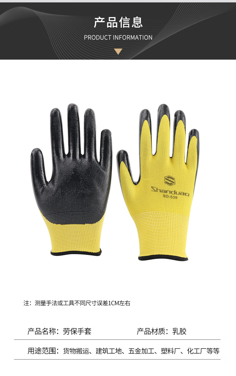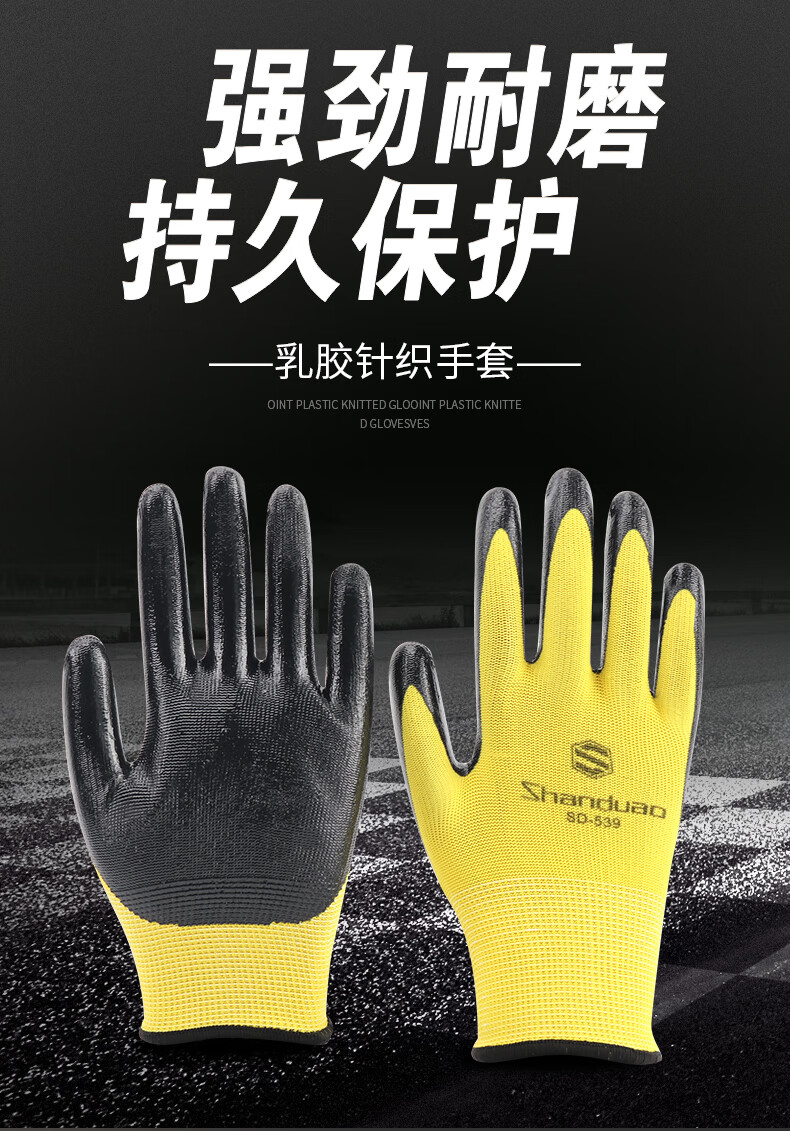 Sanduao Dip Gloves Latex Coated Wear-Resistant Breathable Labor Protection Gloves SD-546 (2 Pairs) One Size