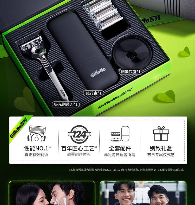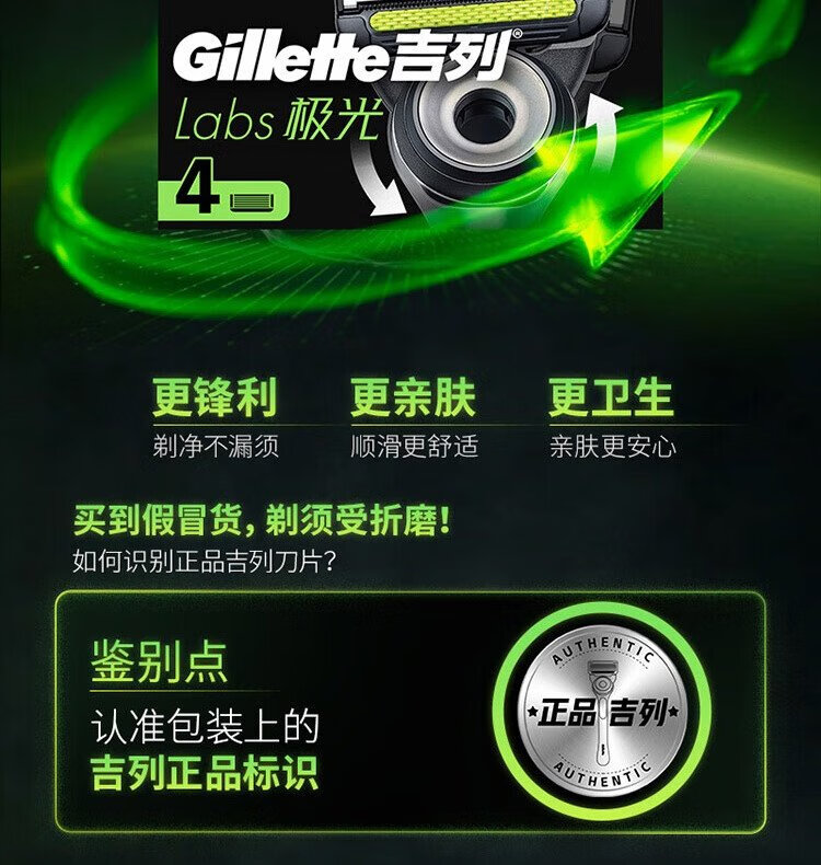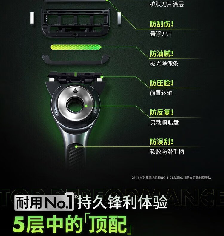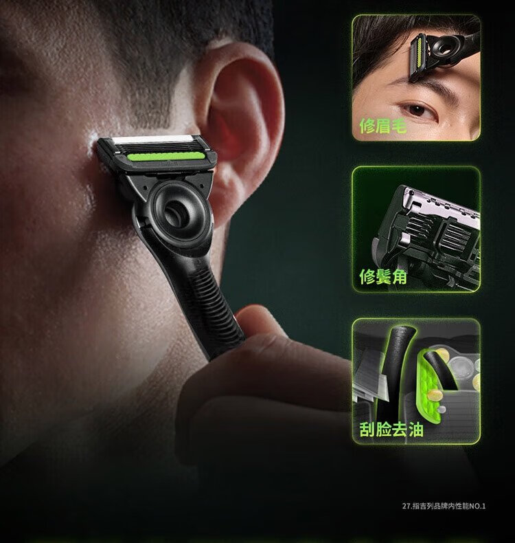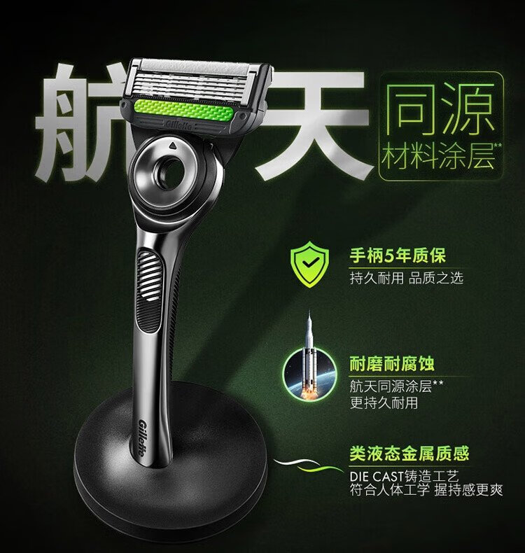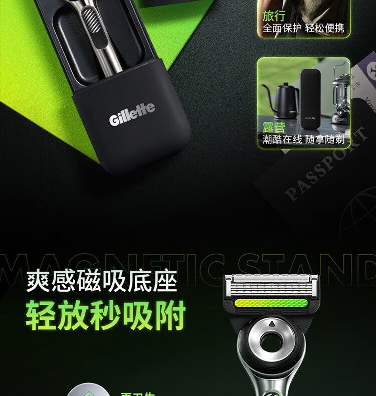 Gillette manual razor Aurora knife, anti-scratch, high-end travel portable, can be brought on the plane, manual razor, practical gift for men, 5-layer blade, 1 blade holder, 4 blades, non-Geely