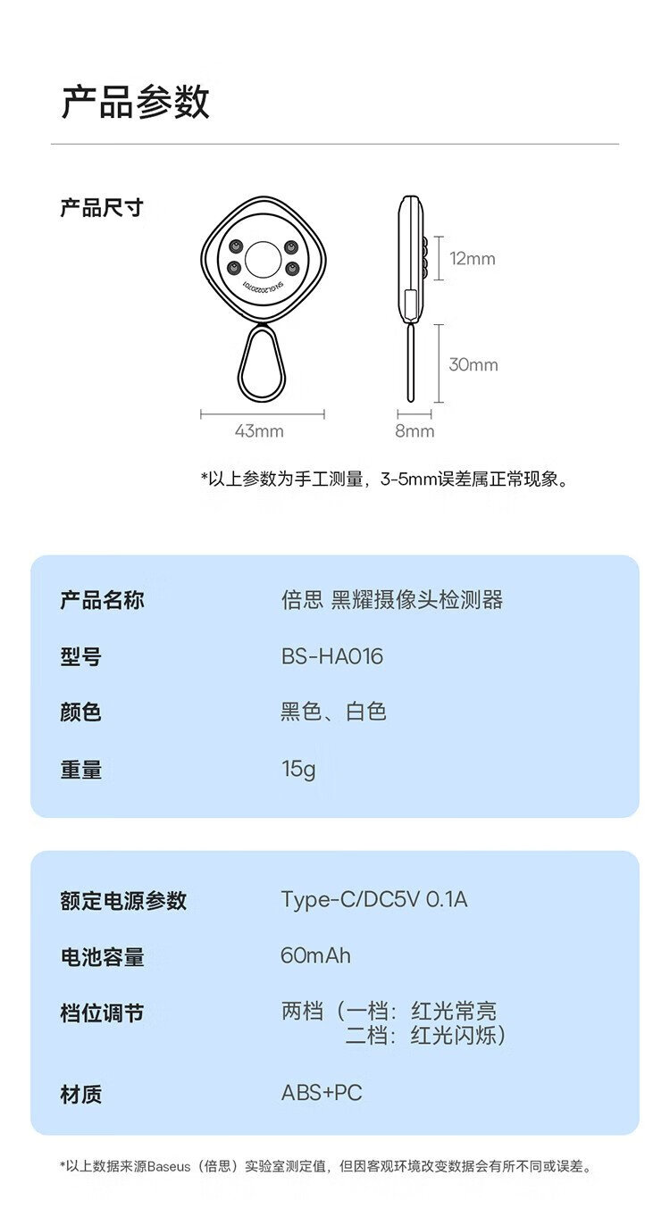 Baseus hotel camera detector signal detector rechargeable small infrared scanning camera detector anti-monitoring portable suitable for hotels and B&Bs