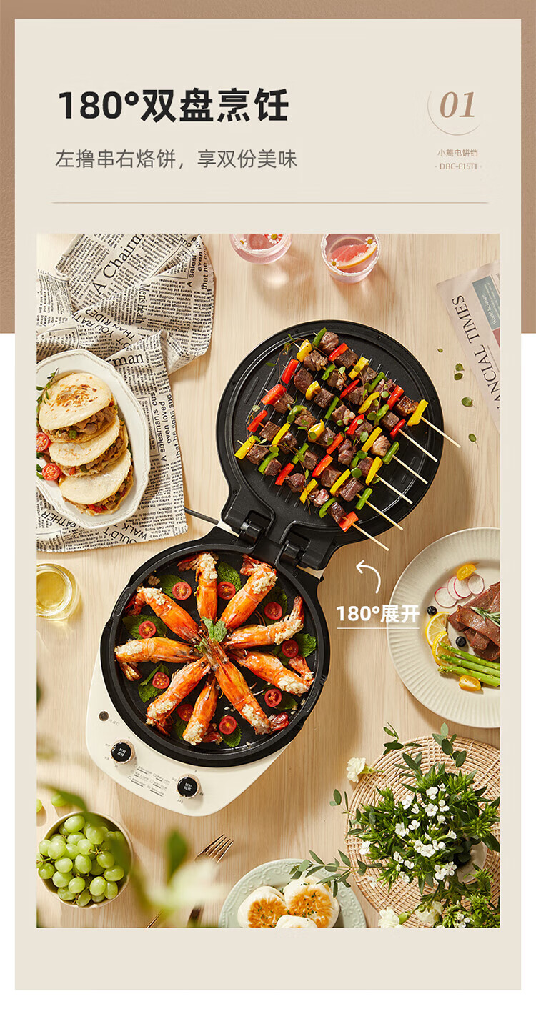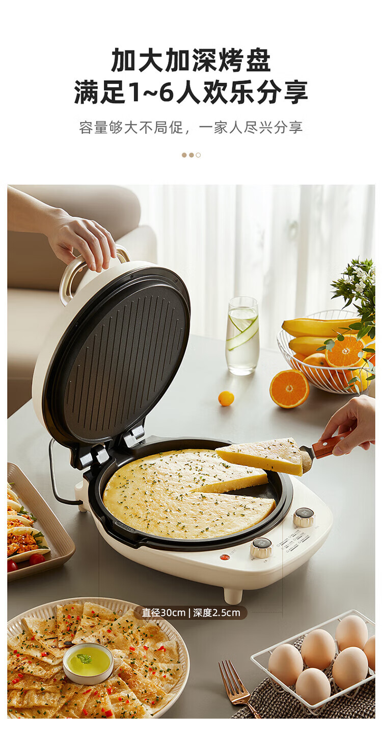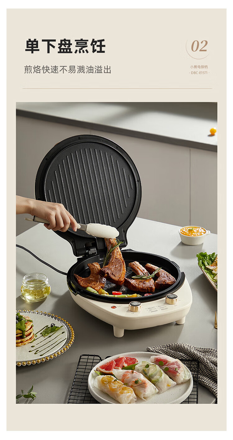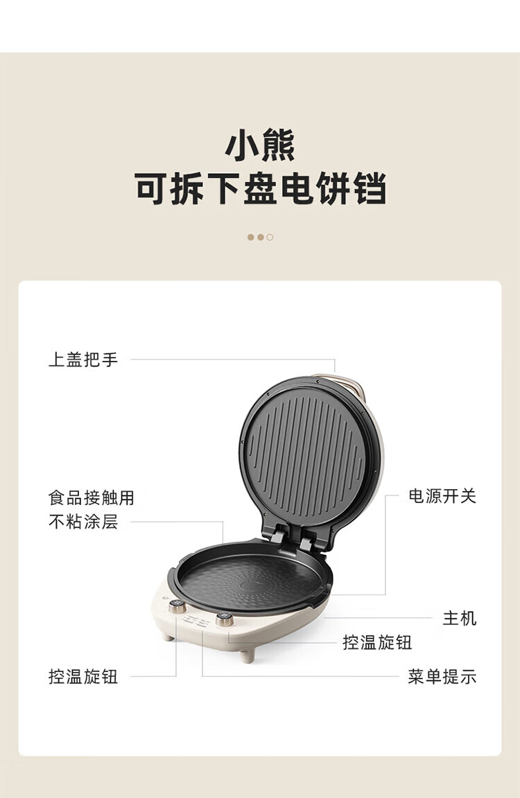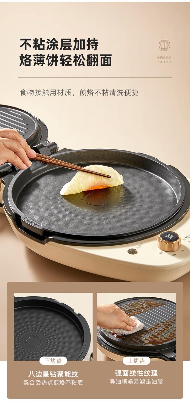 小熊(Bear)电饼铛加深烤盘可拆洗家用电饼档薄饼机三明治早餐机煎饼锅烙饼锅双盘加热 DBC-E15T1