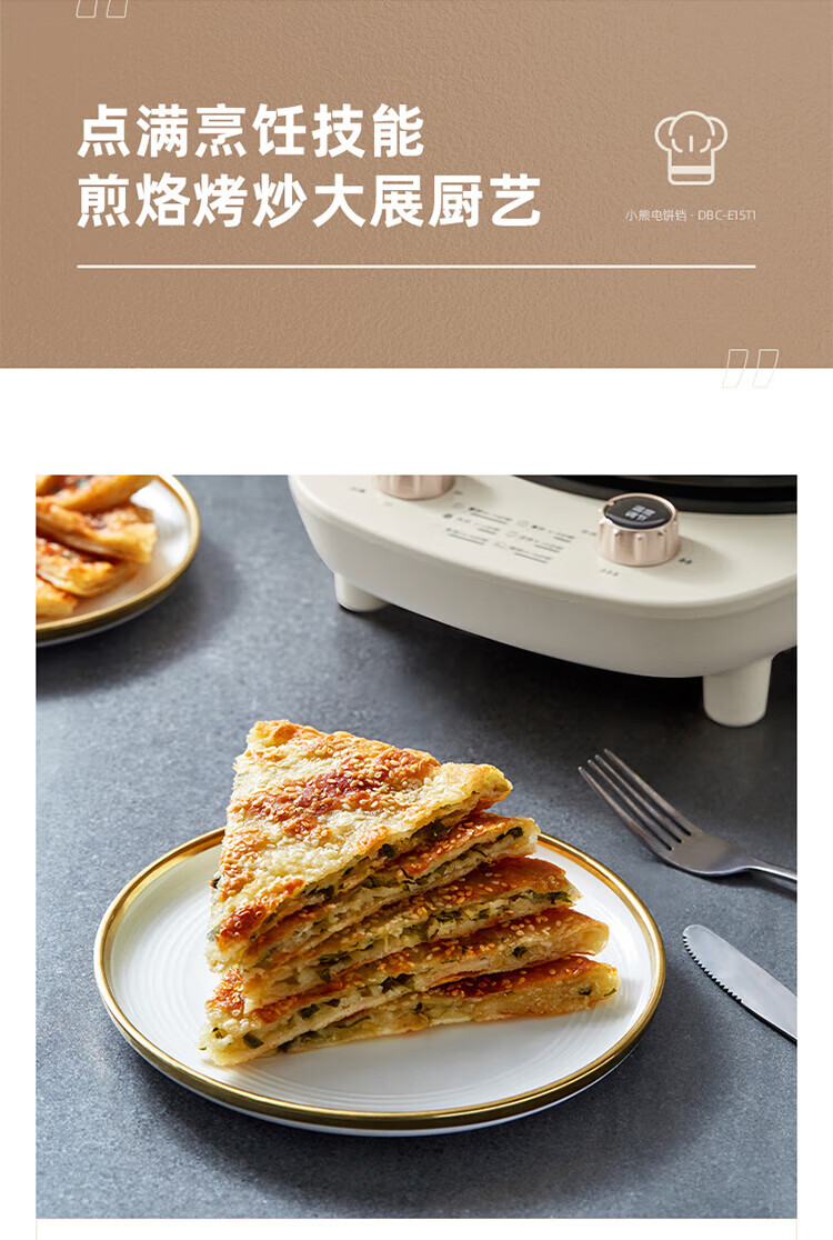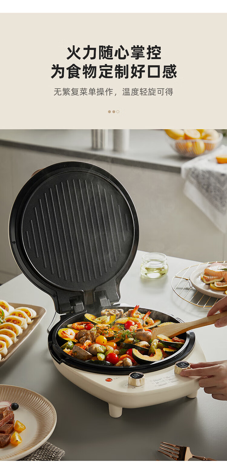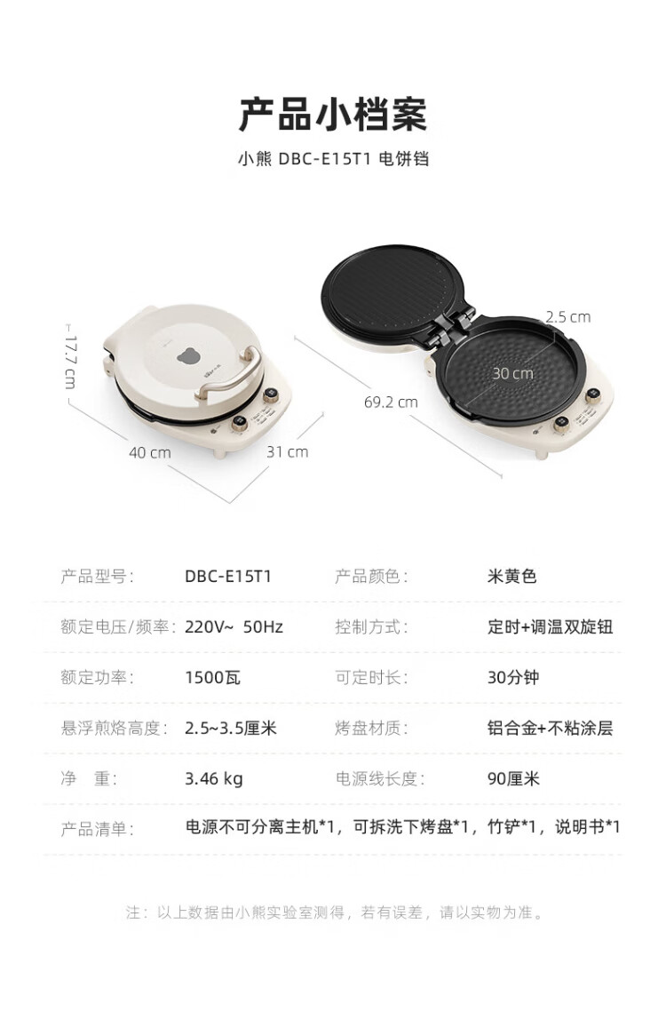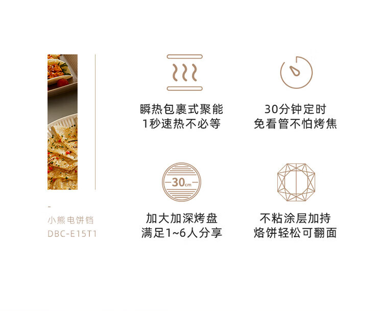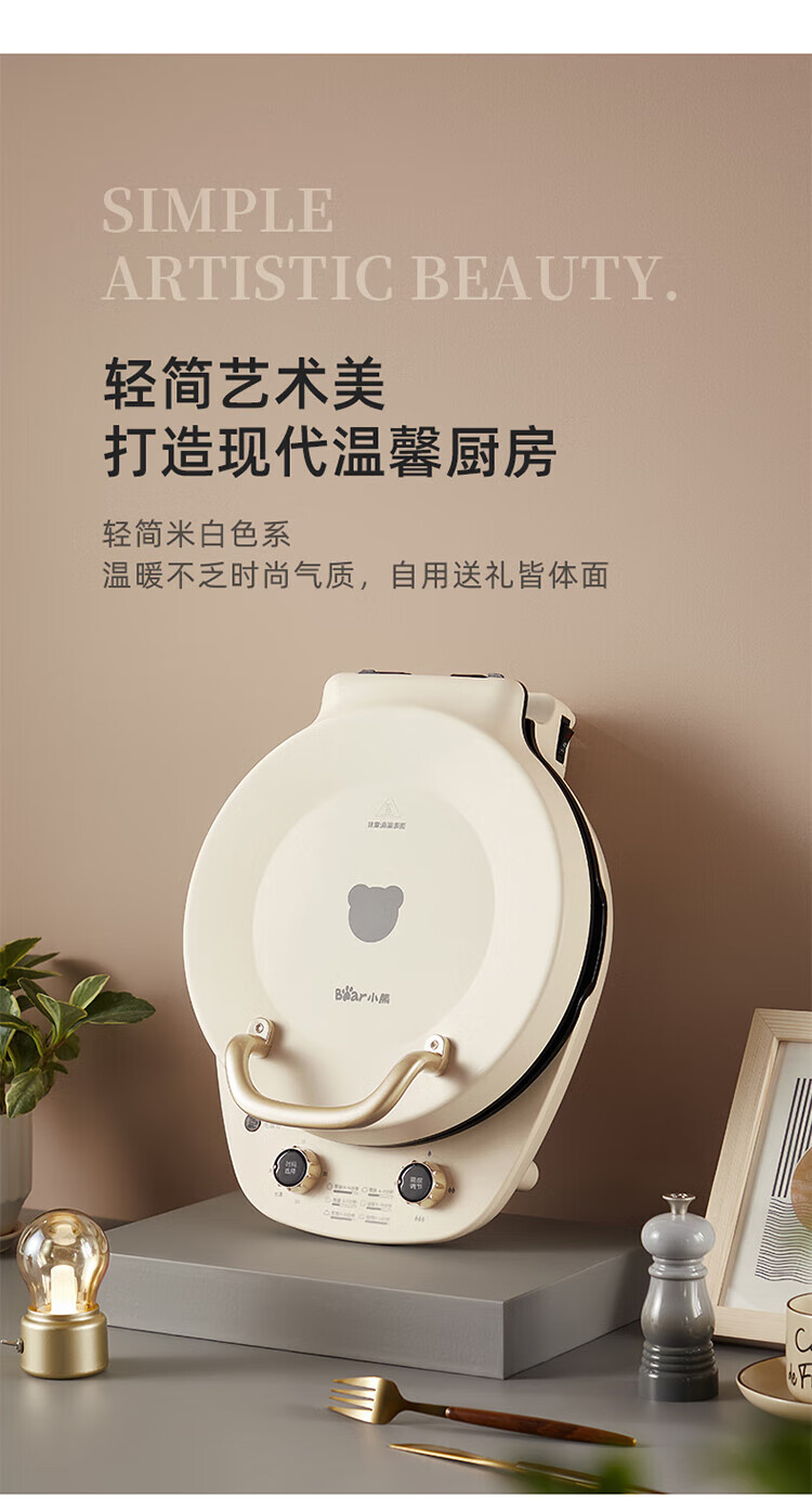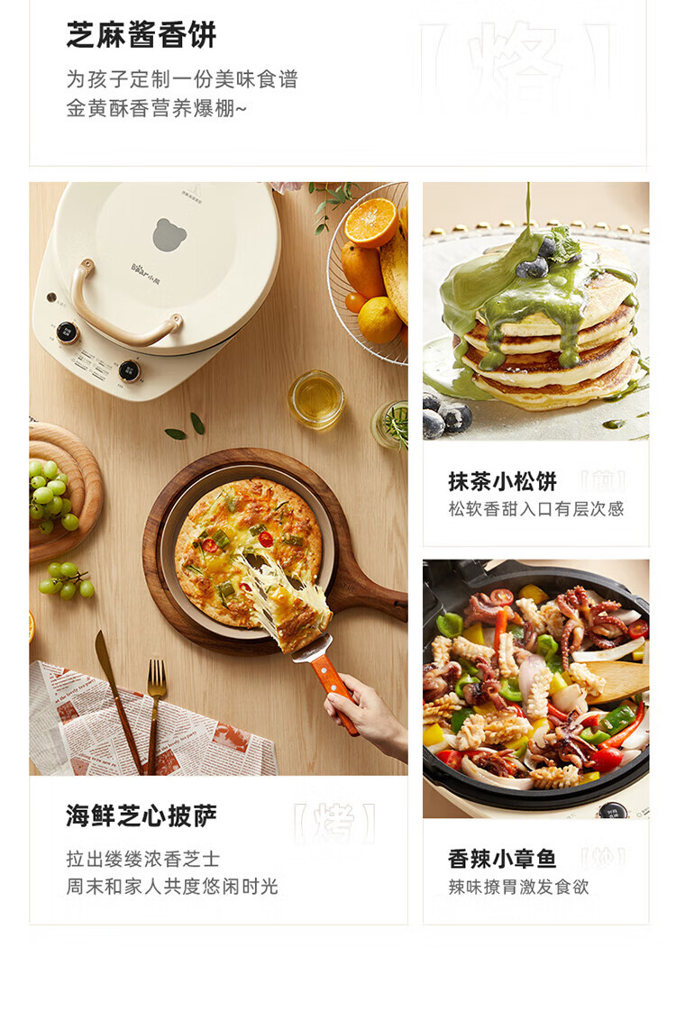 小熊(Bear)电饼铛加深烤盘可拆洗家用电饼档薄饼机三明治早餐机煎饼锅烙饼锅双盘加热 DBC-E15T1