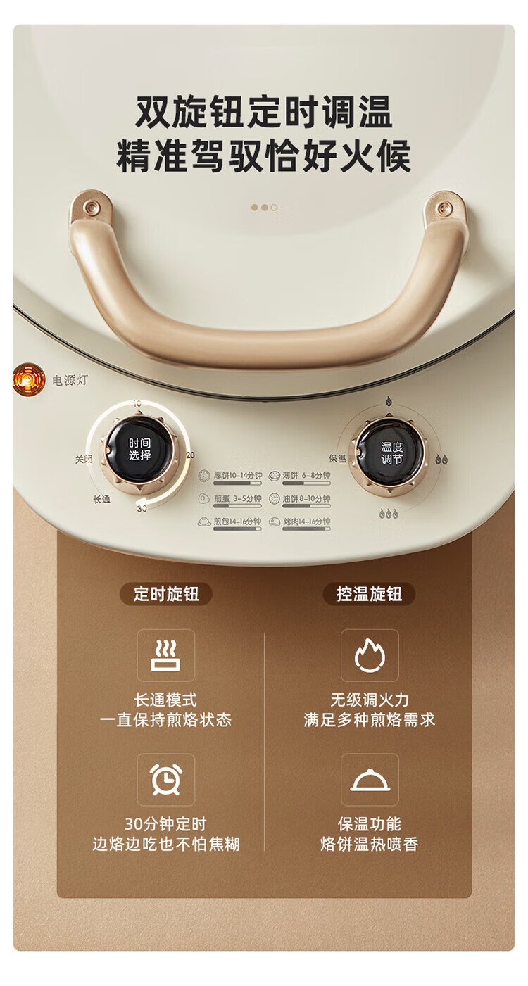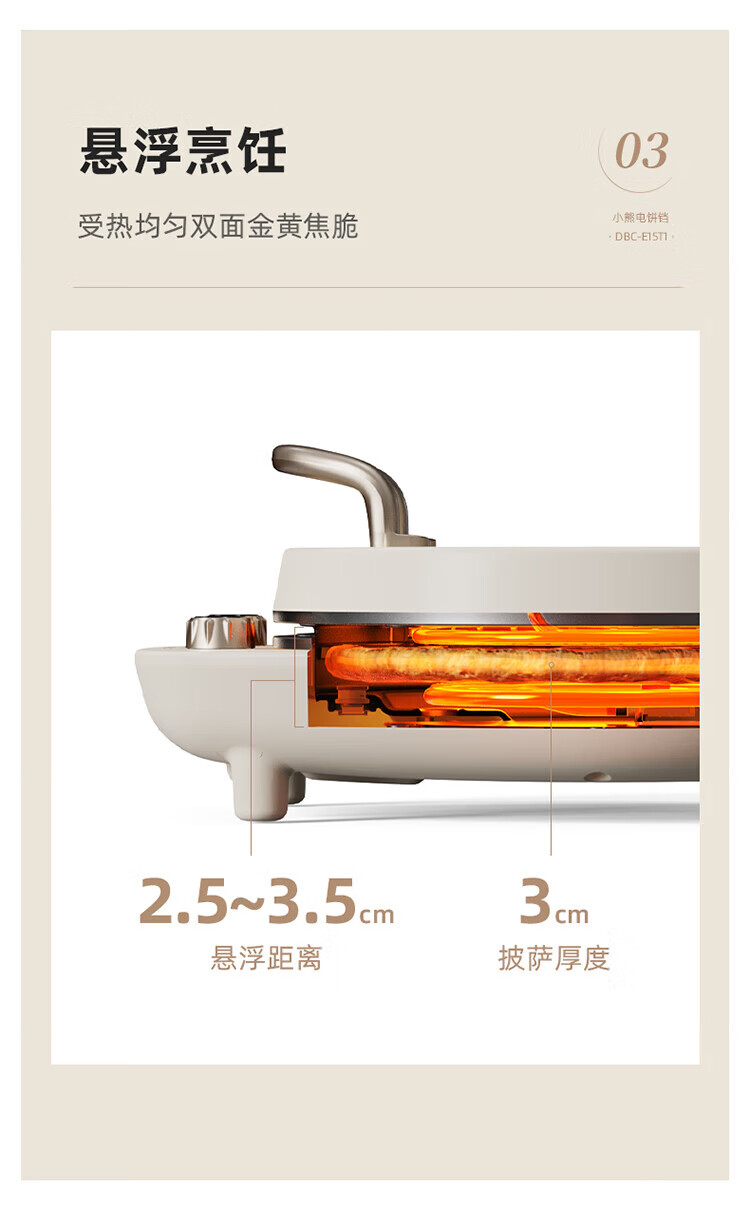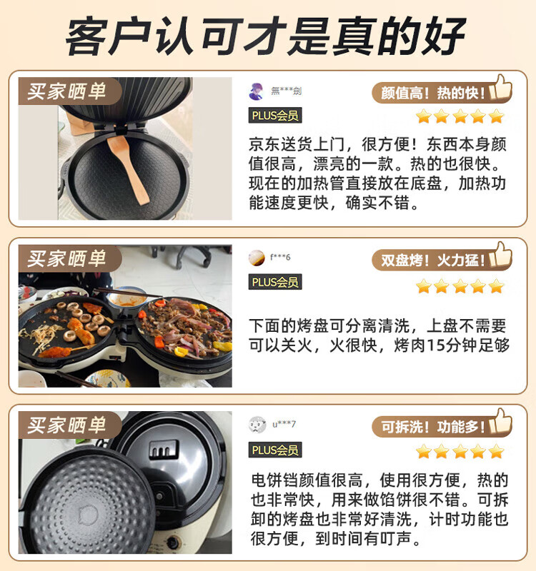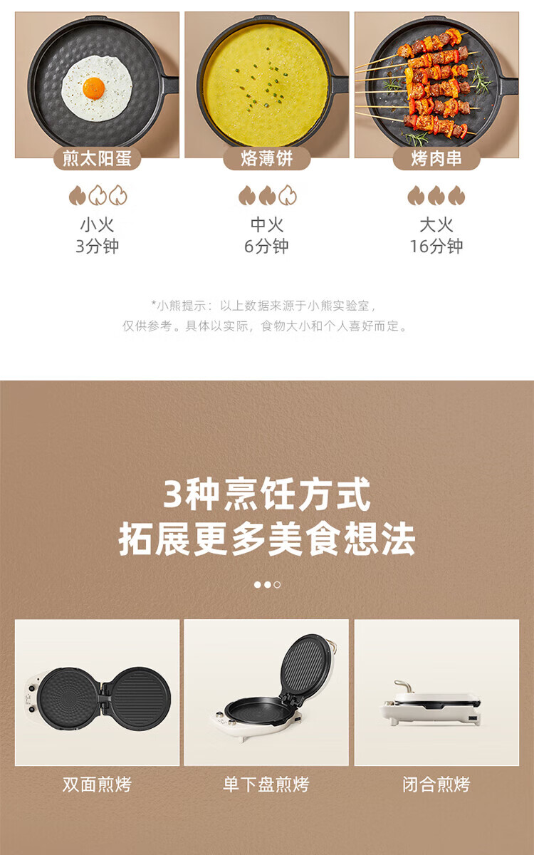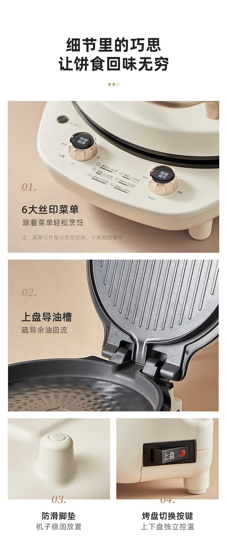 小熊(Bear)电饼铛加深烤盘可拆洗家用电饼档薄饼机三明治早餐机煎饼锅烙饼锅双盘加热 DBC-E15T1