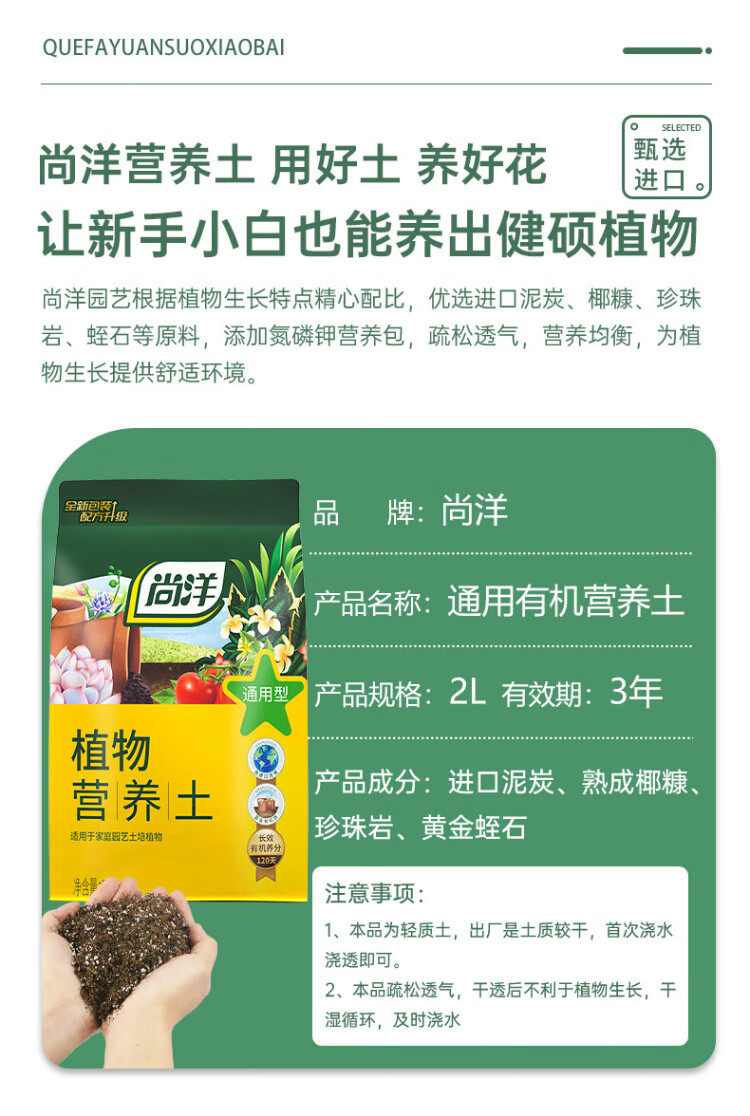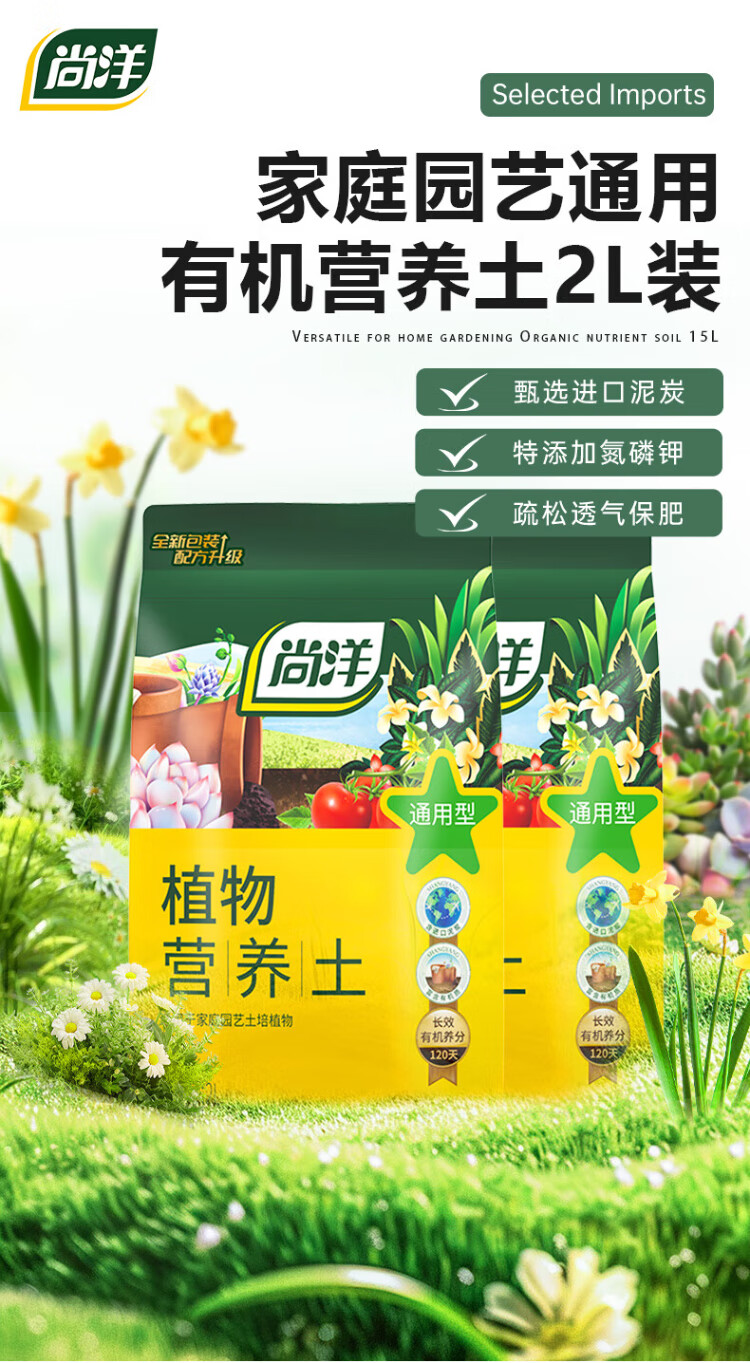 Shangyang universal nutrient soil flower planting soil vegetable planting soil green plant potted organic peat soil 2L