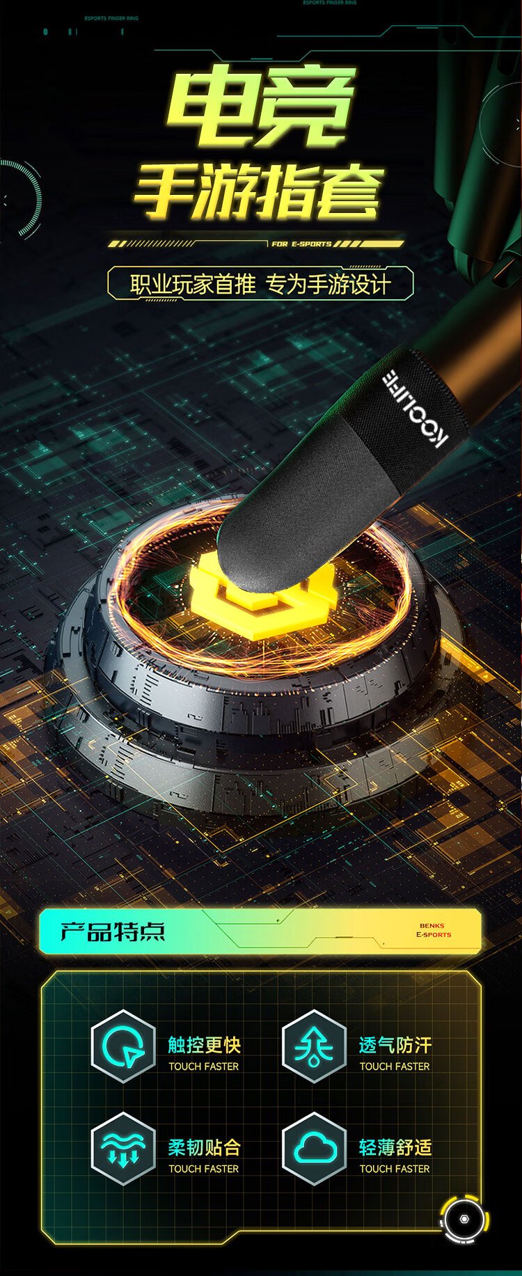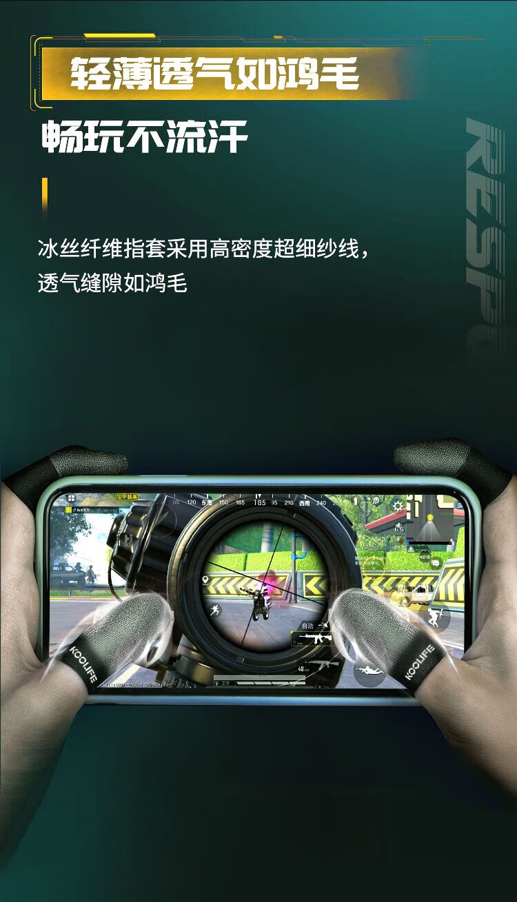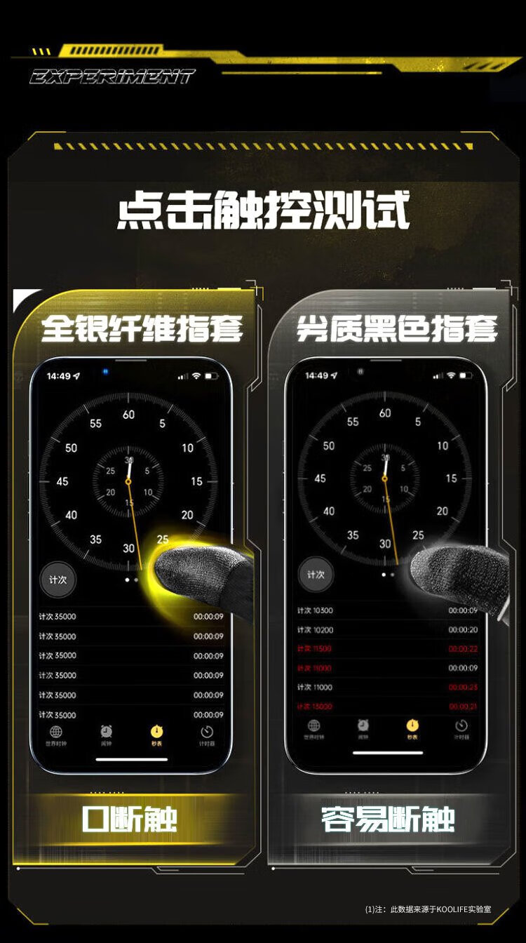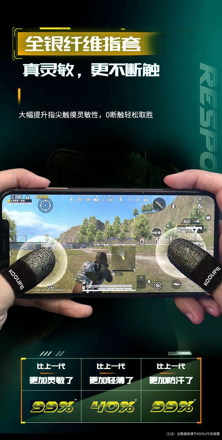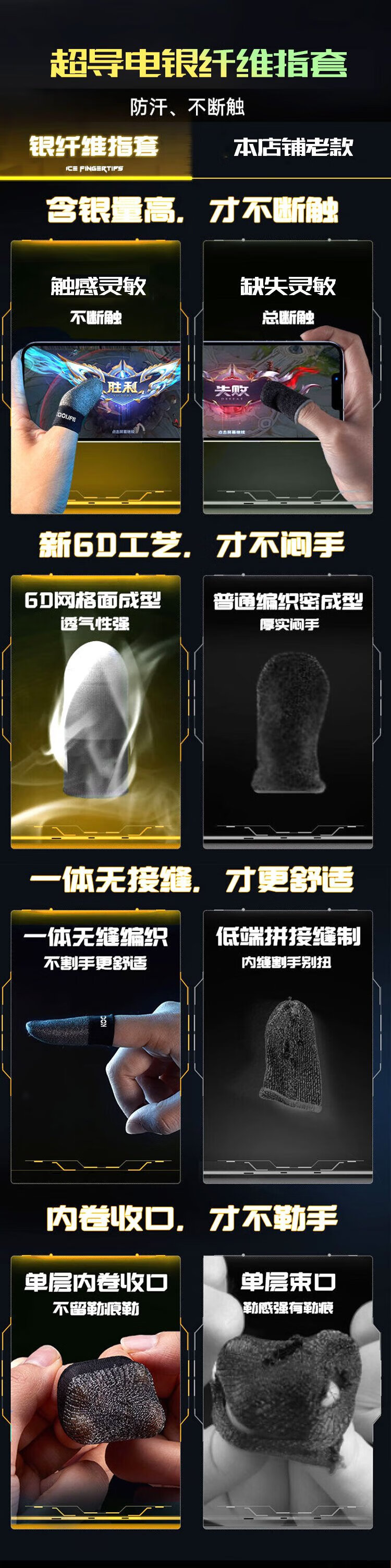 KOOLIFE Chicken Finger Cover Esports Game Anti-Sweat Slippery Ultra-Thin Thumb Finger Cover Silver Fiber Cloth Constant Touch Screen Movement Peace Elite King of Glory Artifact Mobile Phone Tablet Black
