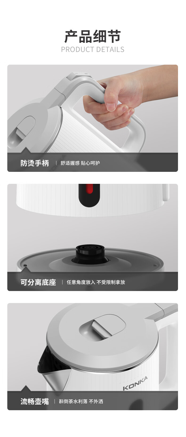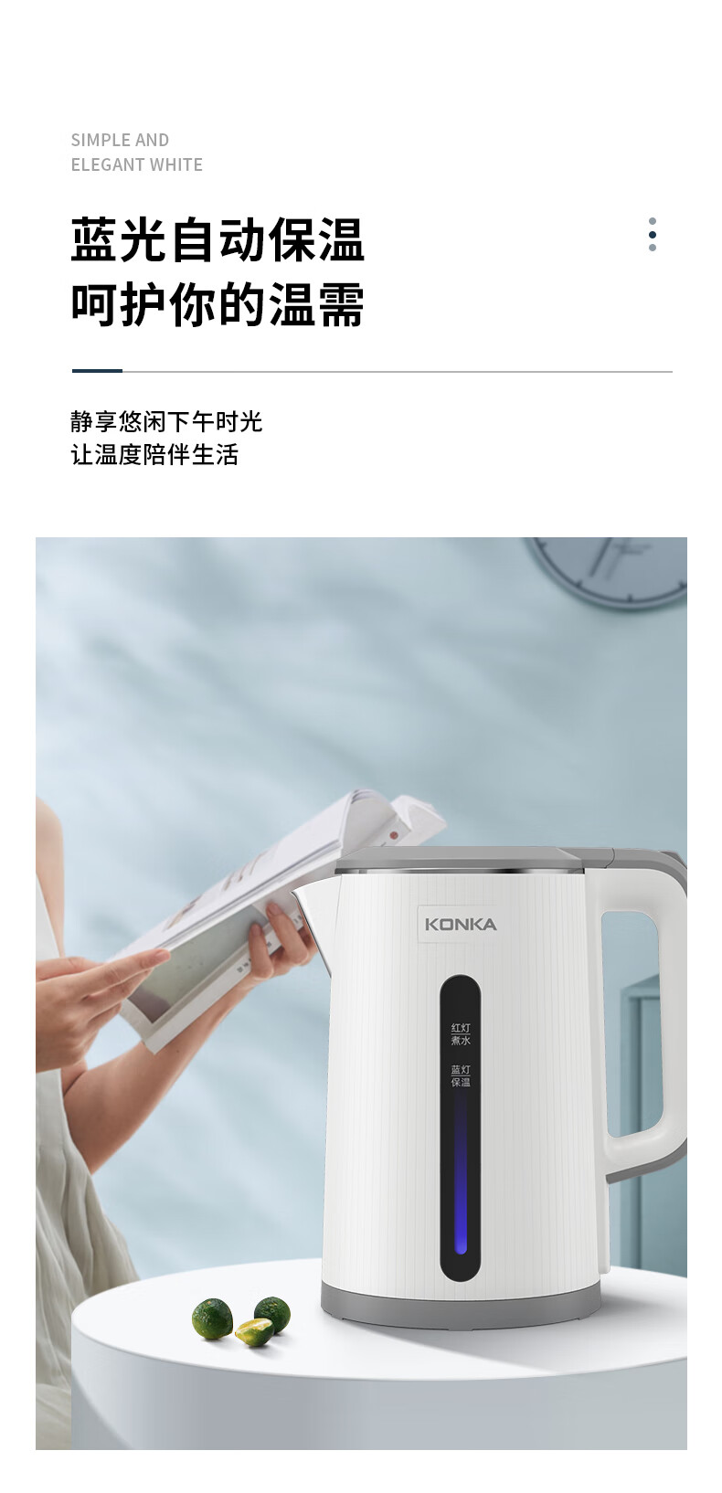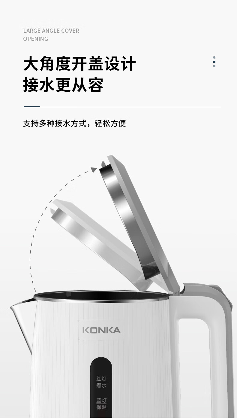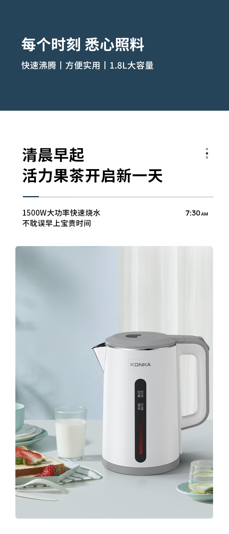 KONKA electric kettle 304 stainless steel double-layer anti-scald 1.8L large capacity thermal insulation kettle warm kettle kettle electric water bottle KEK-W1815