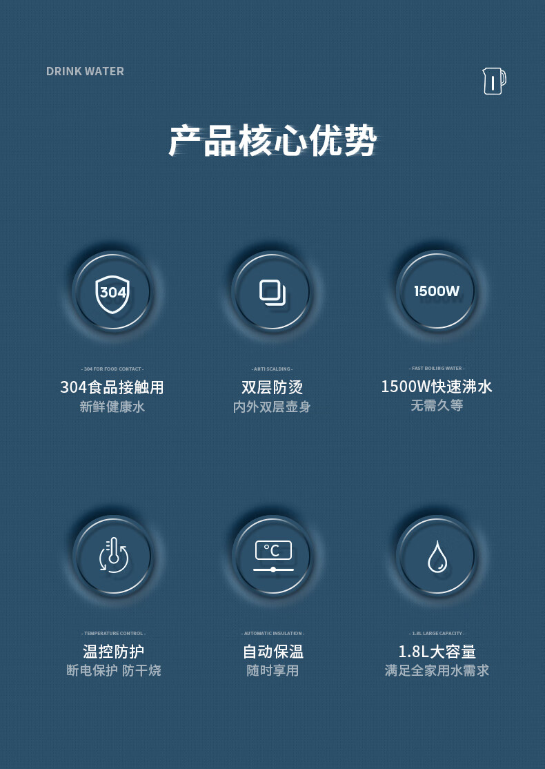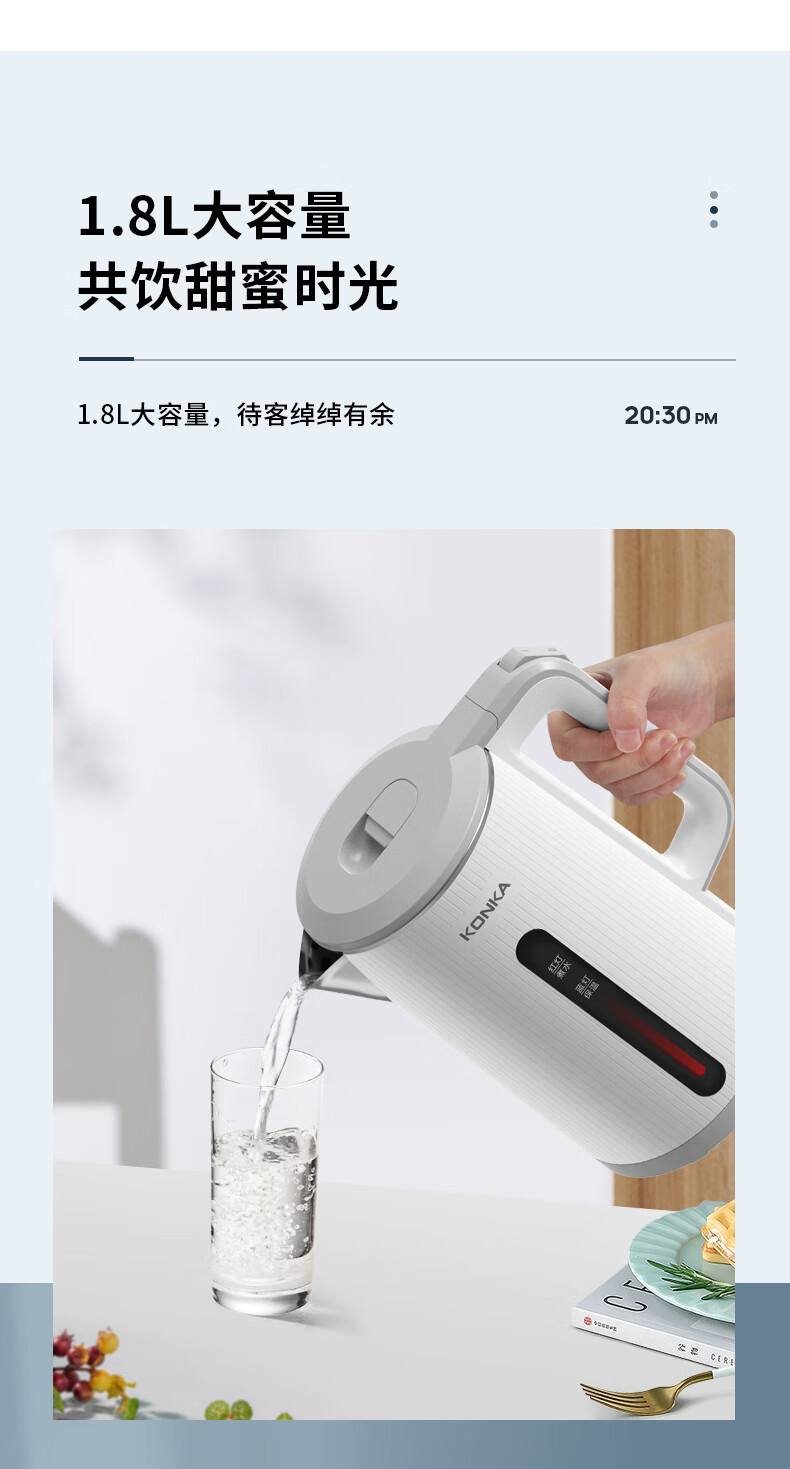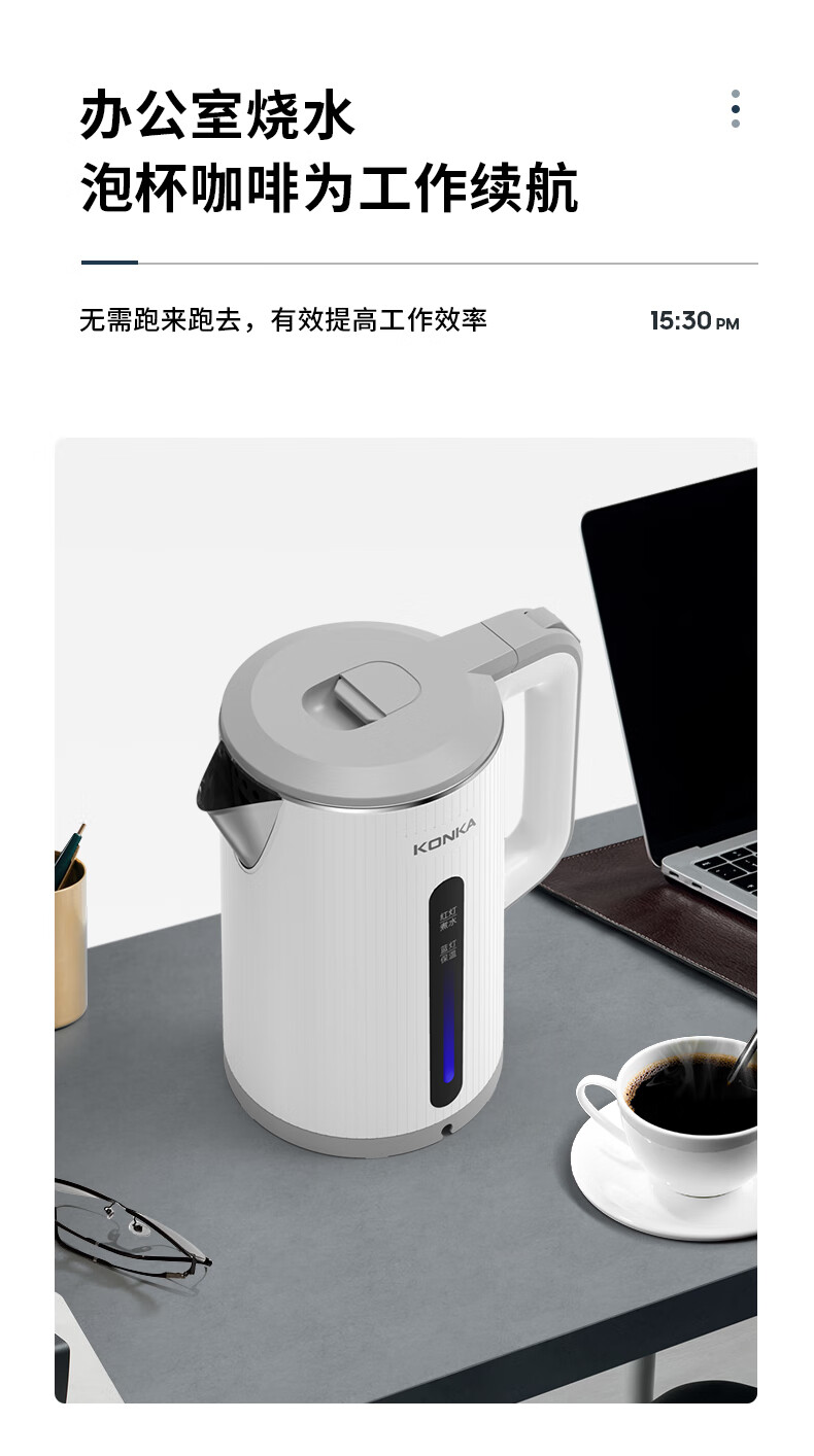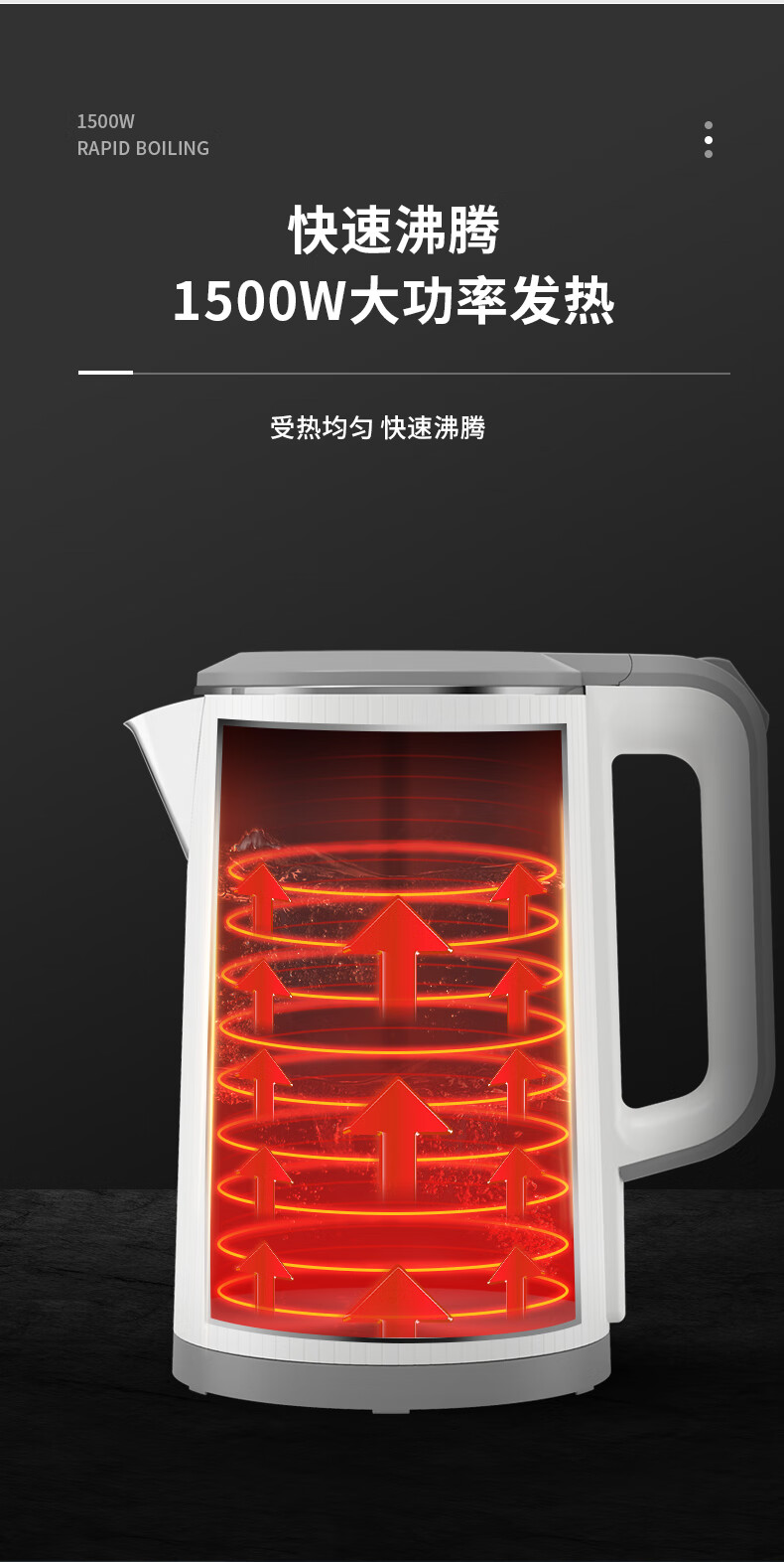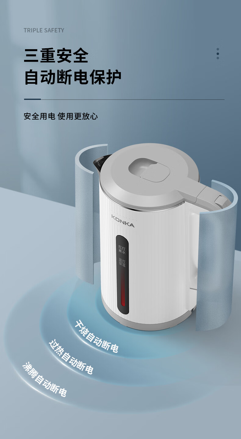 KONKA electric kettle 304 stainless steel double-layer anti-scald 1.8L large capacity thermal insulation kettle warm kettle kettle electric water bottle KEK-W1815