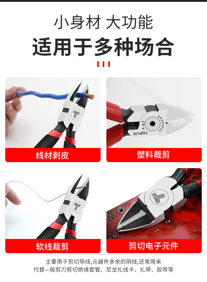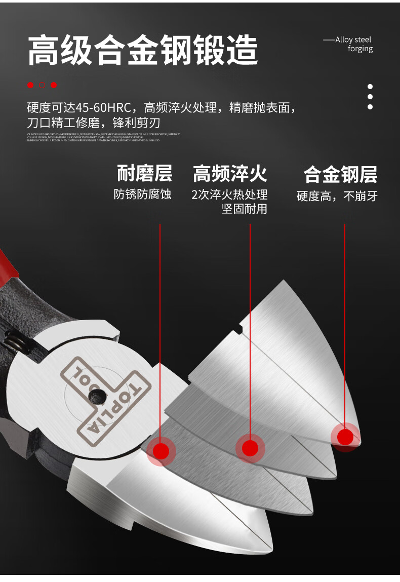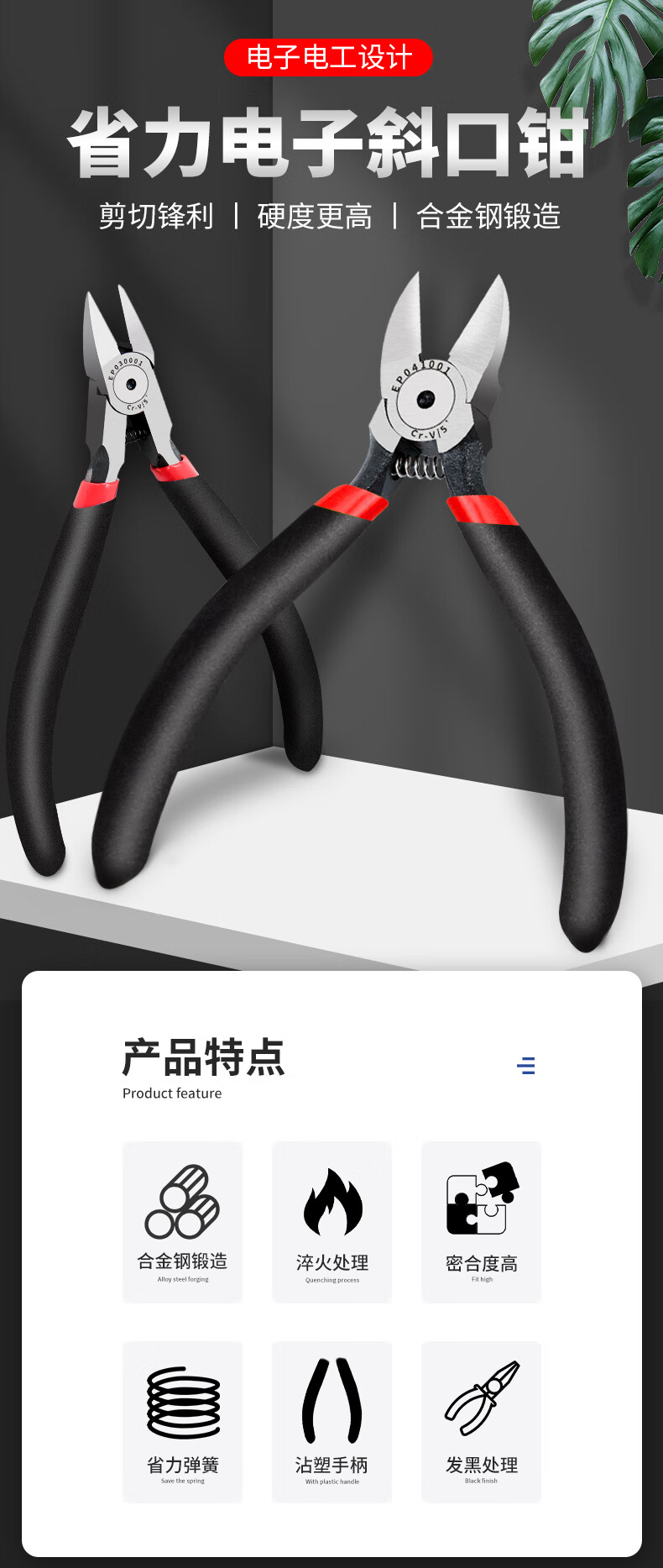 拓利亚大斜角薄刀水口钳7英寸水口钳子模型电工剪斜咀钳 EP041003