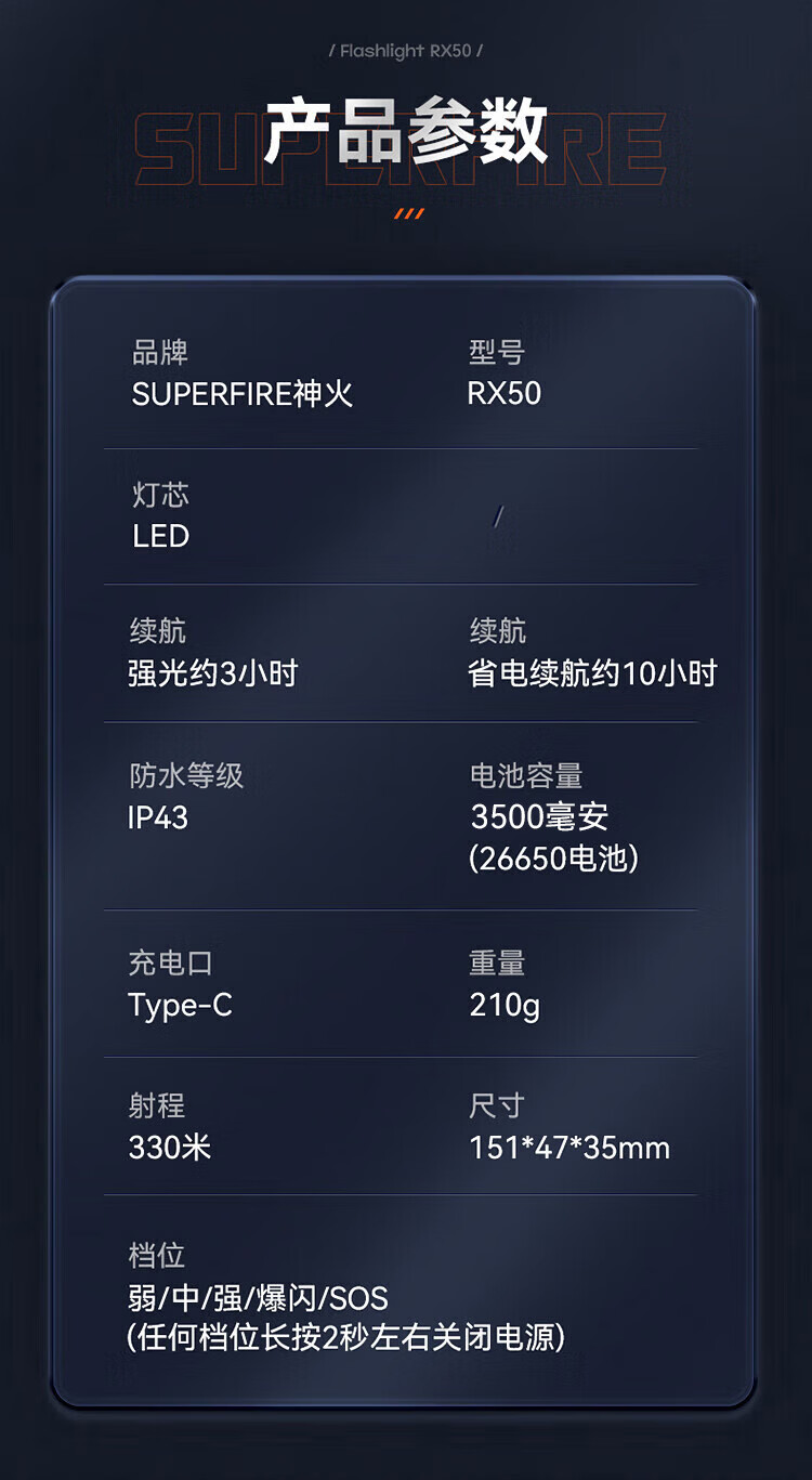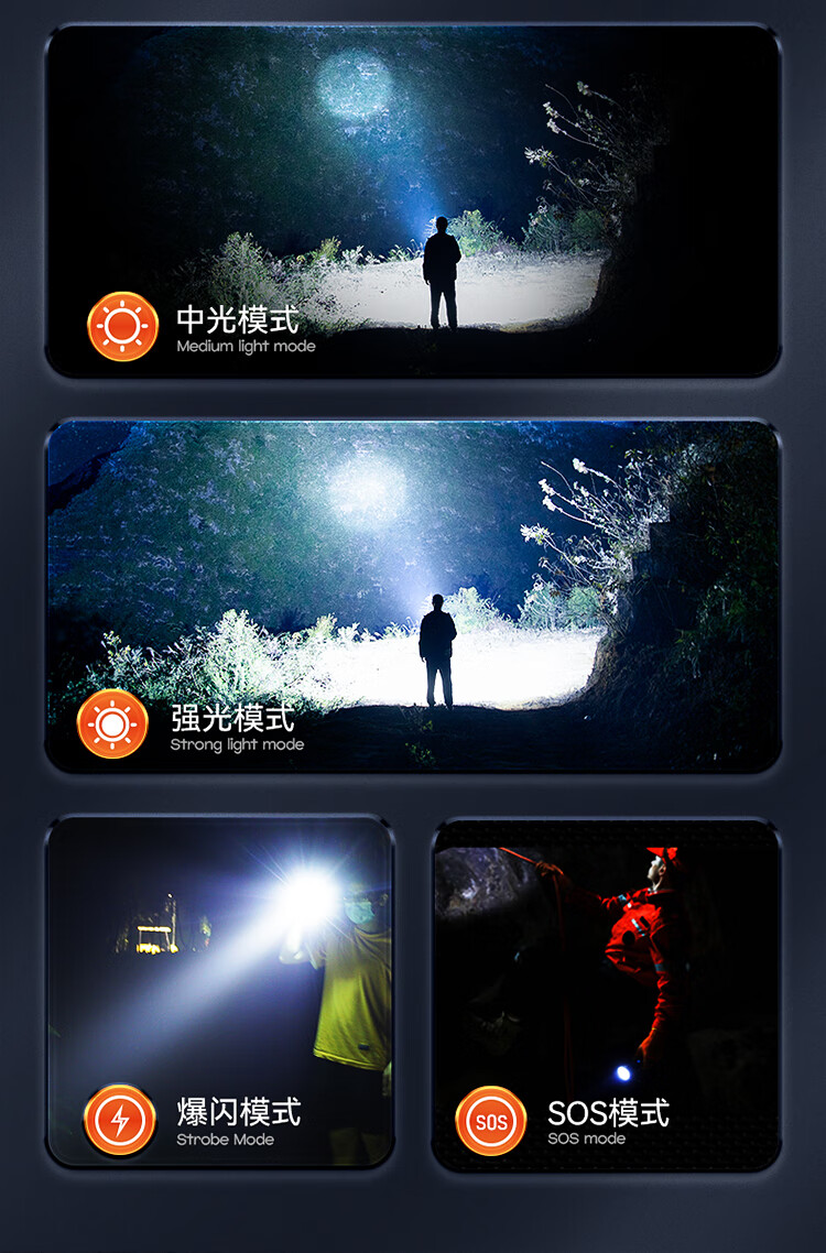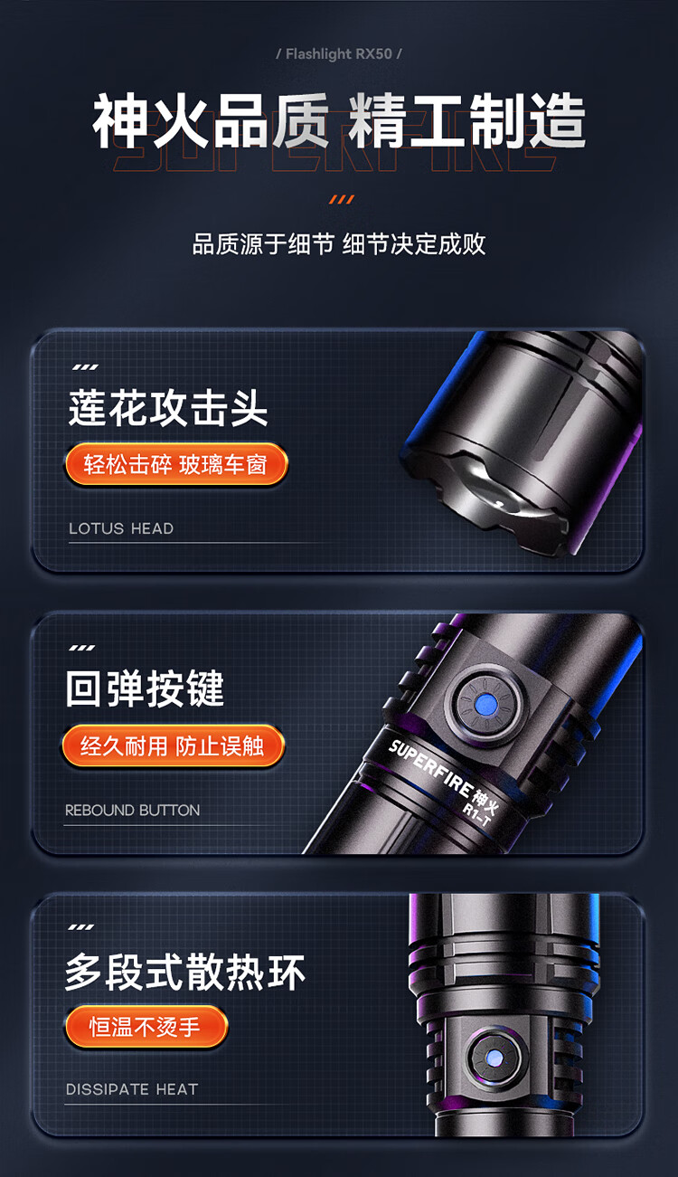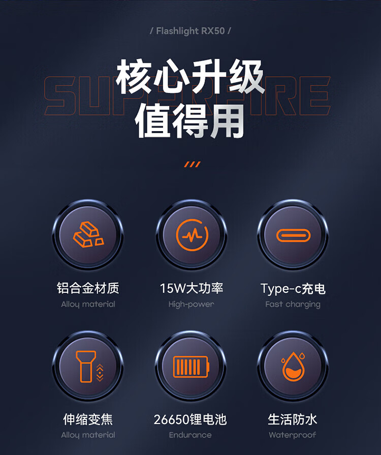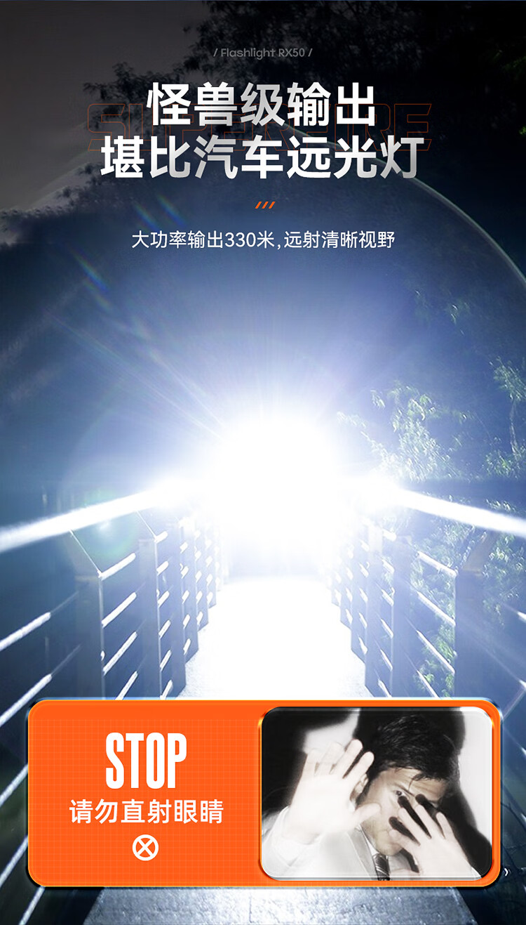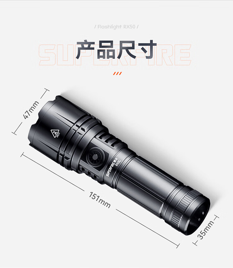 SupFire RX50 flashlight, strong light, zoom, ultra-bright, long-lasting, portable military long-range outdoor emergency light for home riding