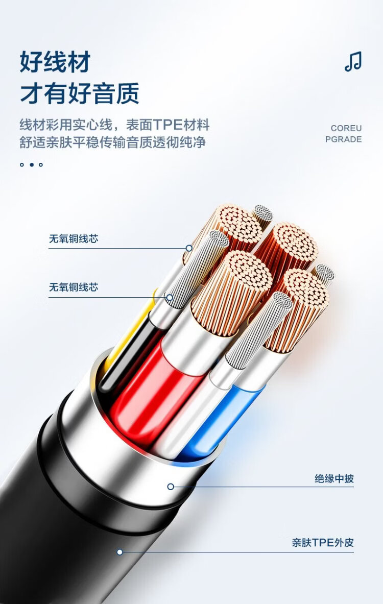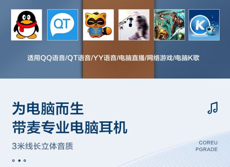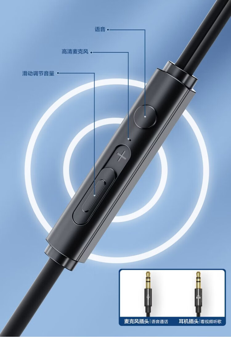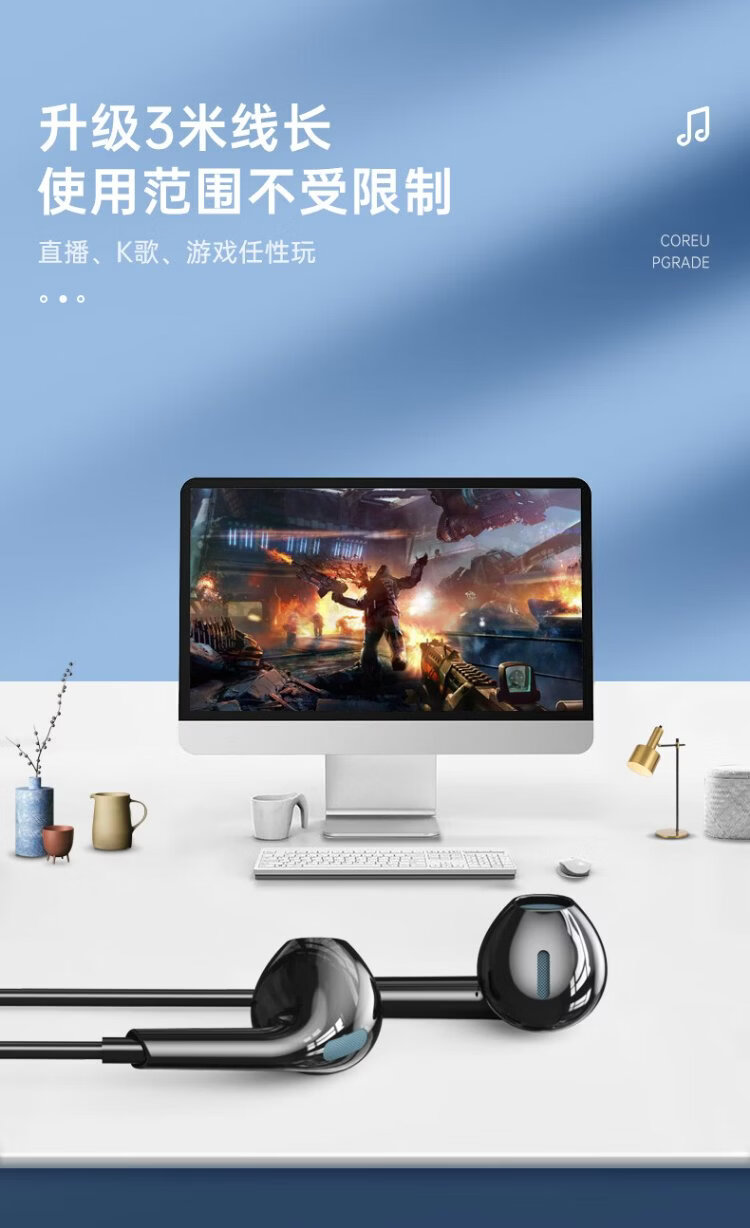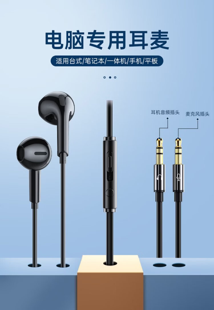 Wise Nation 3-meter extension cable computer headset wired in-ear with microphone two-in-one desktop notebook game headset e-sports live broadcast double-hole plug round head special