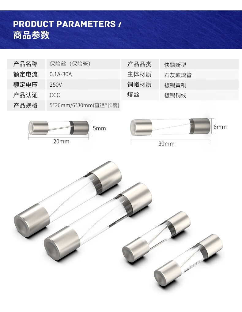 Huijun (HUIJUN) fuse quick-blow glass fuse 5A 10 pieces/bag 5*20mm