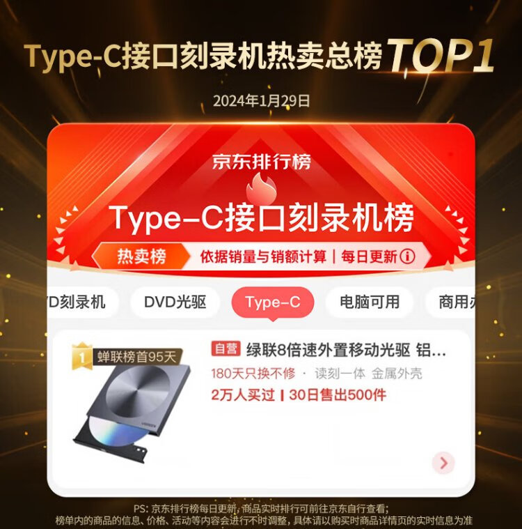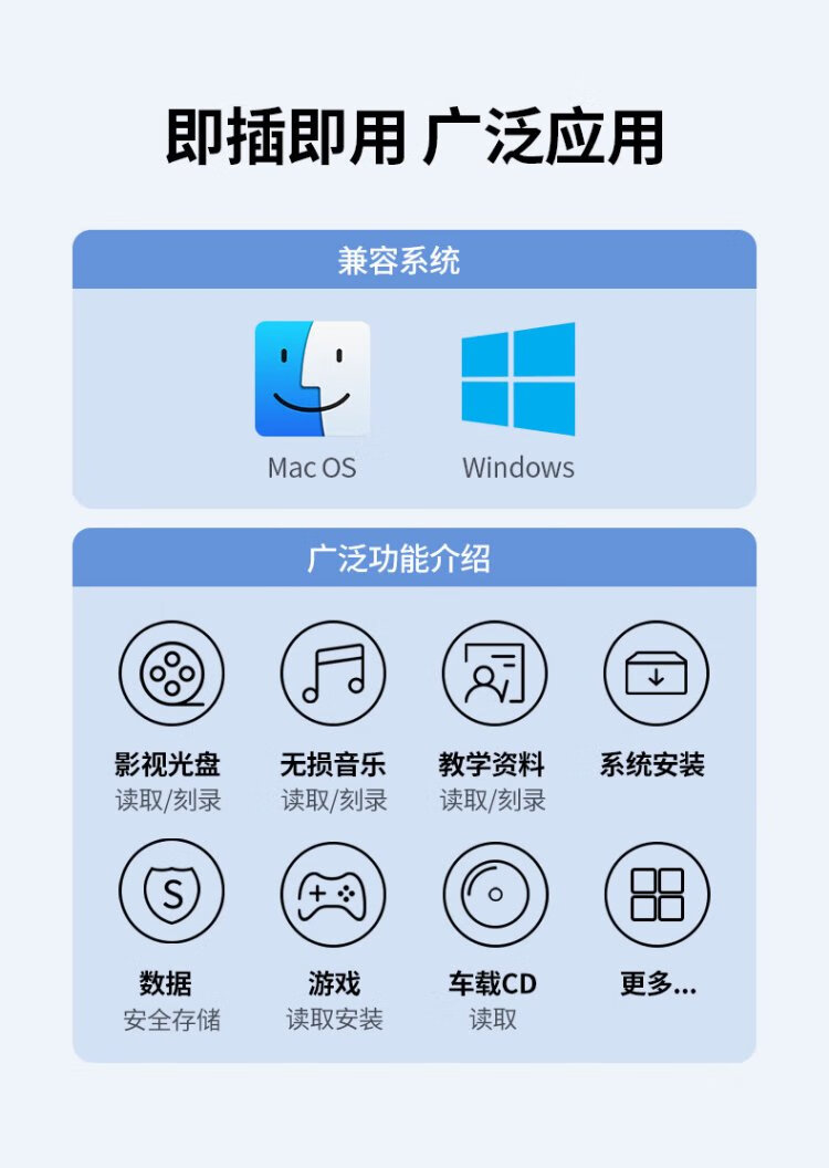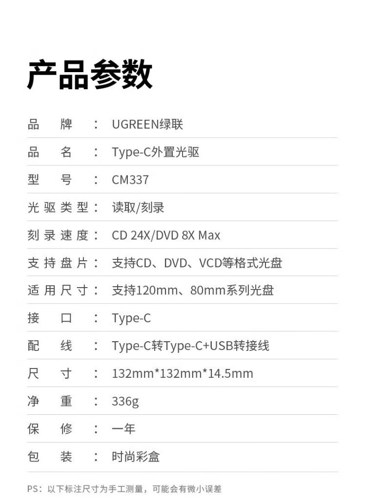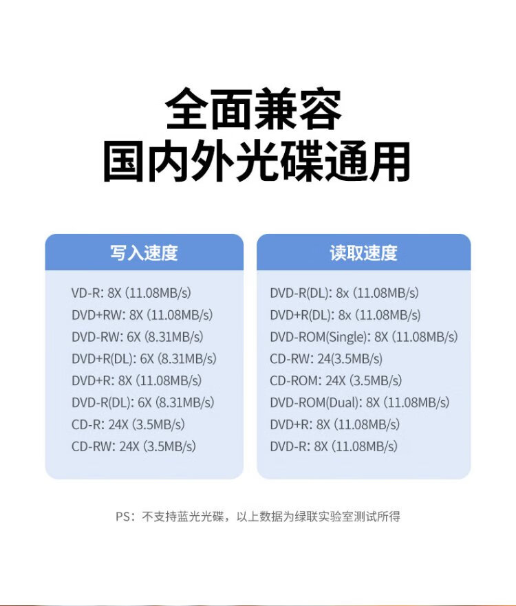 Greenlink 8x speed Type-C/USB external optical drive mobile burner portable reading and burning all-in-one notebook computer external DVD/CD disc playback high-speed reader 80130