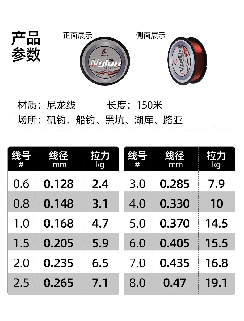 Tagore nylon line 150 meters 6.0# fishing line super tensile strength wear-resistant non-rolling lure fishing line sea fishing rock fishing line main line sub-line fishing gear fishing supplies