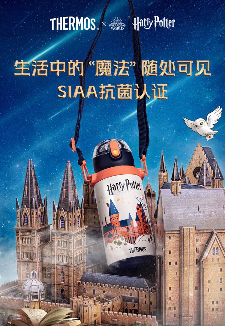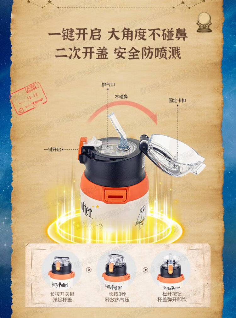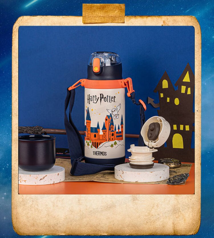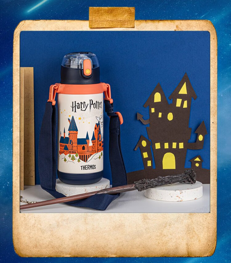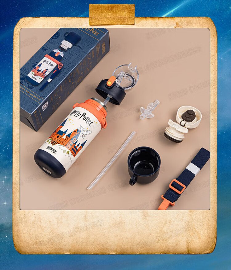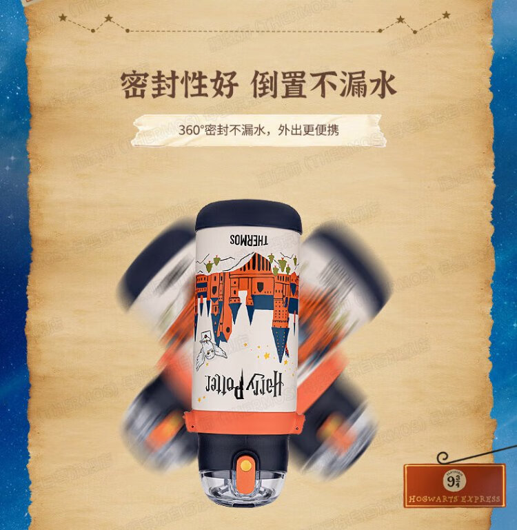 Thermos children's thermos cup straw water cup students must start school large-capacity kettle Harry Potter men's 600ml orange black