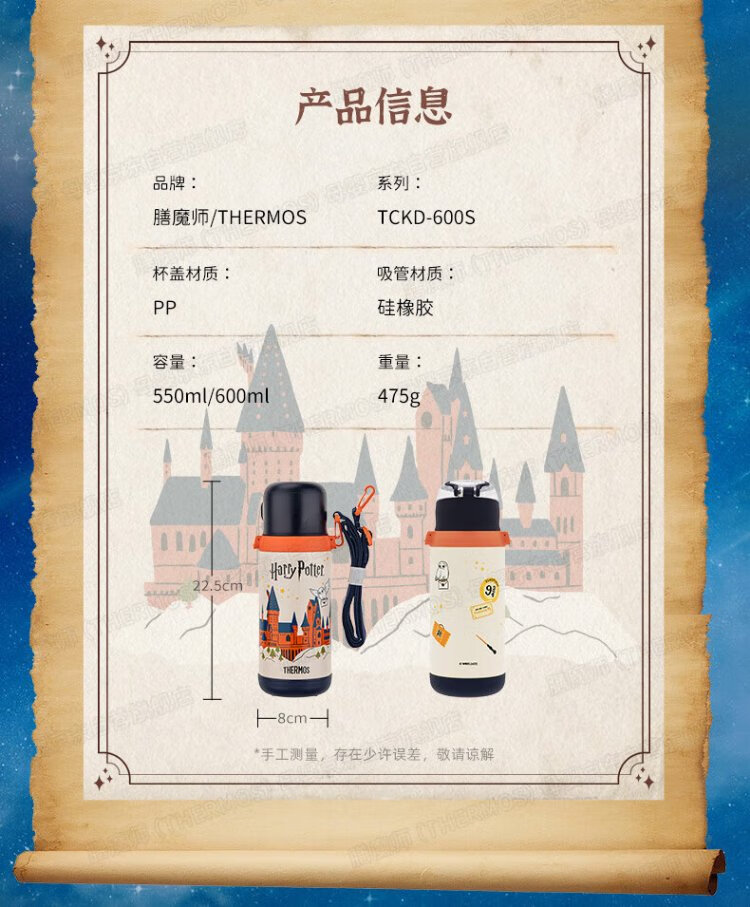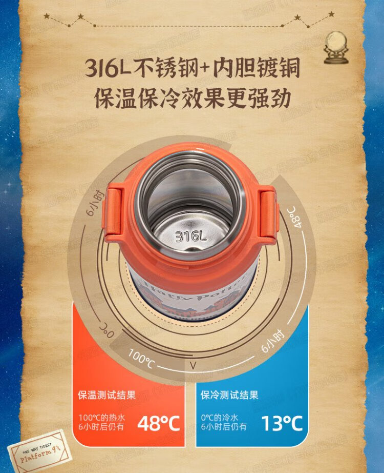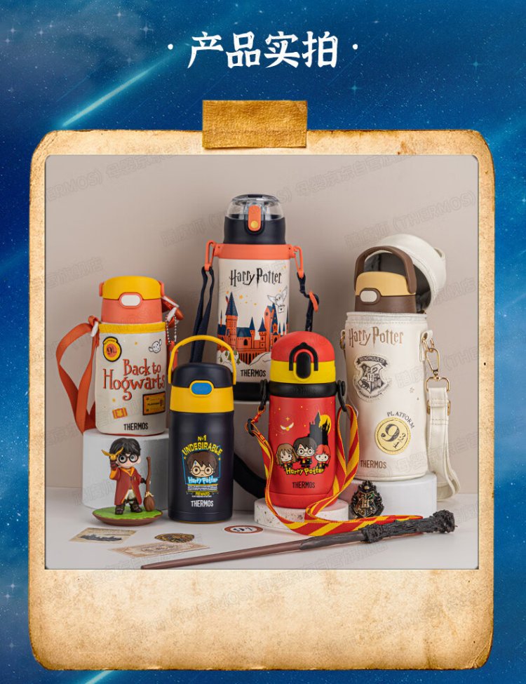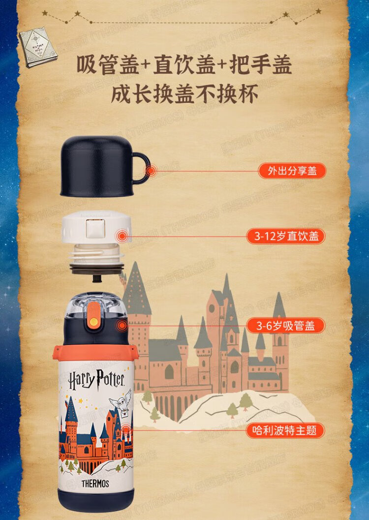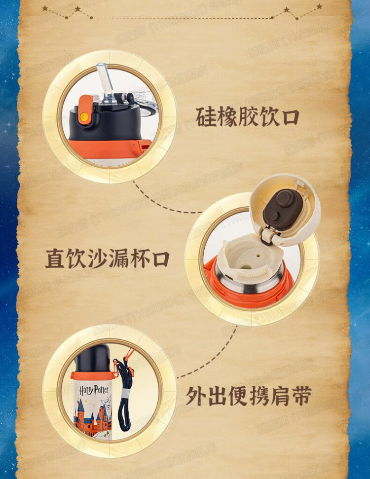 Thermos children's thermos cup straw water cup students must start school large-capacity kettle Harry Potter men's 600ml orange black