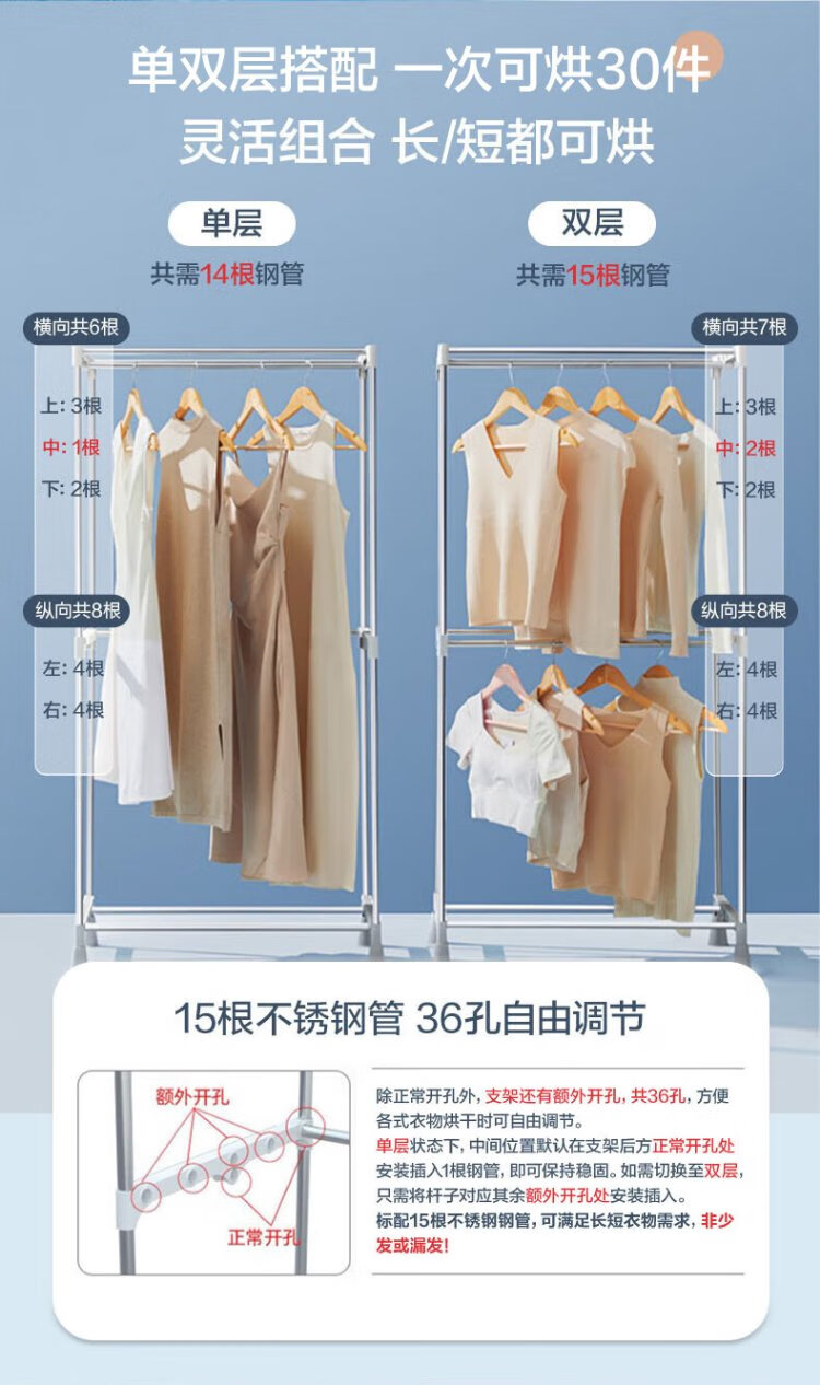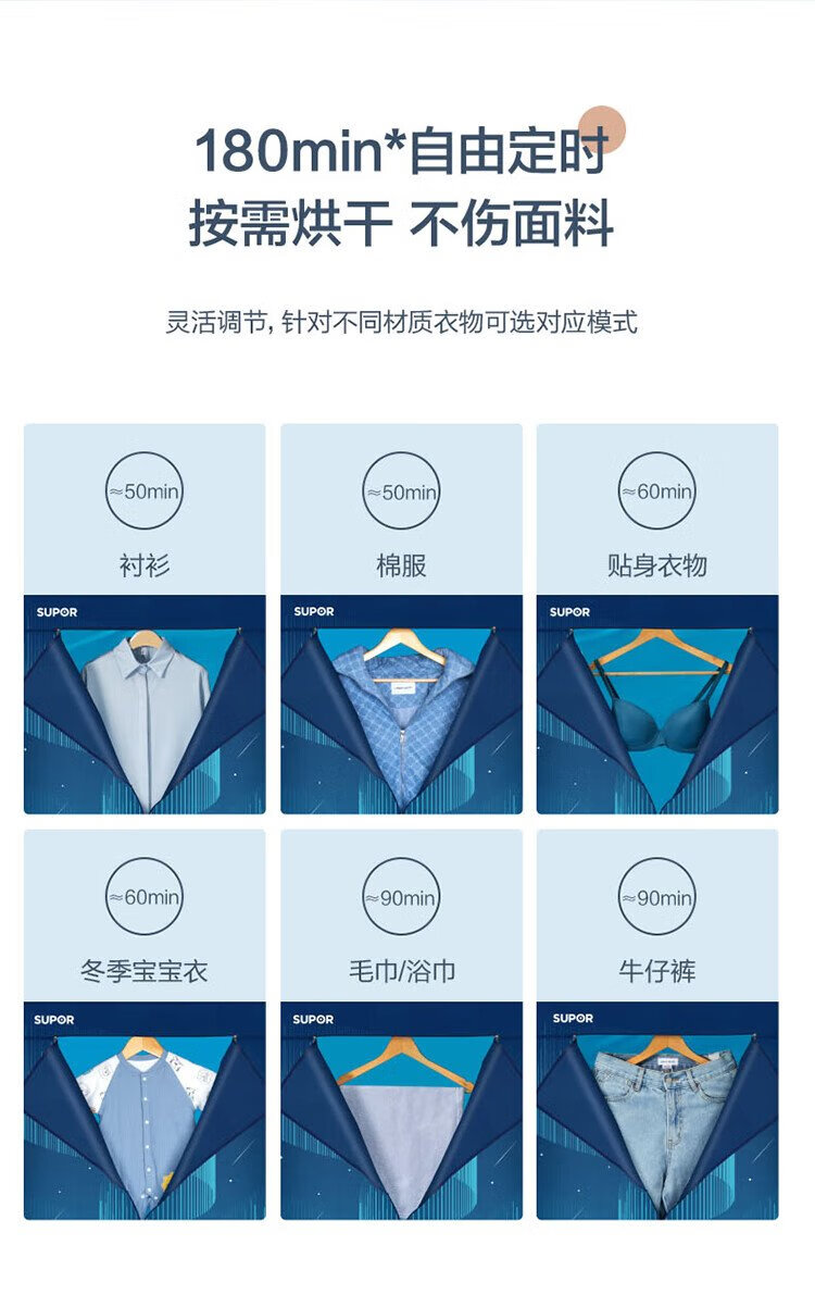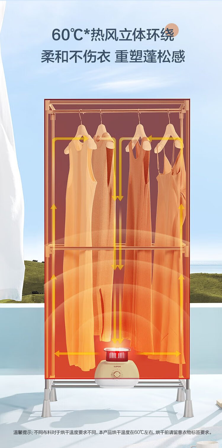 SUPOR double-layer large capacity clothes dryer wardrobe dryer household baby clothes underwear sterilization can dry 30 pieces 16 steel pipes can be timed drying wardrobe ELD-501B