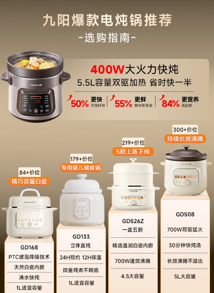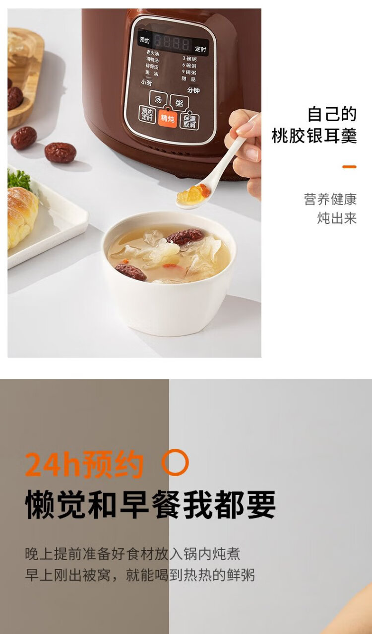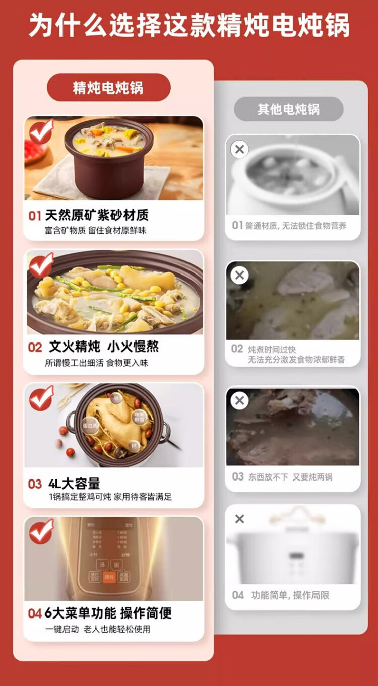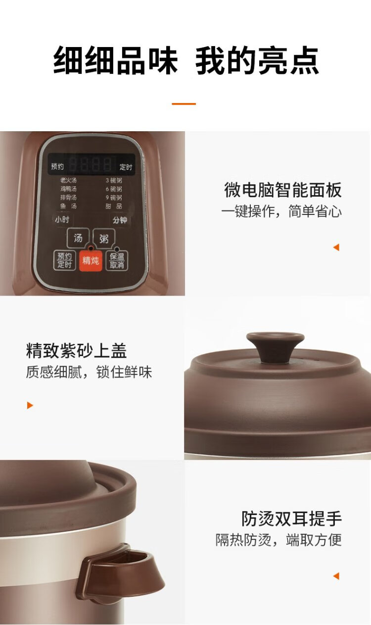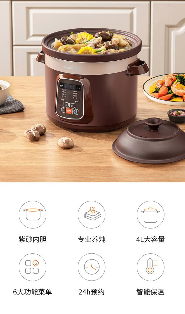 Joyoung electric stew pot, electric stew pot, electric casserole, soup pot, multifunctional pot, purple casserole, bird's nest stew pot, porridge pot, direct stew 4L large capacity, can be reserved for heat preservation GD410
