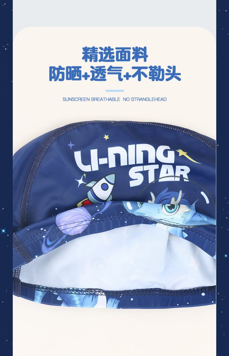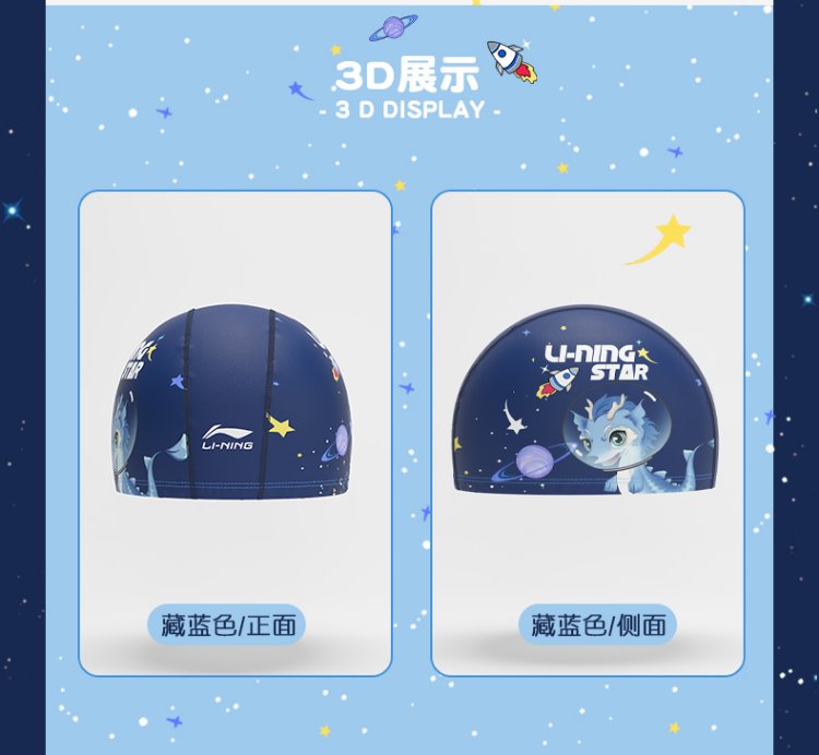 Li Ning LI-NING Children's Swimming Cap Cartoon Waterproof Ear-protecting Cloth Cloth Swimming Cap for Boys and Girls LNMT616-1 Blue