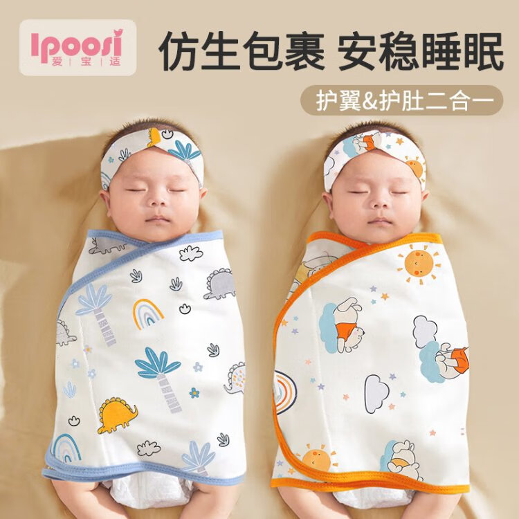 Aibaoxi baby anti-jump sleeping bag newborn pure cotton swaddle swaddle baby comforter artifact 2 pack S292