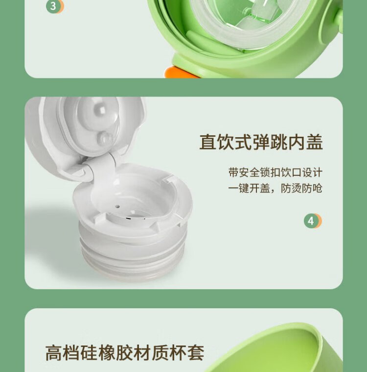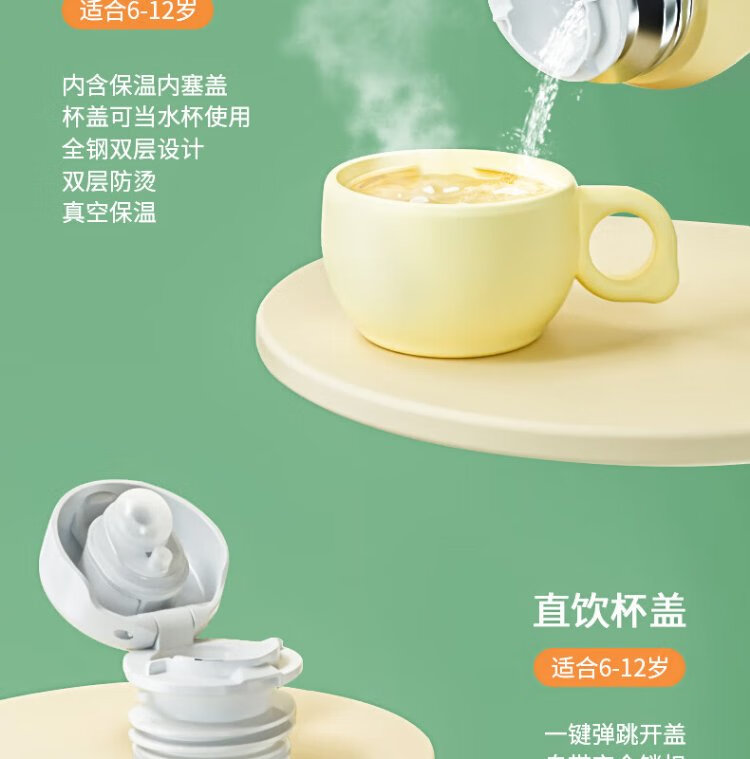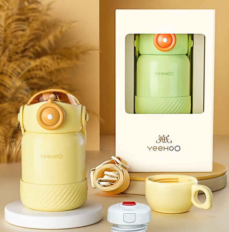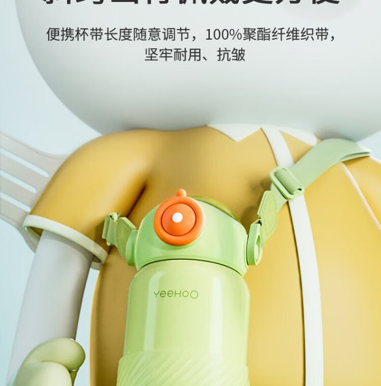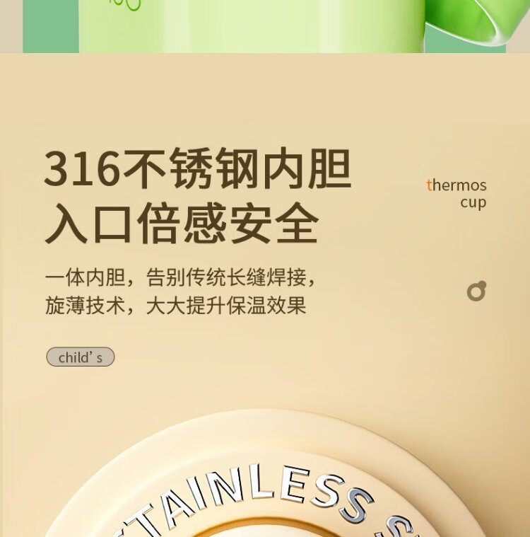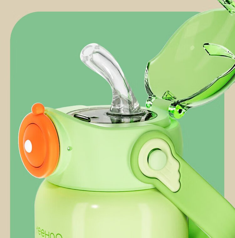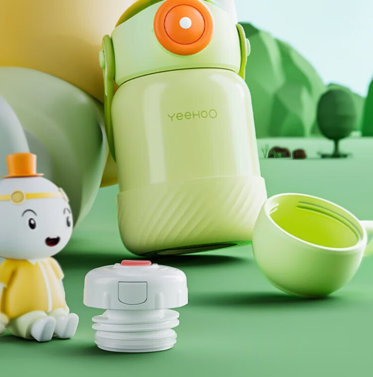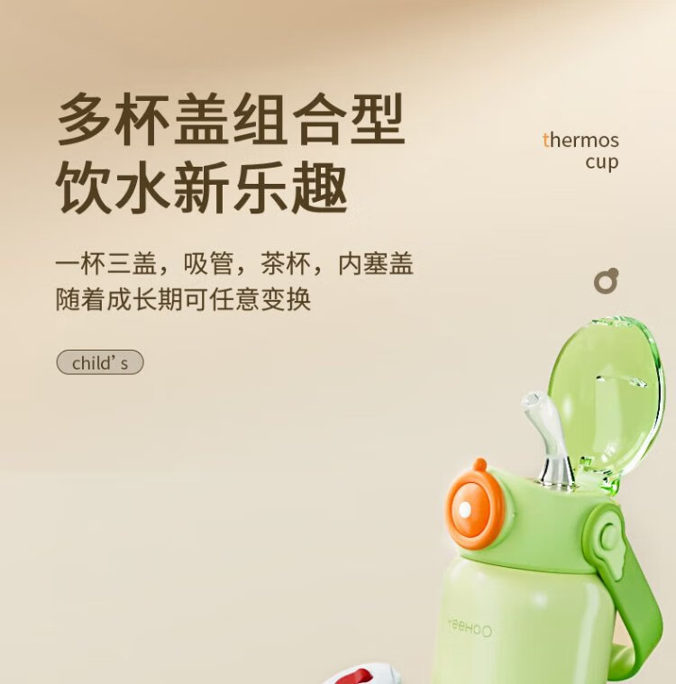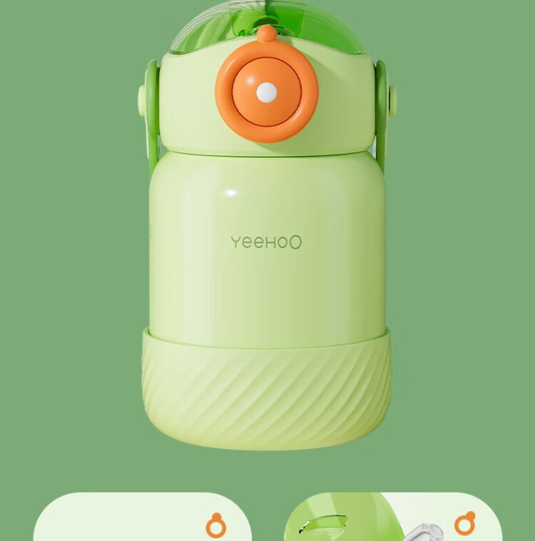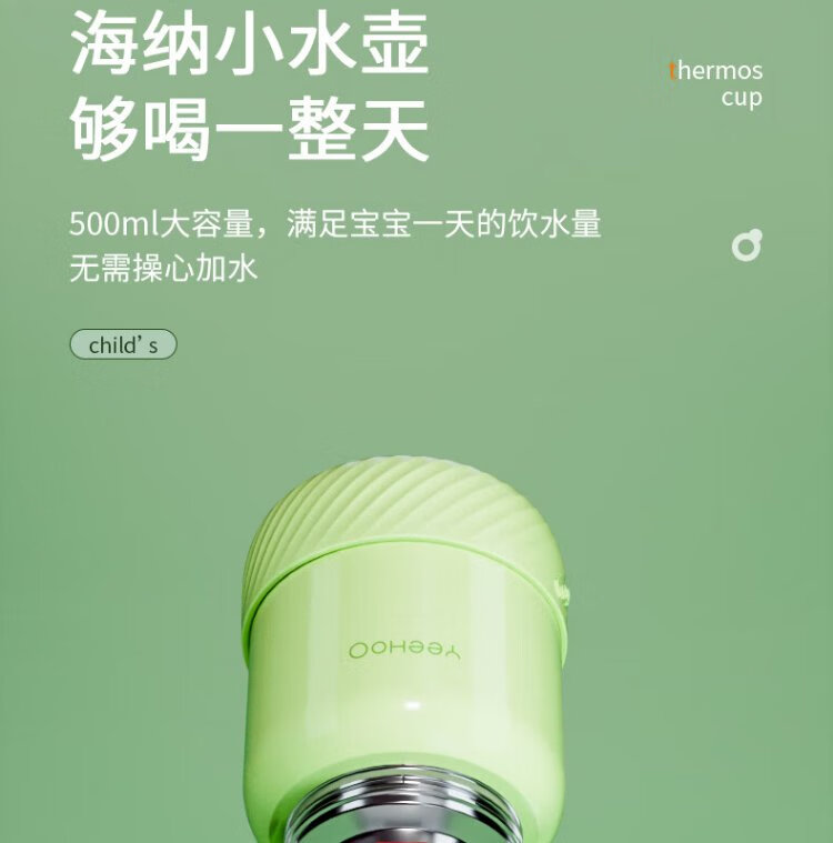 YEEHOO thermos cup 316 children's sippy cup with cup cover baby thermos cup baby children's thermos water cup apple green
